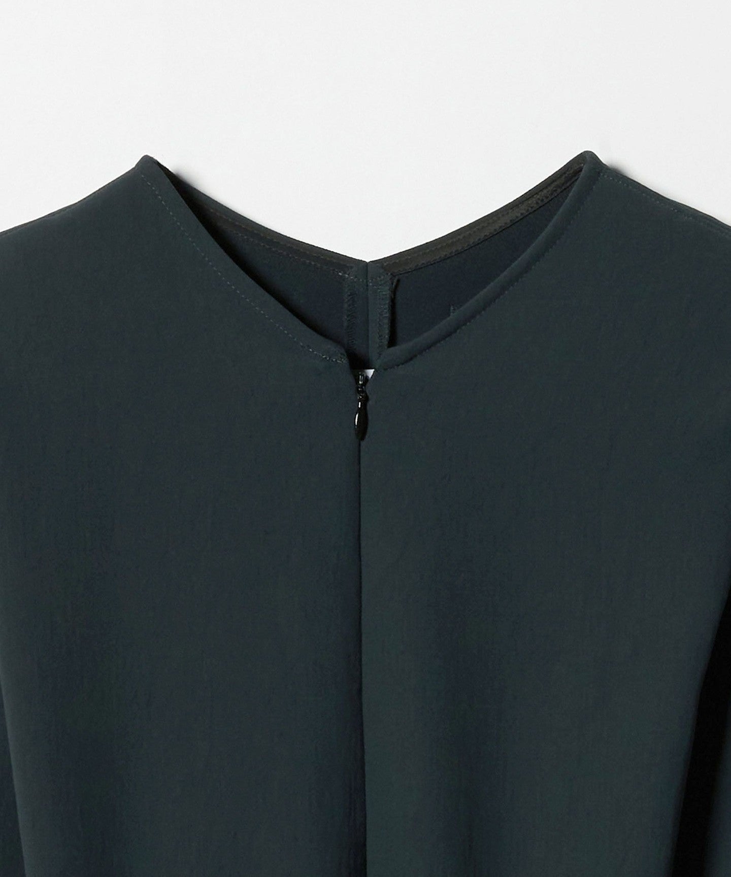 前後の肩部分に施された深めのタックがほどよいゆとりを生み出し、身体のラインを拾いにくく、すっきりとした印象に見せてくれます。