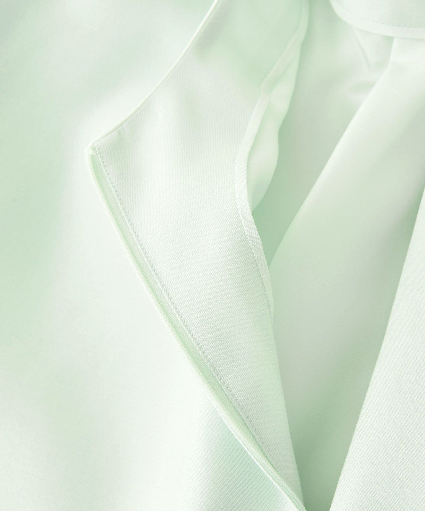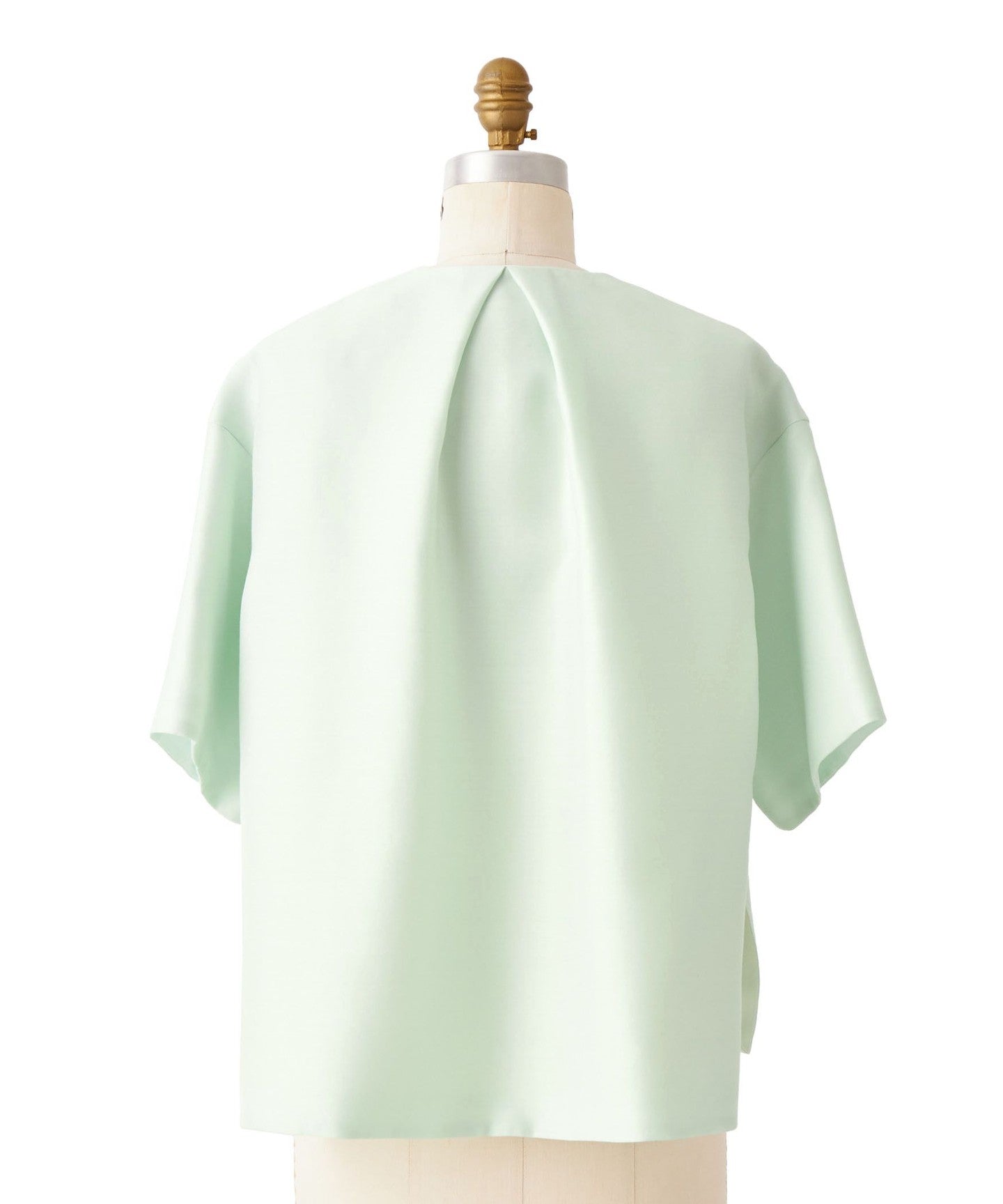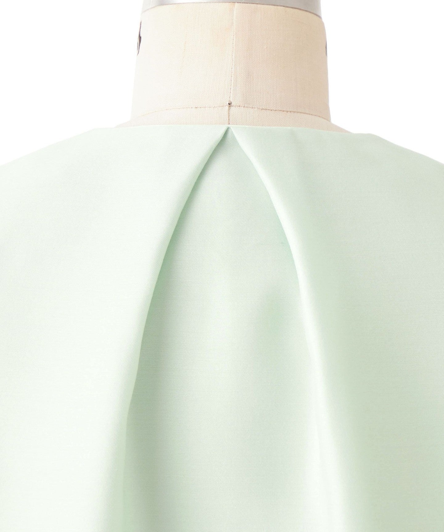 The back silhouette has a cocoon shape with tucks, adding a soft impression.
