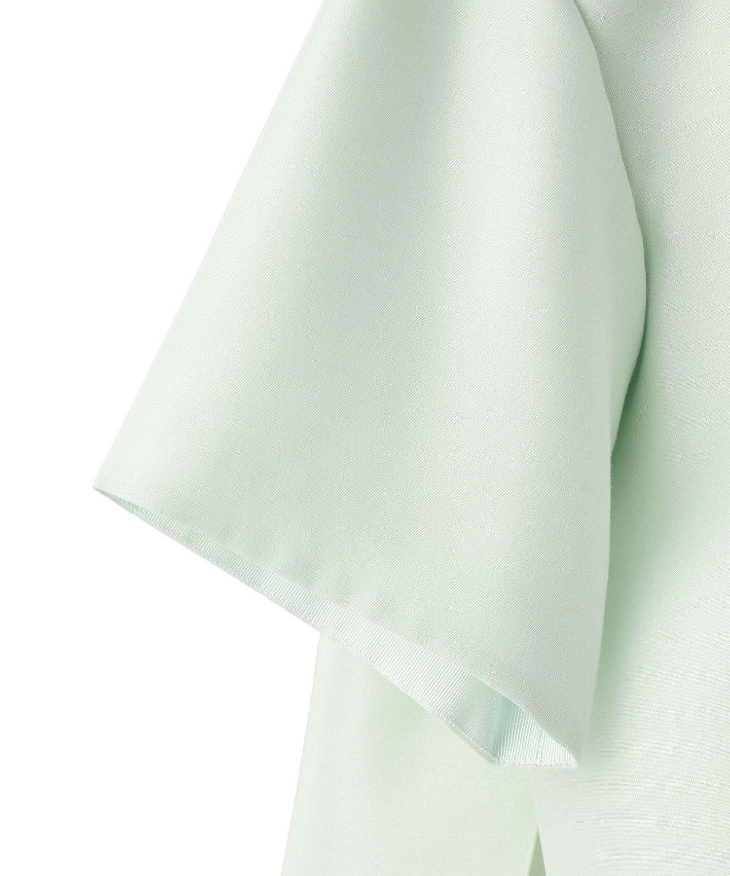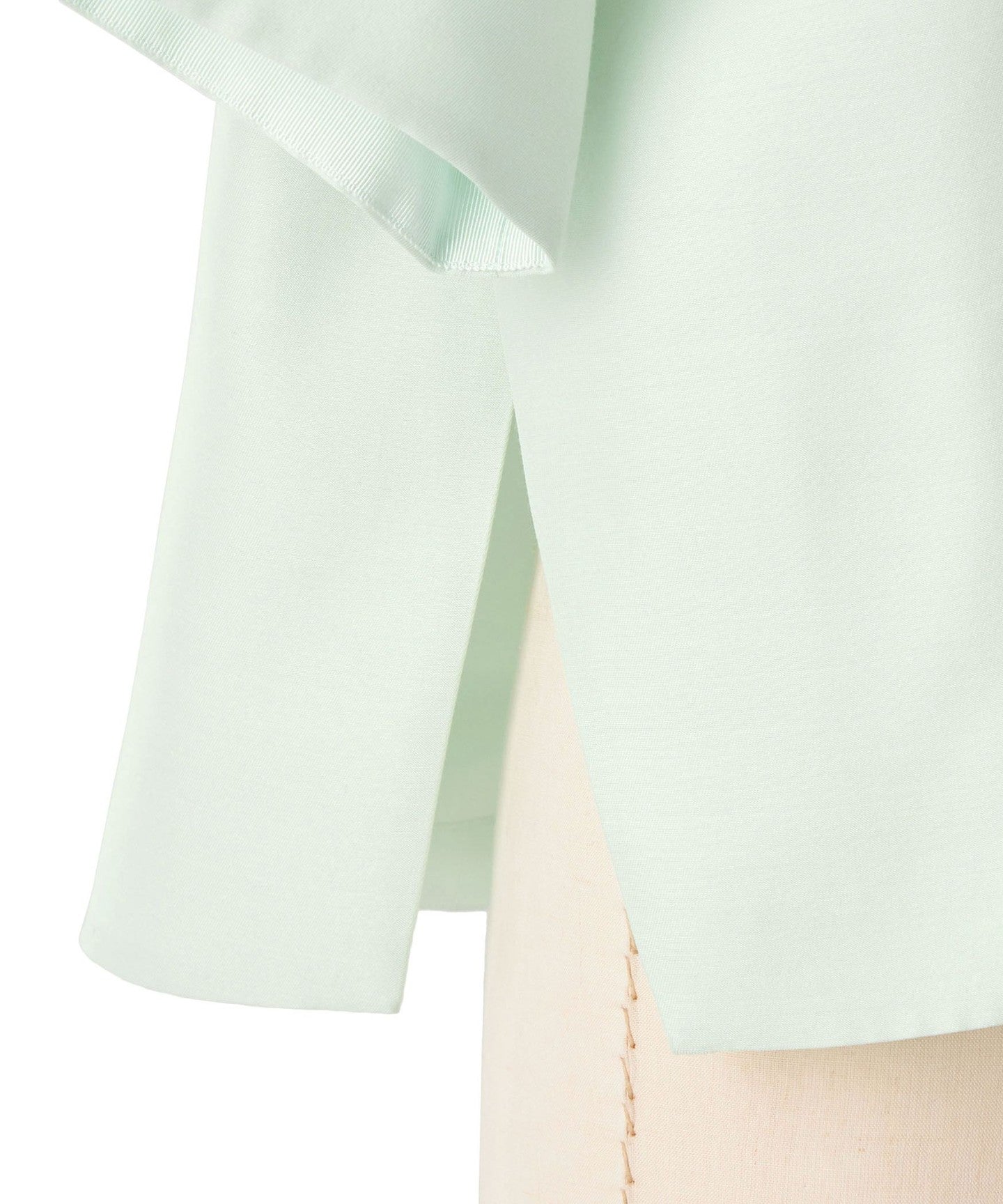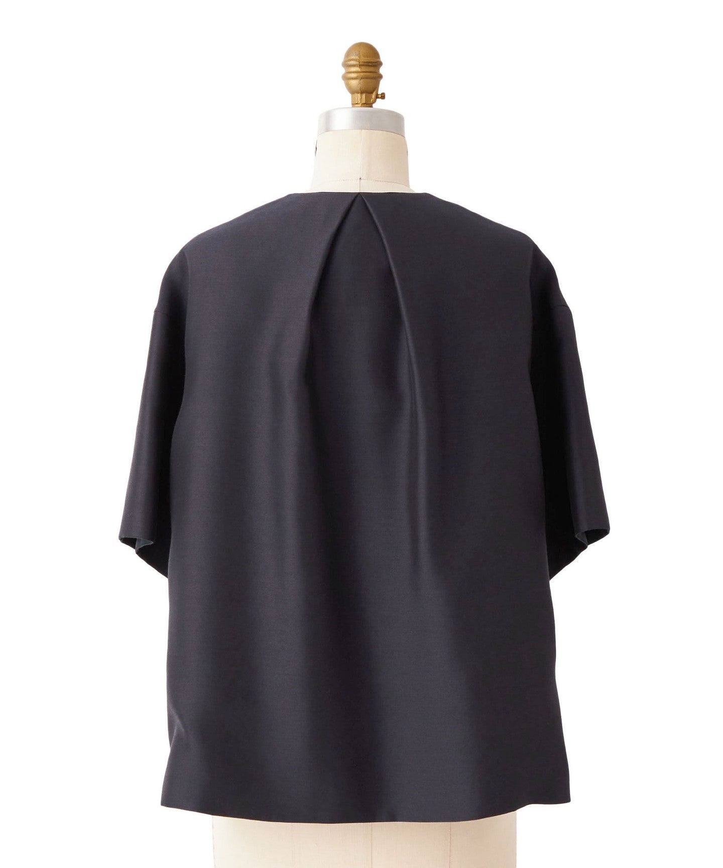 The back silhouette has a cocoon shape with tucks, adding a soft impression.
