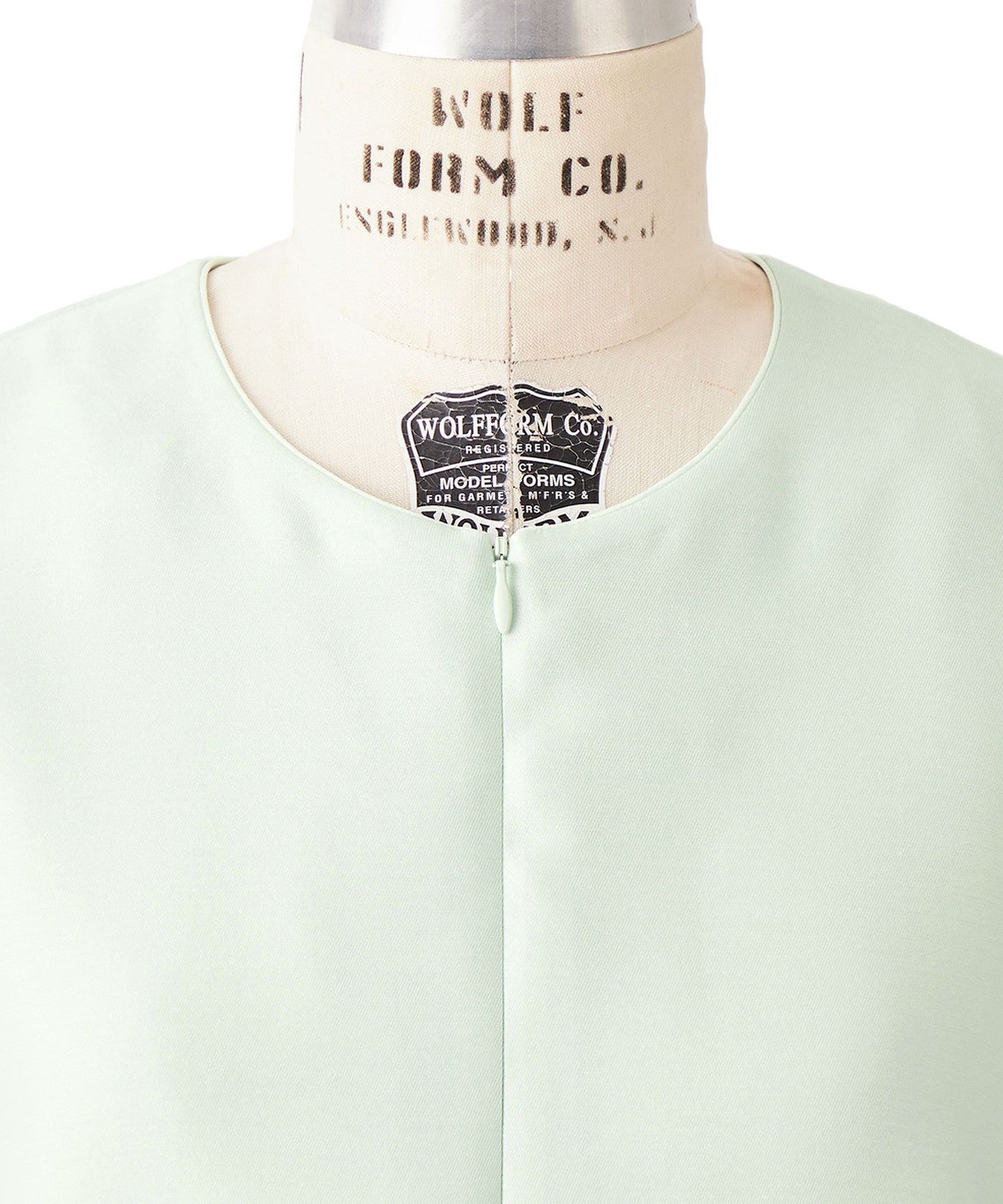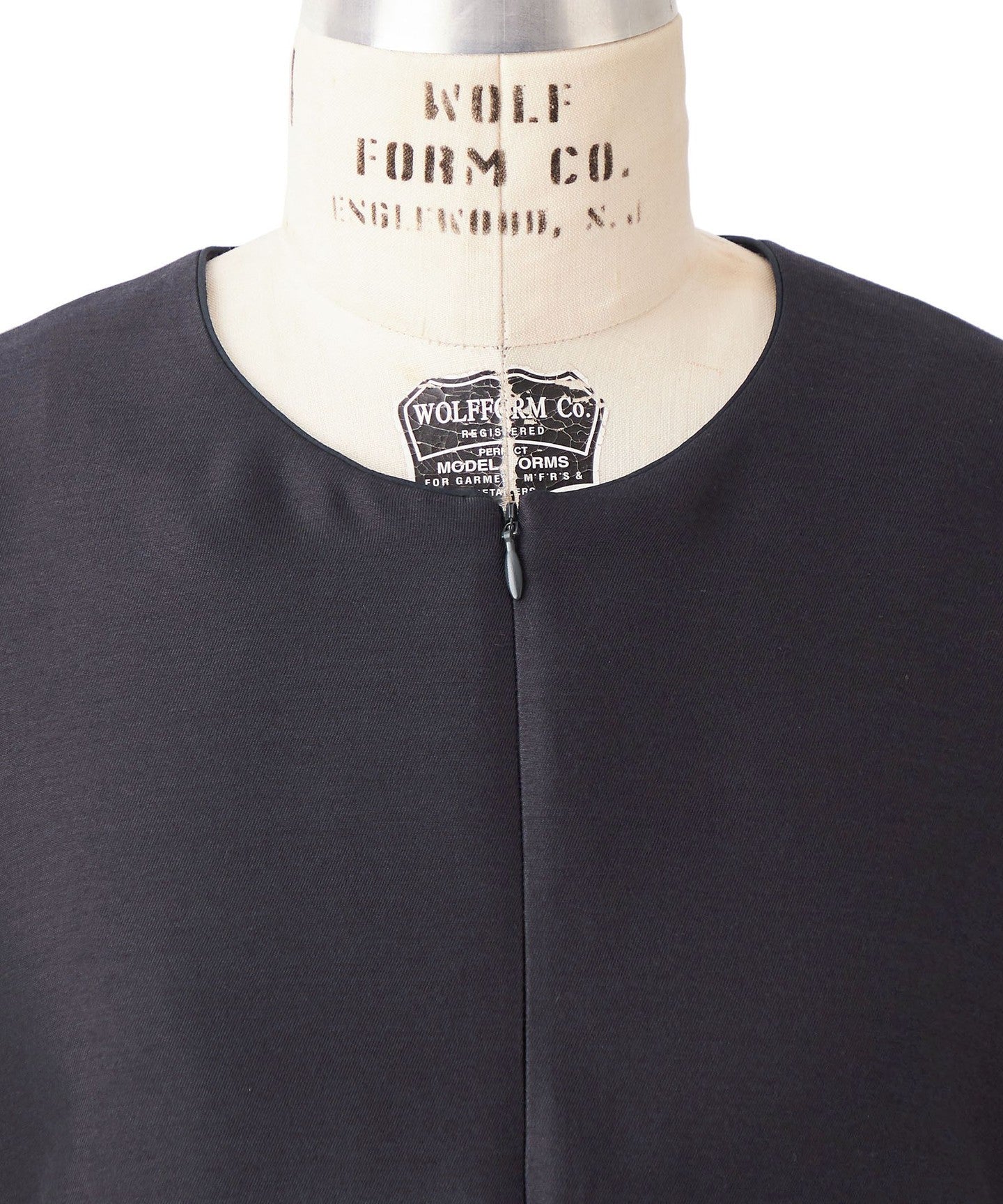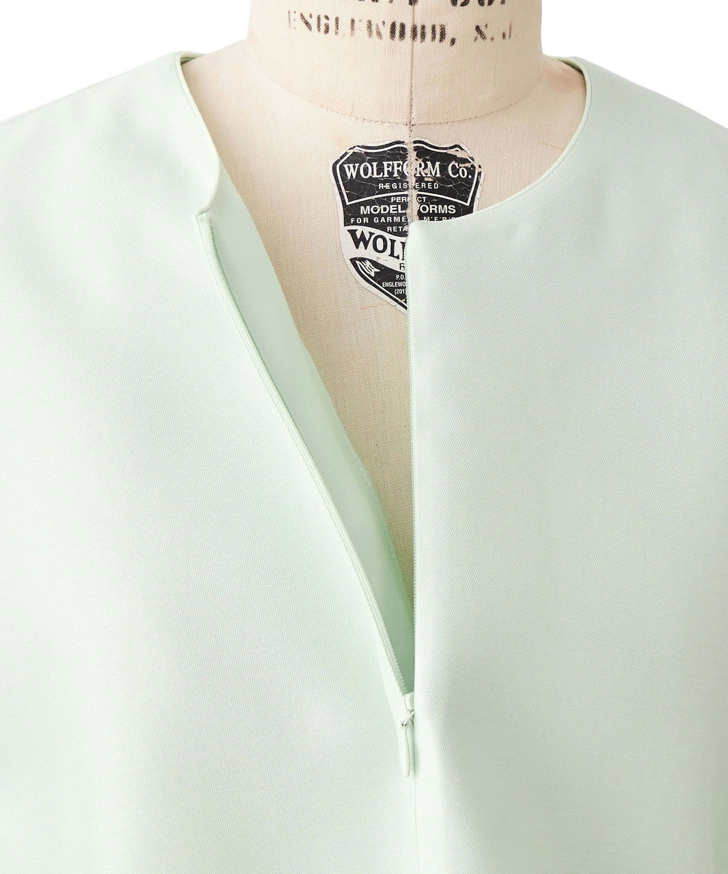The front has a boxy silhouette, and the neck has a zipper for an elegant crew neck and an open slit neck.