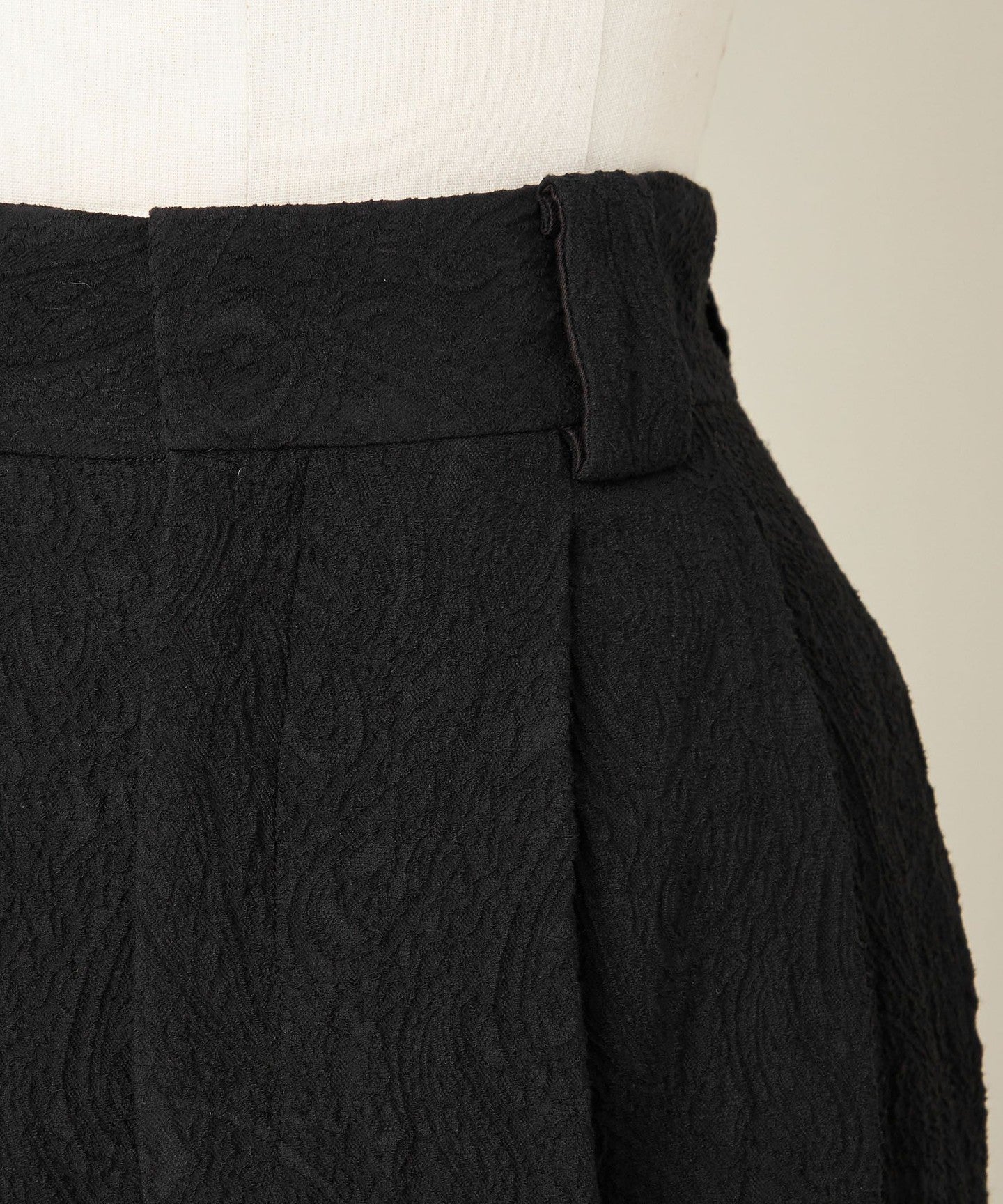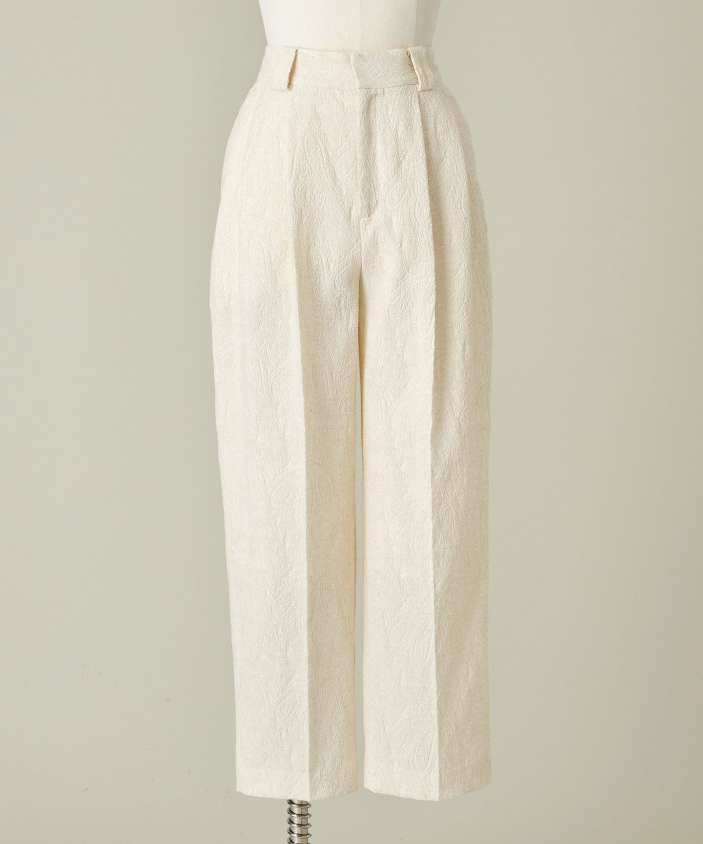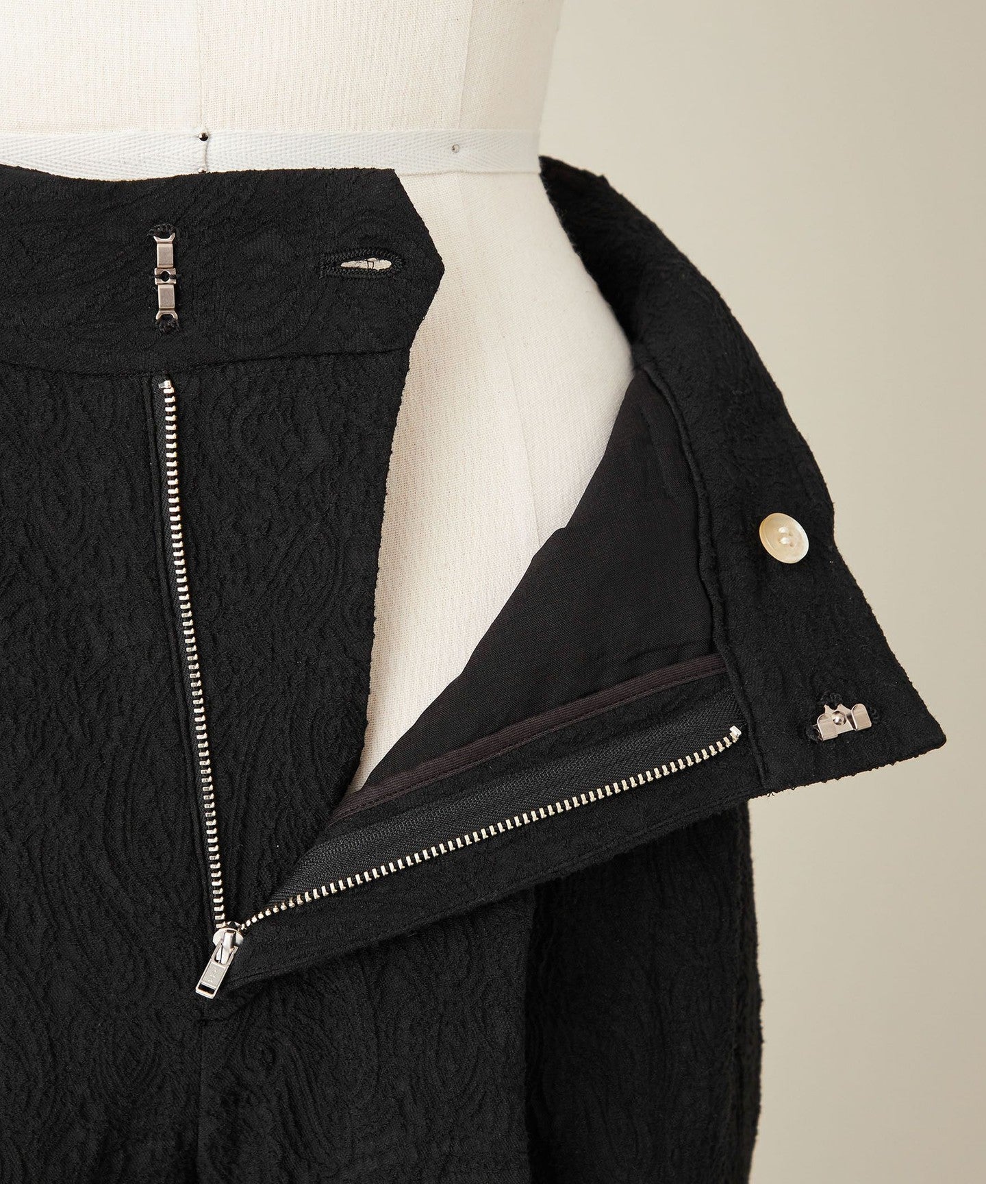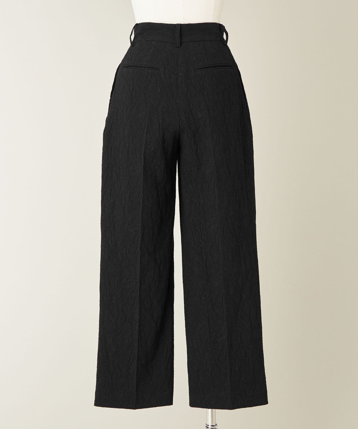 These pleated pants feature delicate paisley jacquard that will catch your eye.