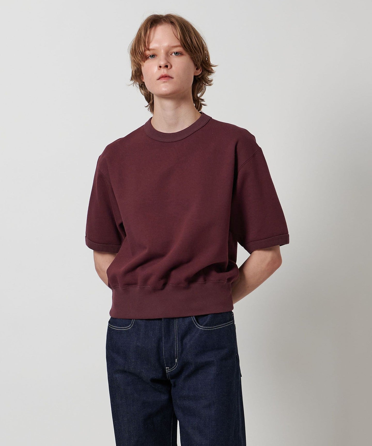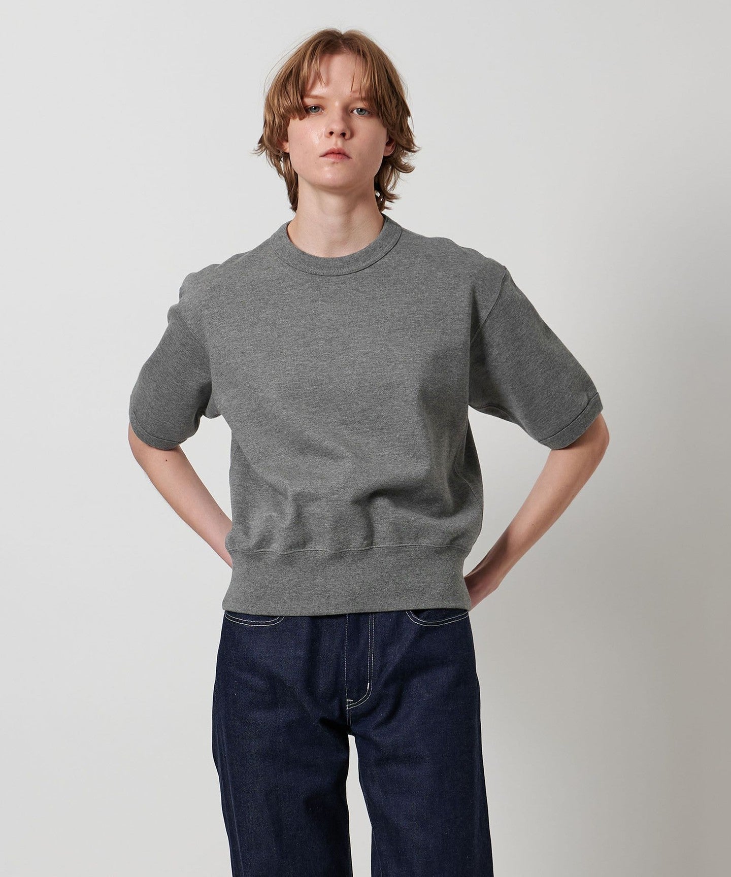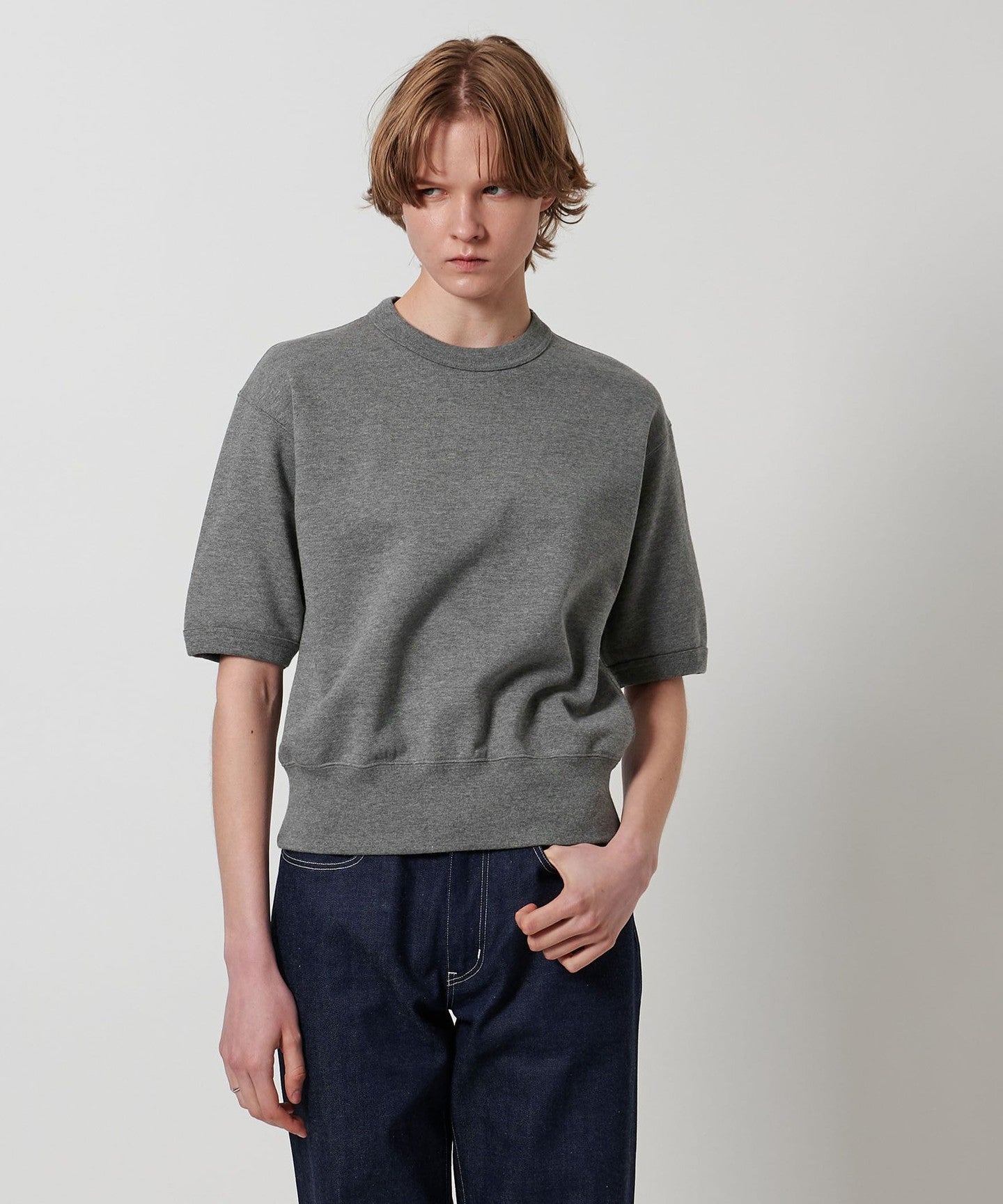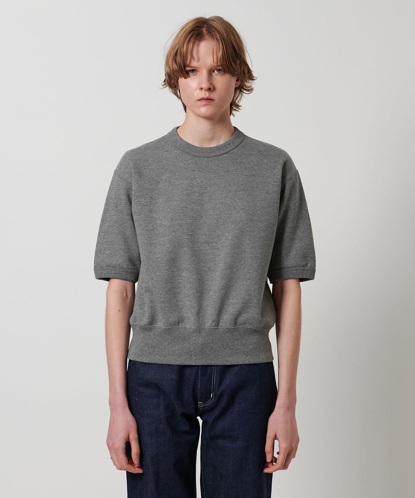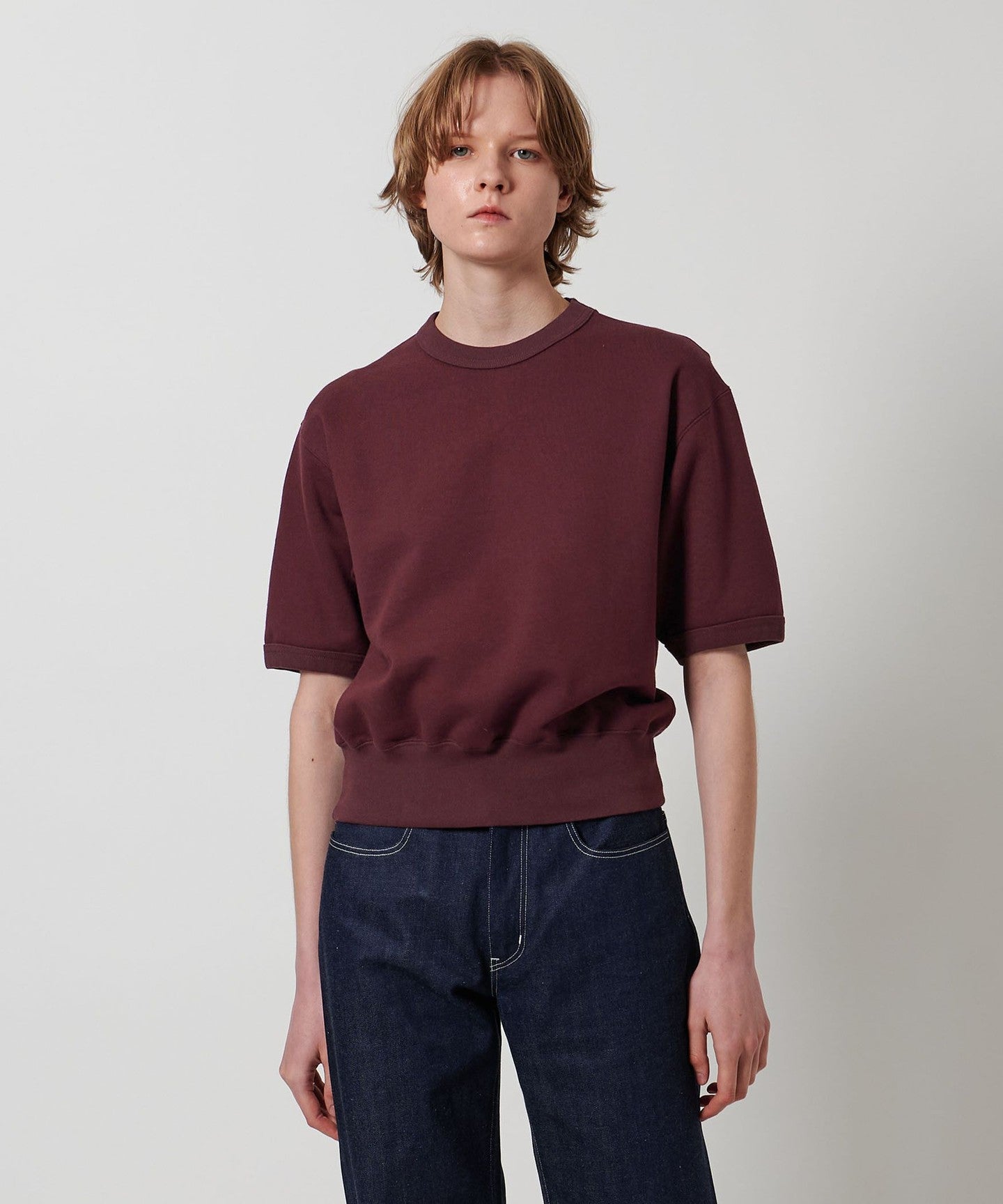 A short-sleeved sweatshirt that combines a retro mood with a sporty feel.