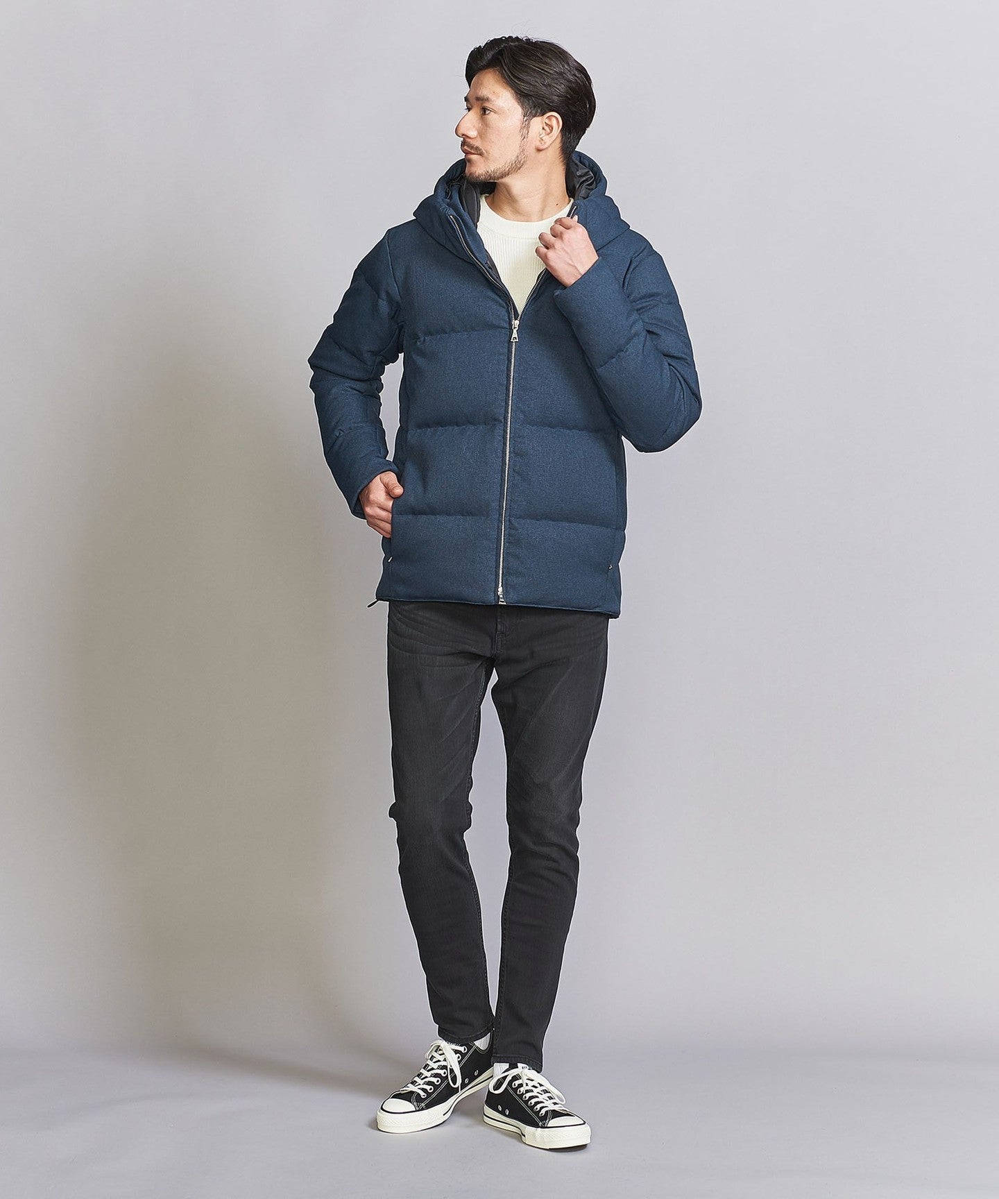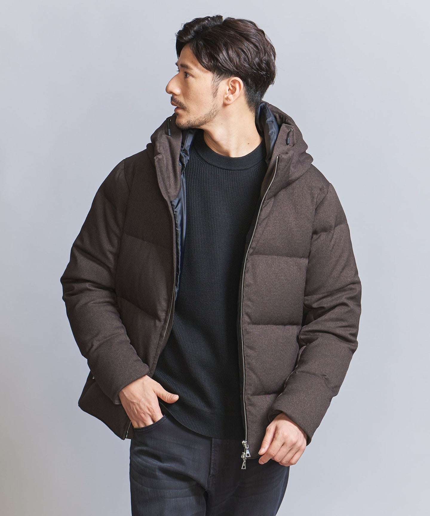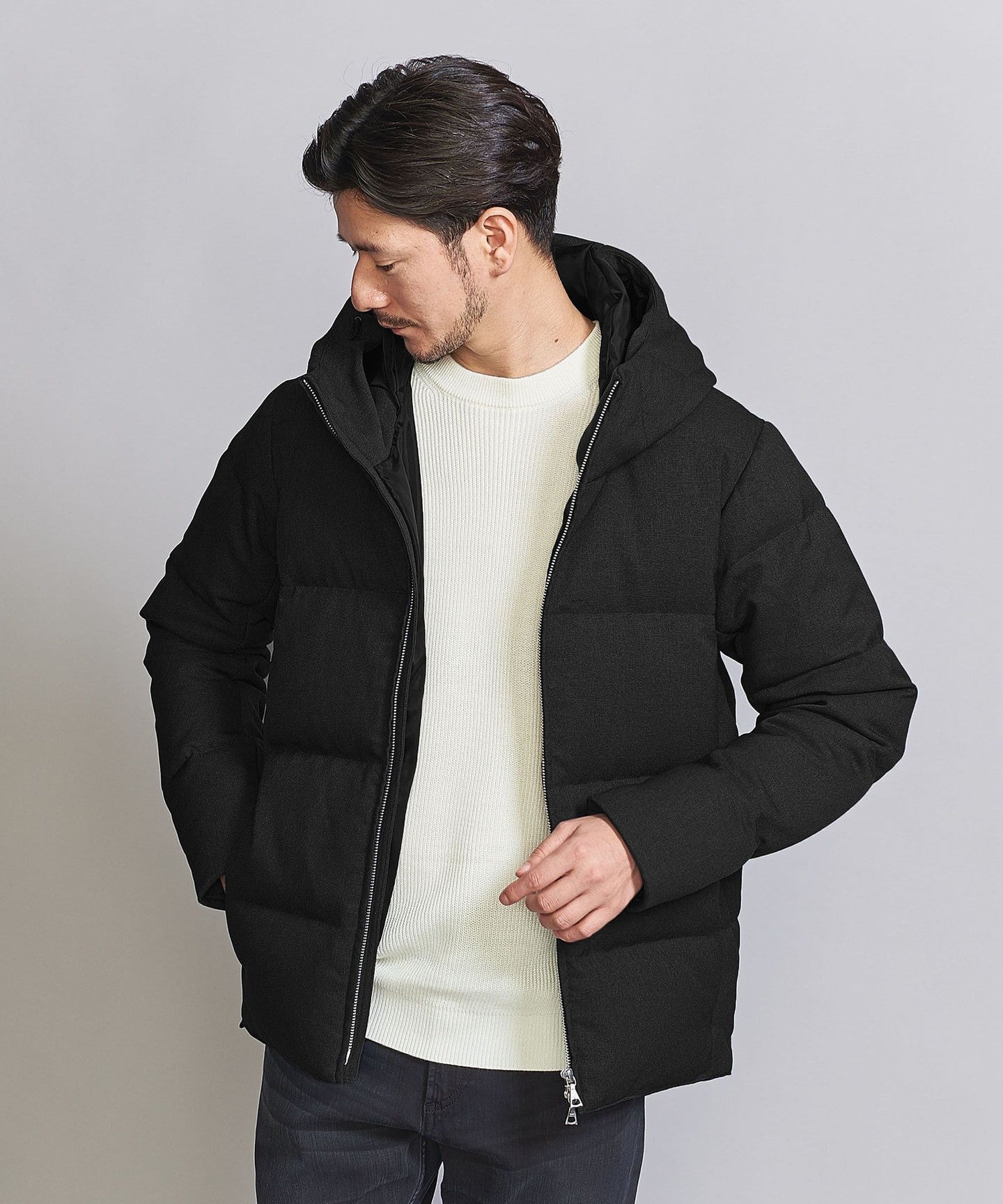 Pair it with slim bottoms,DownJACKETWe recommend coordinating it with something that will highlight the smart silhouette.