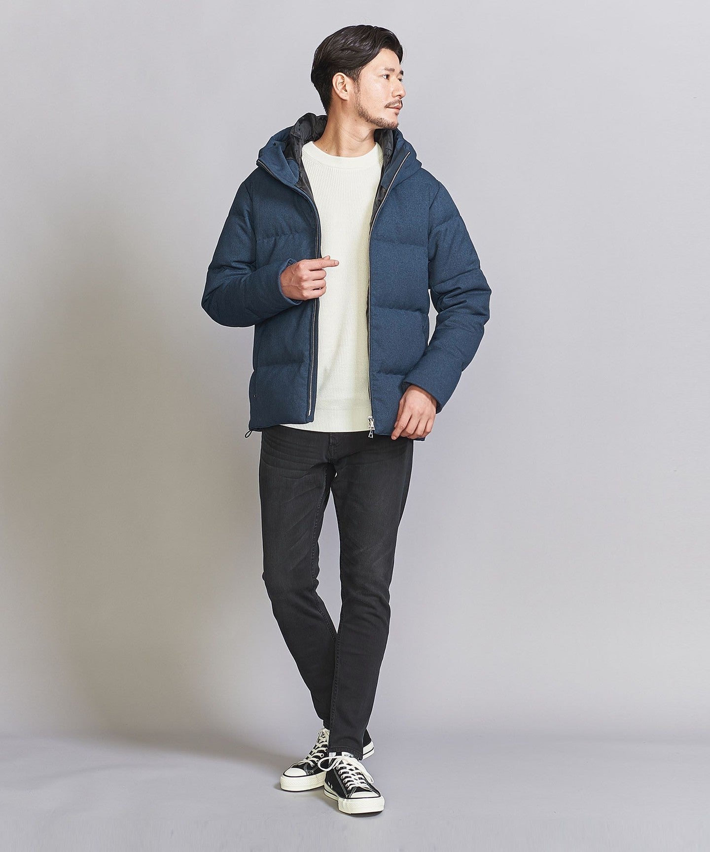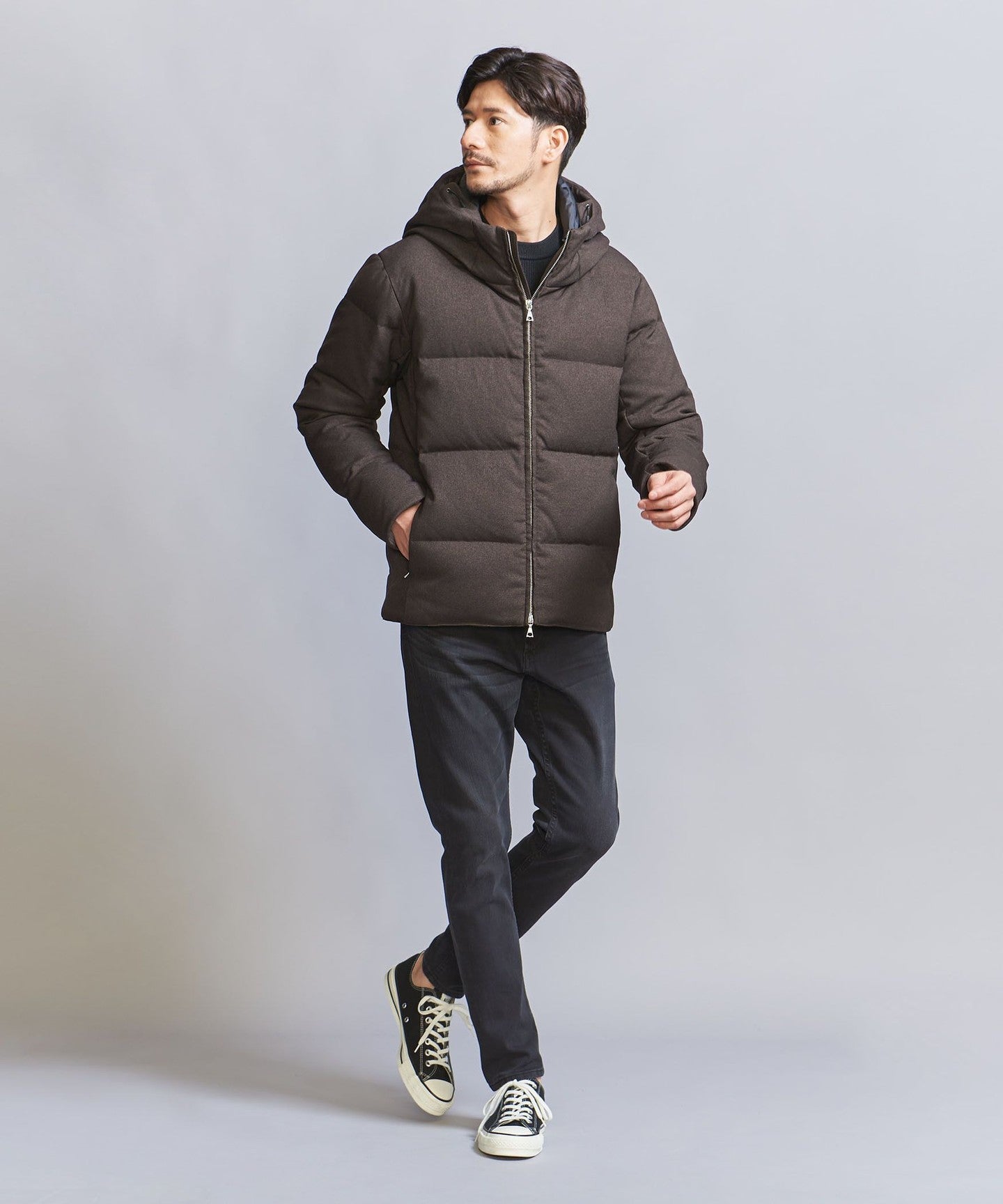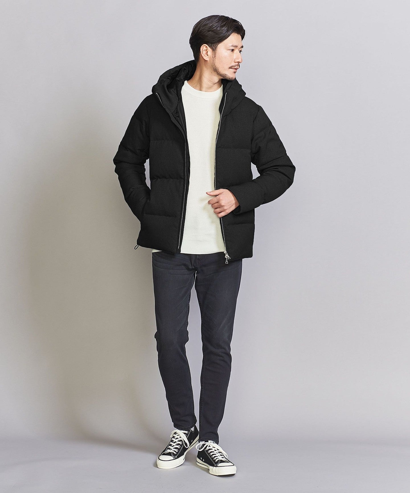 Pair it with slim bottoms,DownJACKETWe recommend coordinating it with something that will highlight the smart silhouette.