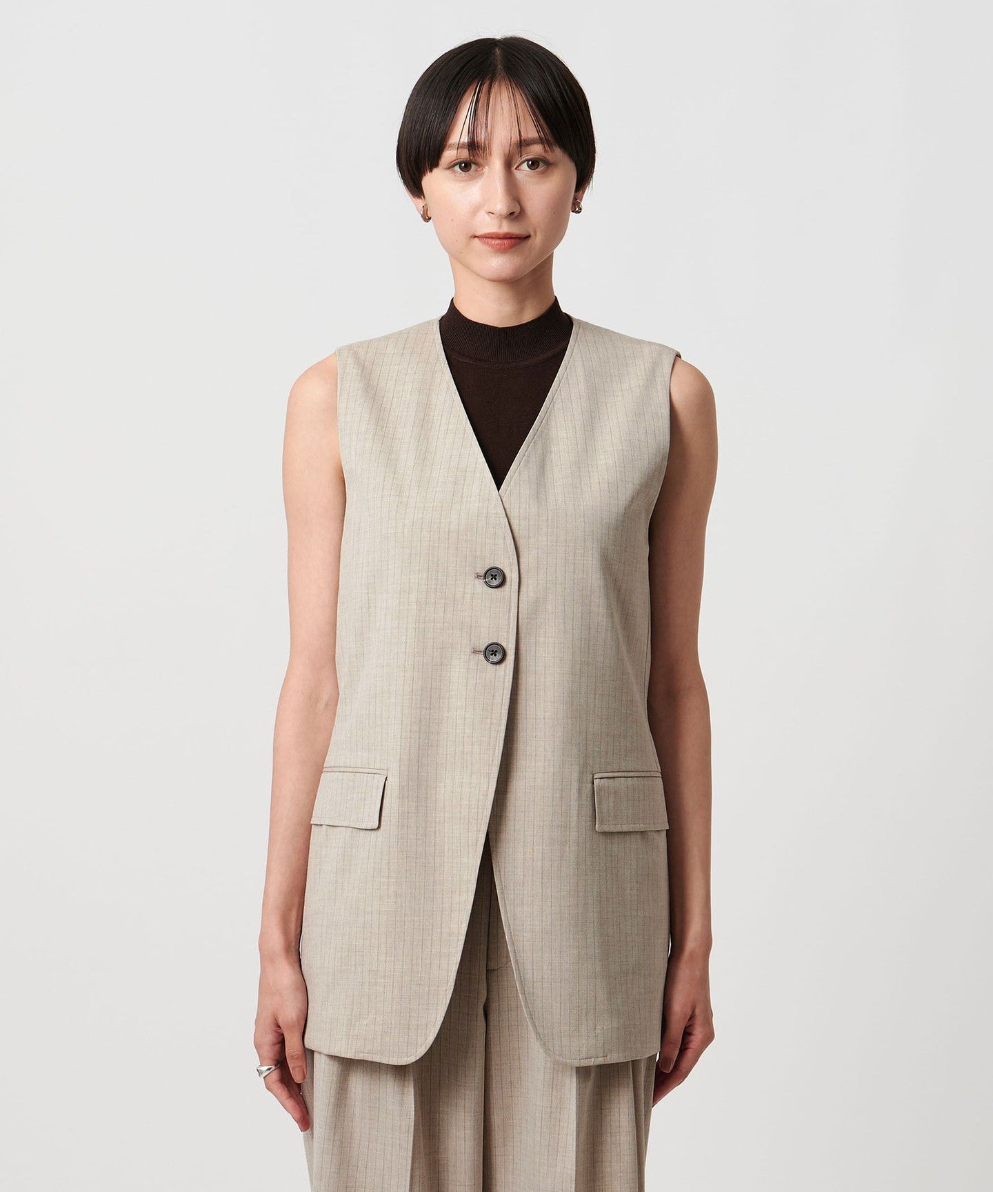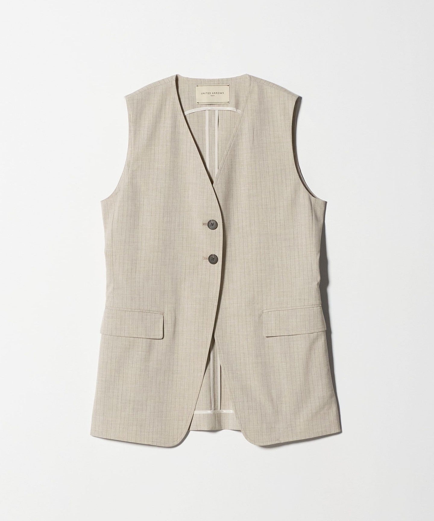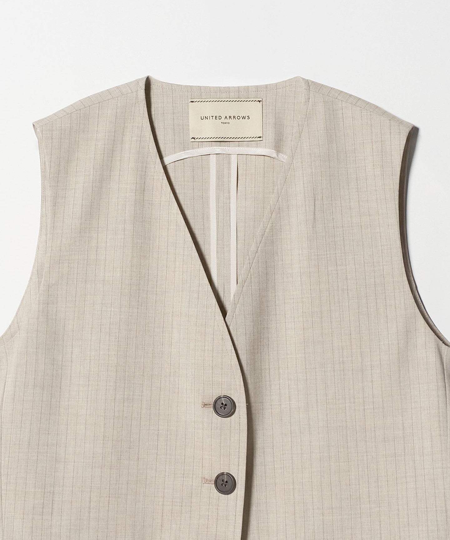 A mid-length vest with a V-neck and no collar that creates a clean, masculine impression.