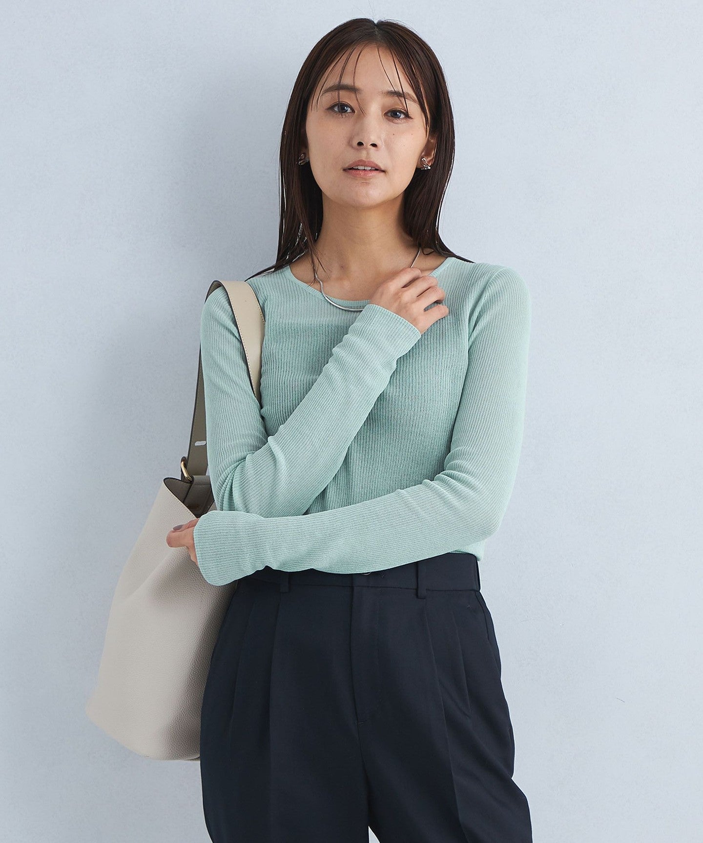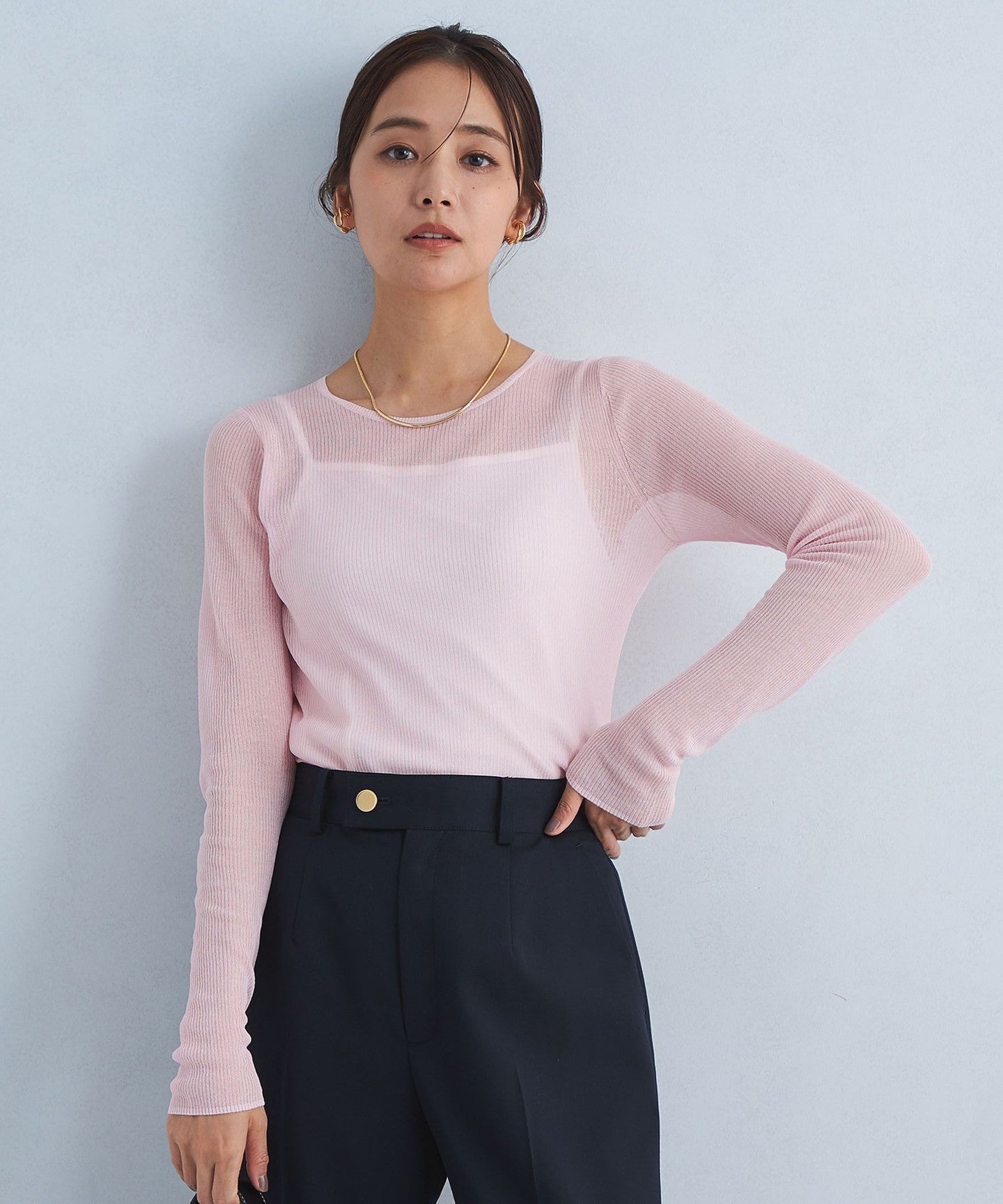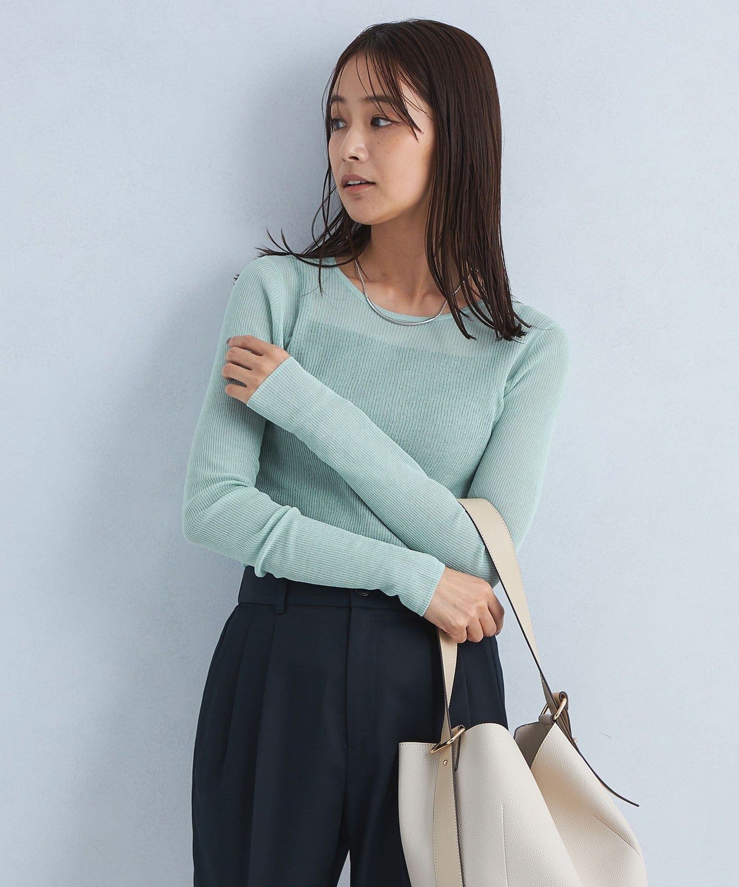 Sheer Rib Crew Neck Knit Pullover - Washable-