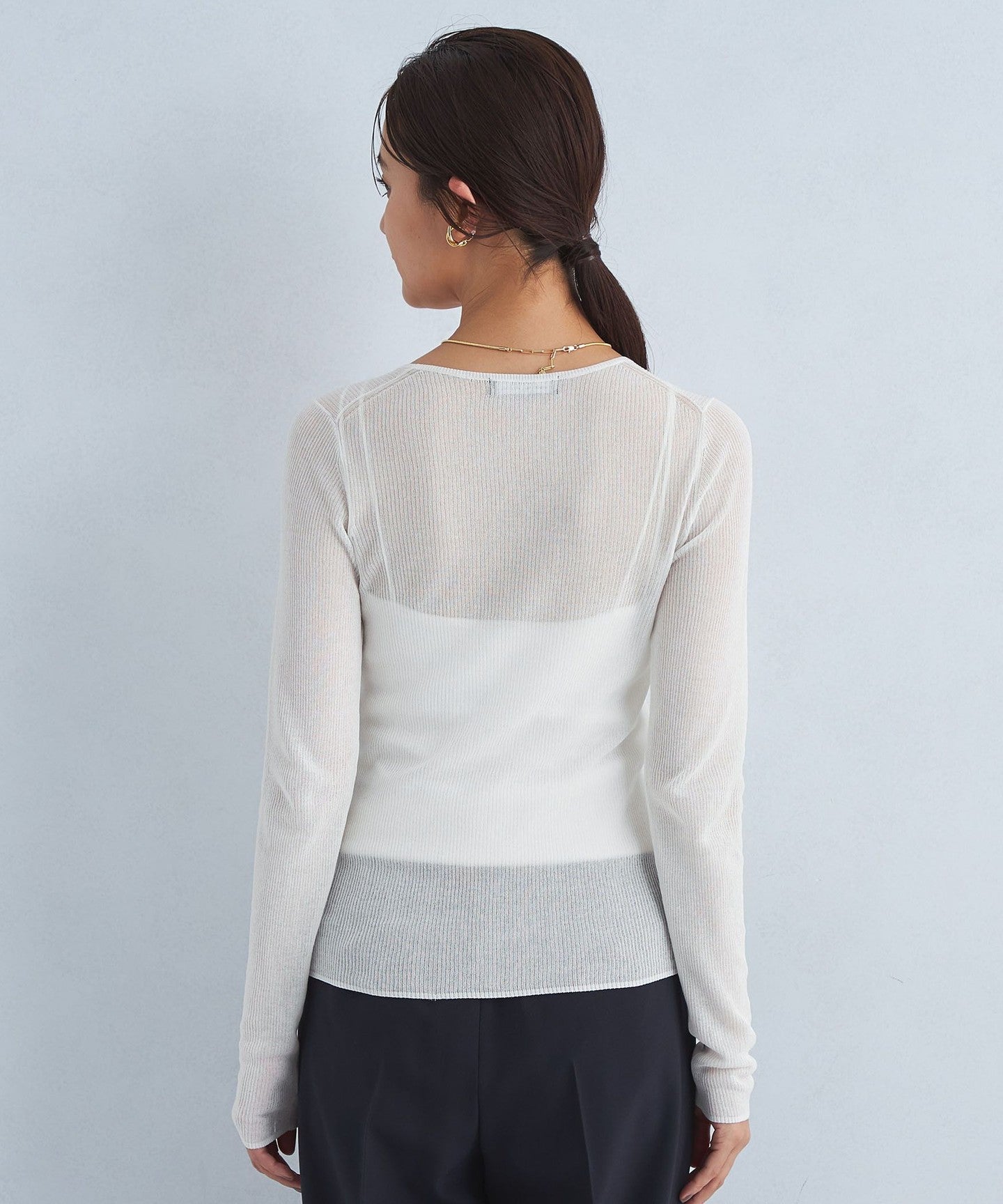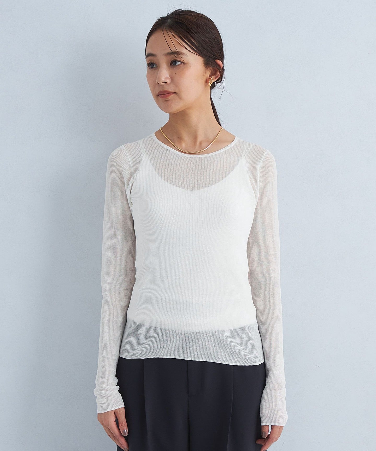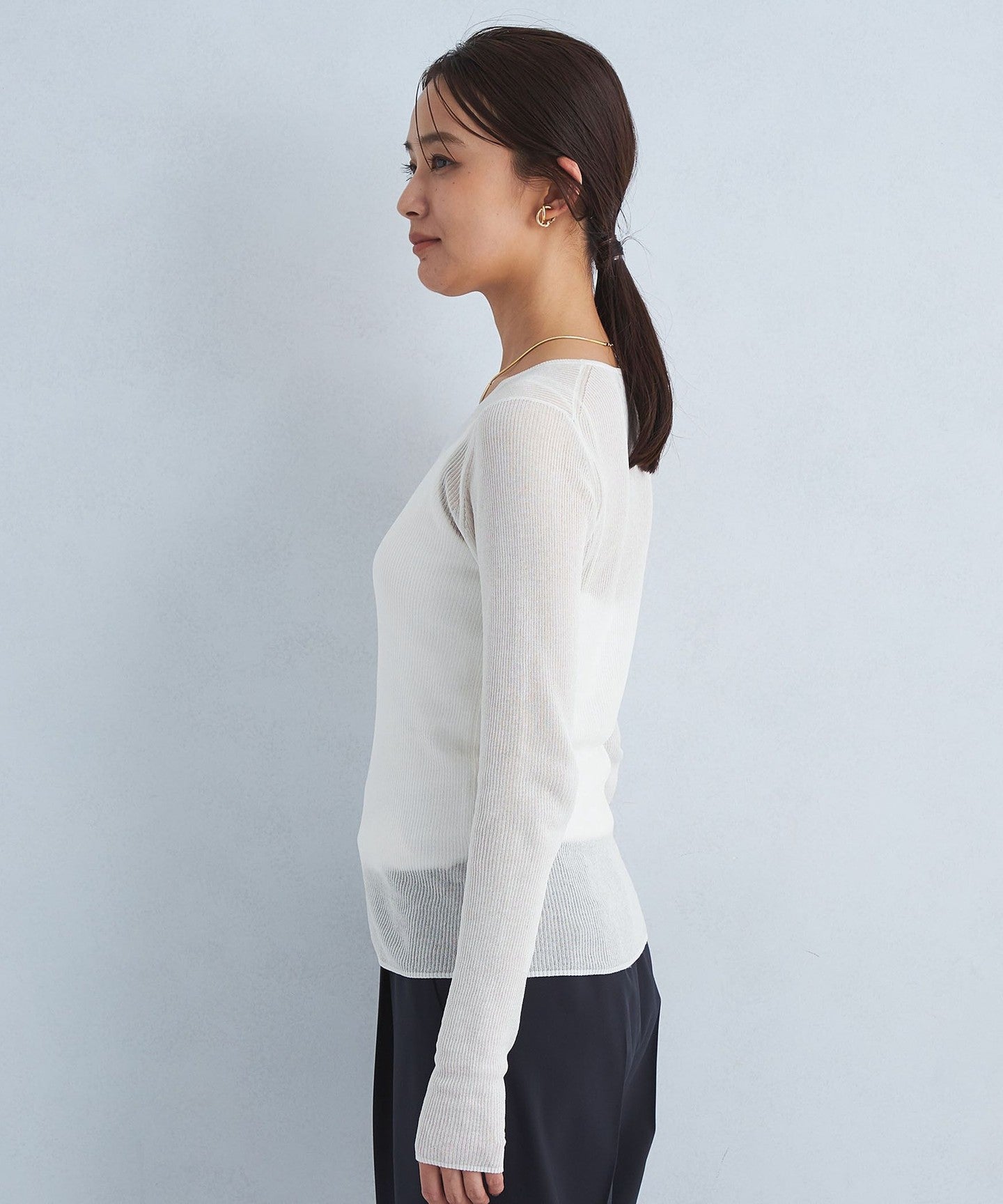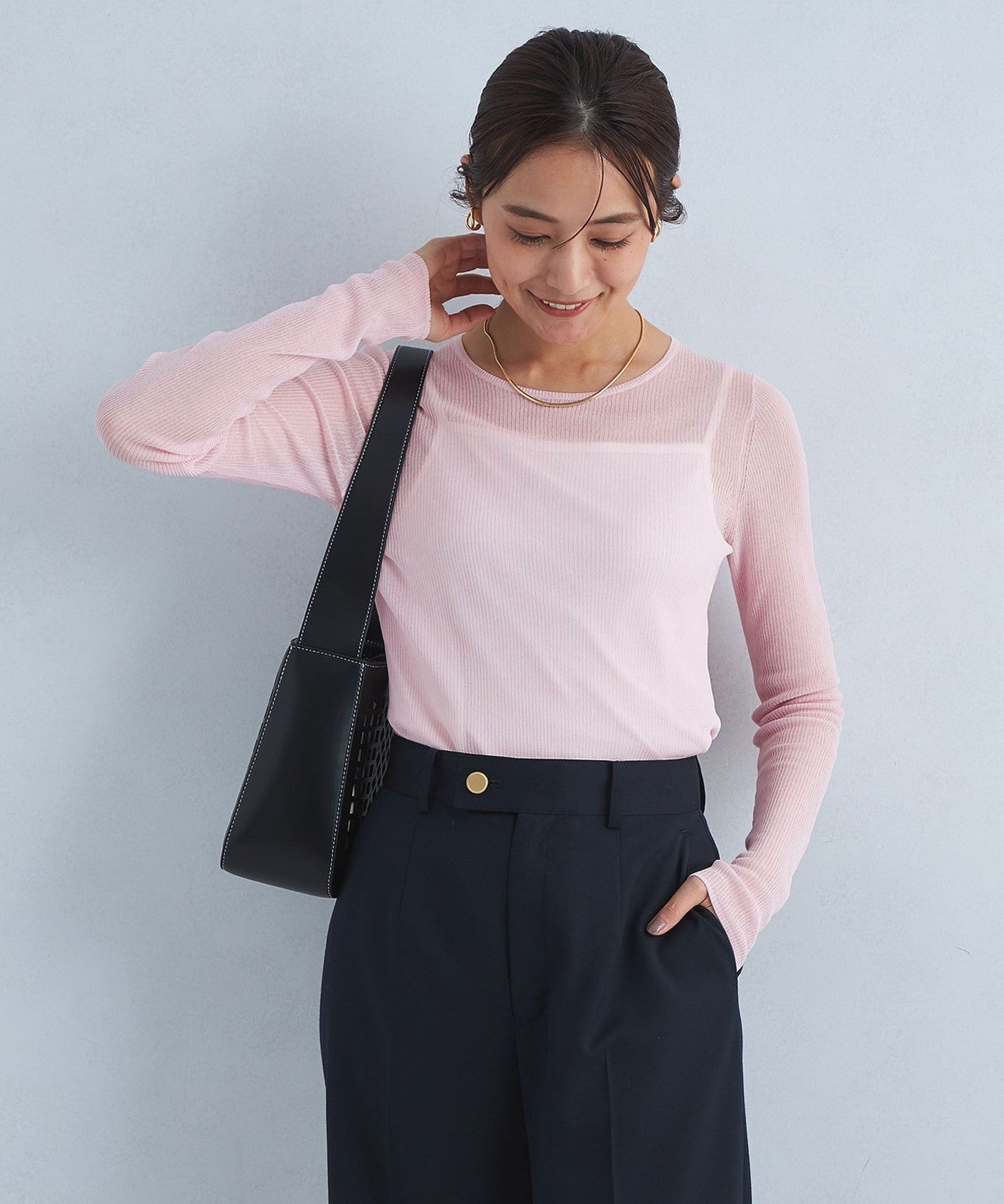 Sheer Rib Crew Neck Knit Pullover - Washable-