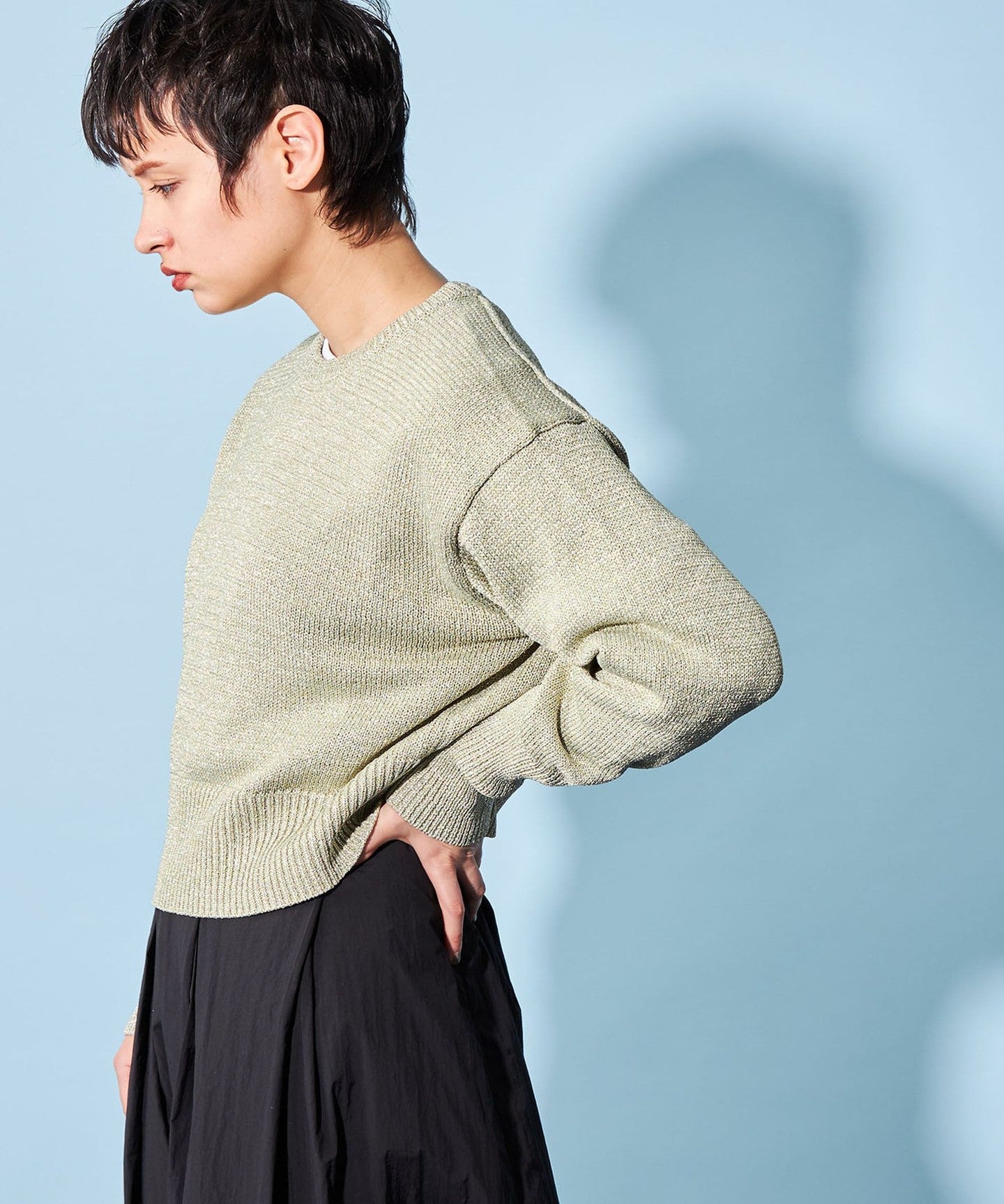 #UNITEDARROWS, #metallic, #glitter, #crewneck, #cropped, #short, #volume SLEEVE , #Middle Gauge