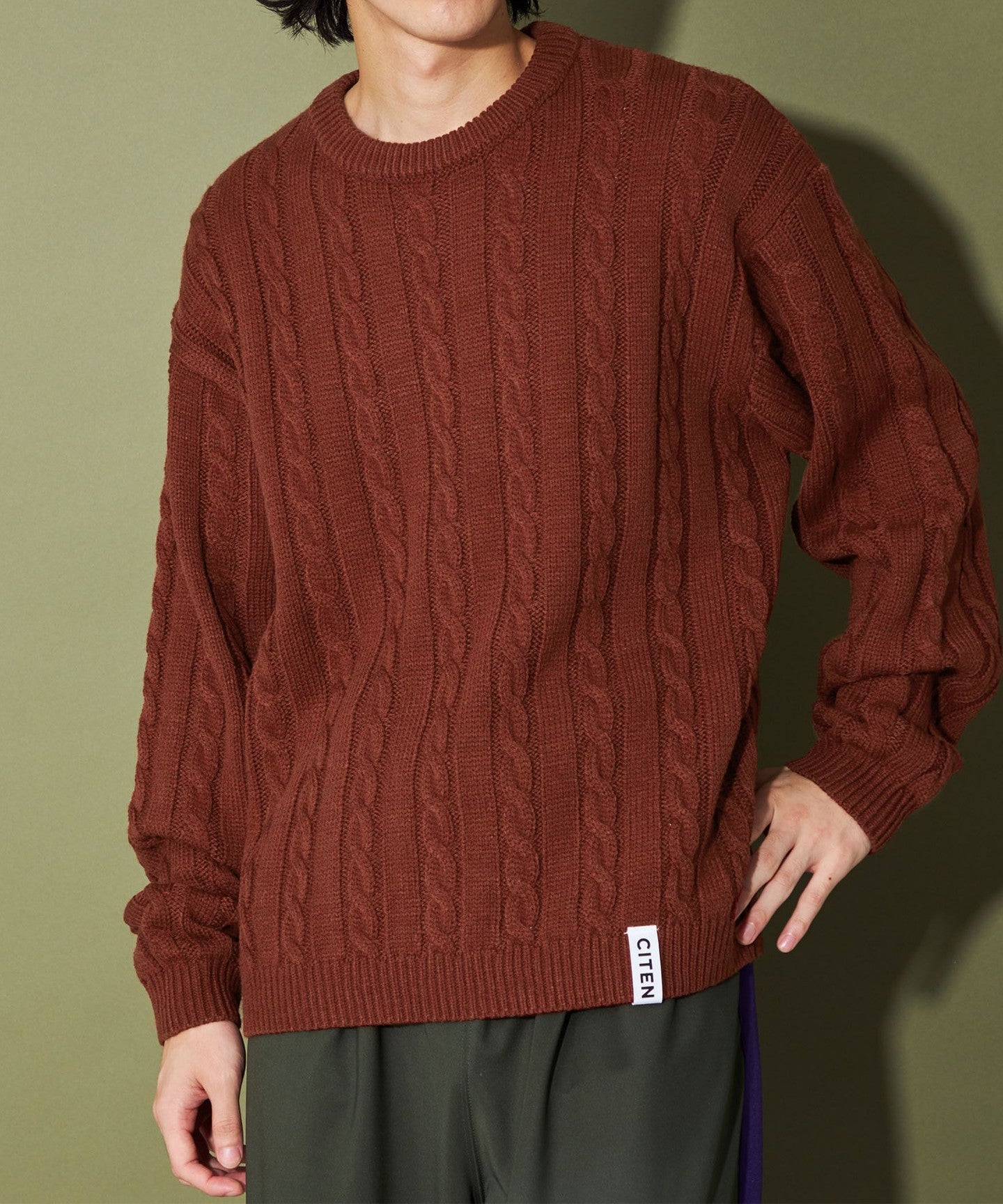 The relaxed fit silhouette matches perfectly with the cable pattern.
