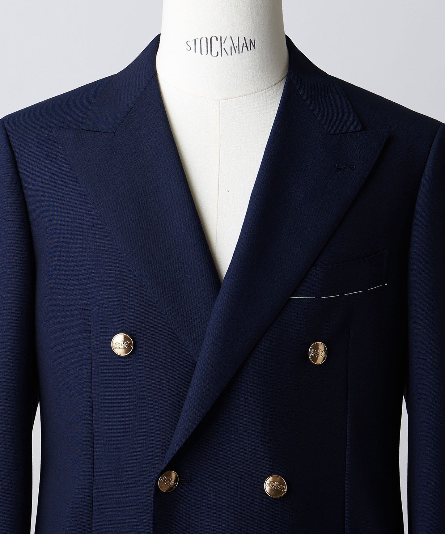 This 6B double blazer has moderately wide lapels and a gently shaped waist, making it suitable for a variety of styles.