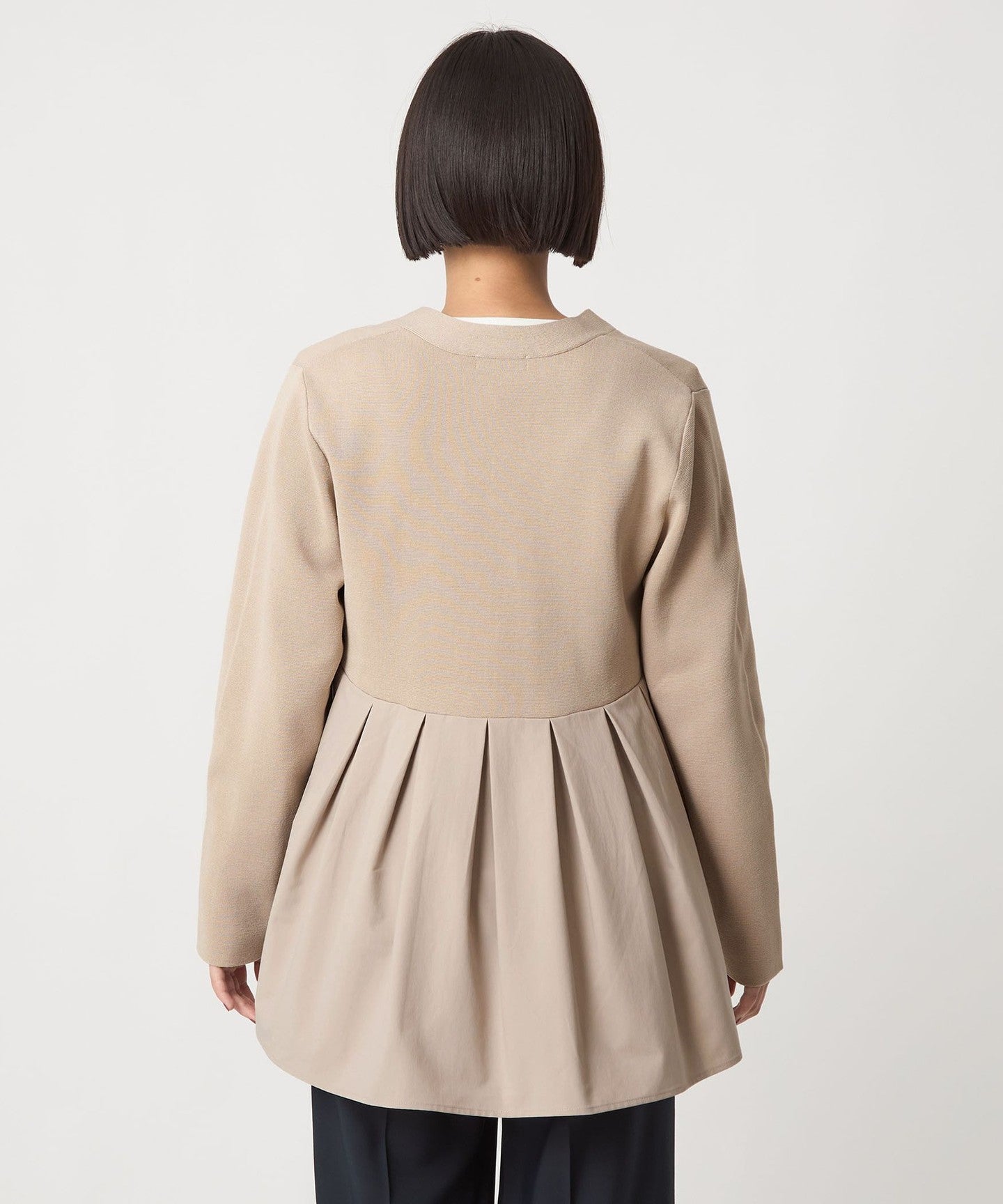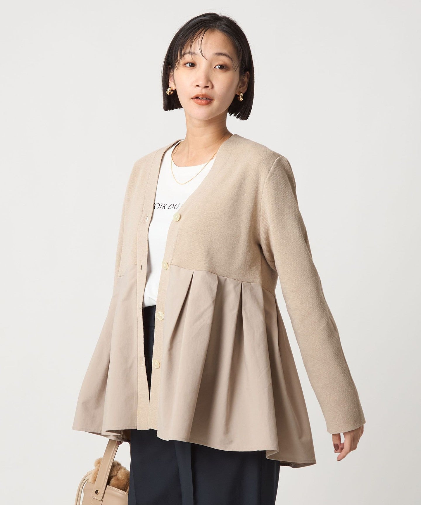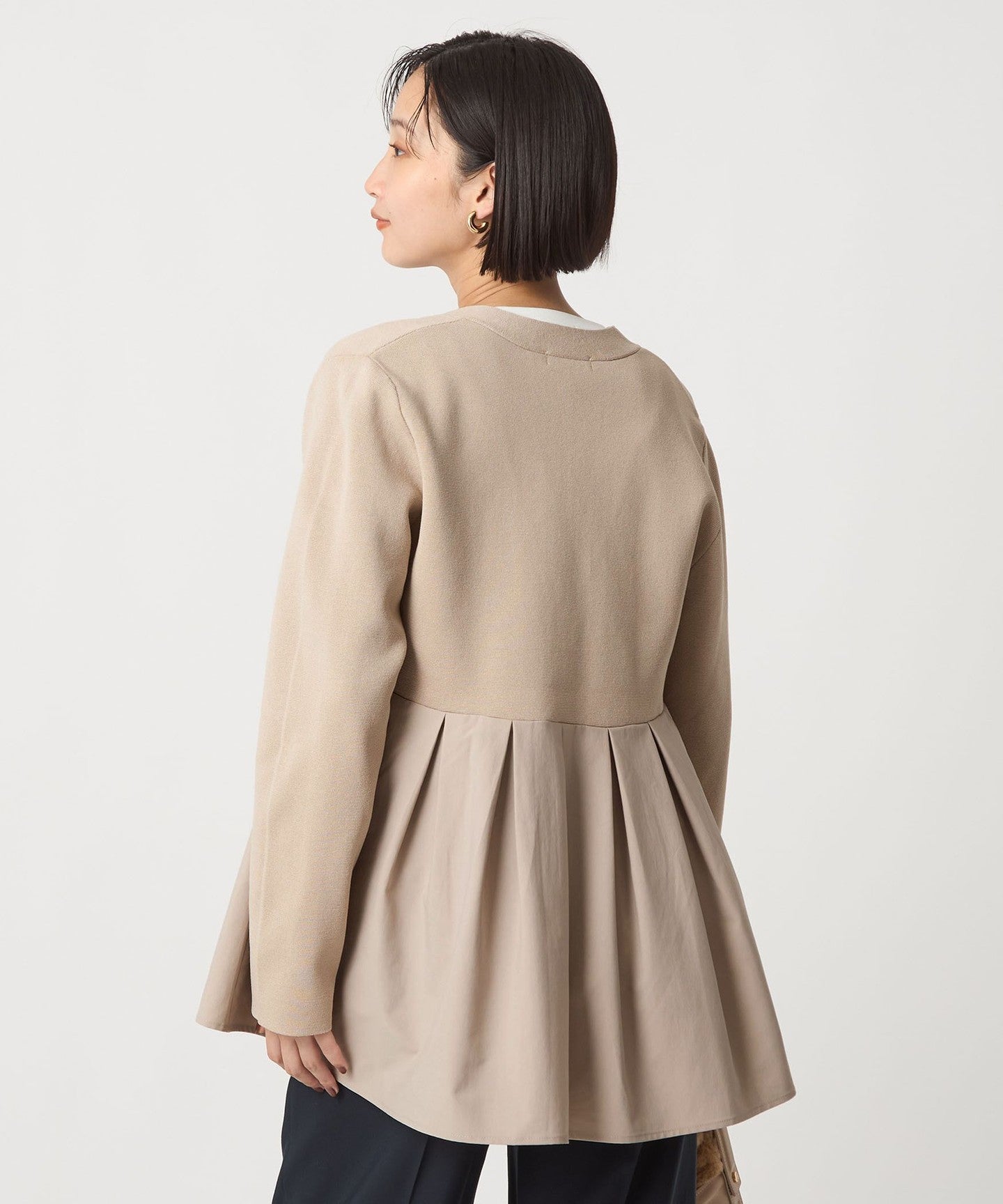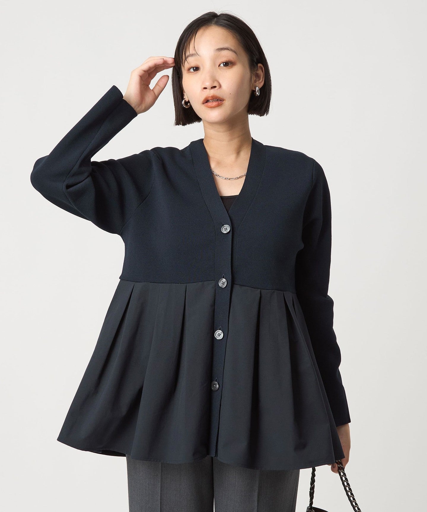 A knit cardigan with an attractive, fluffy peplum silhouette.
