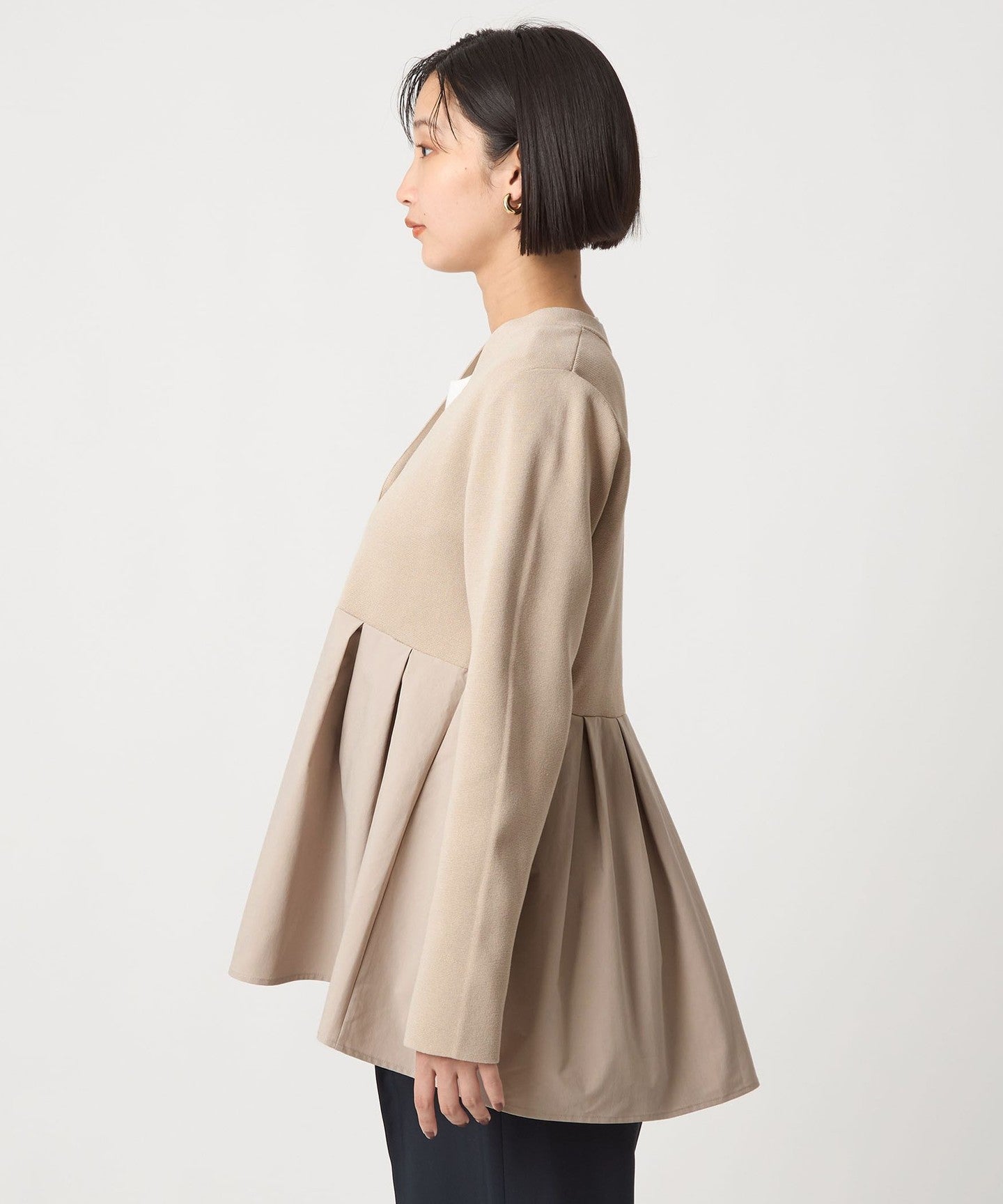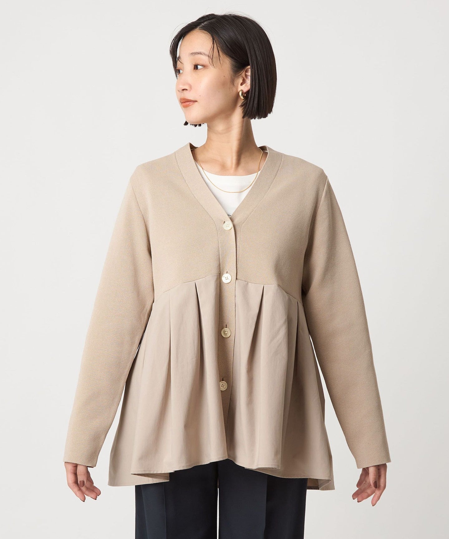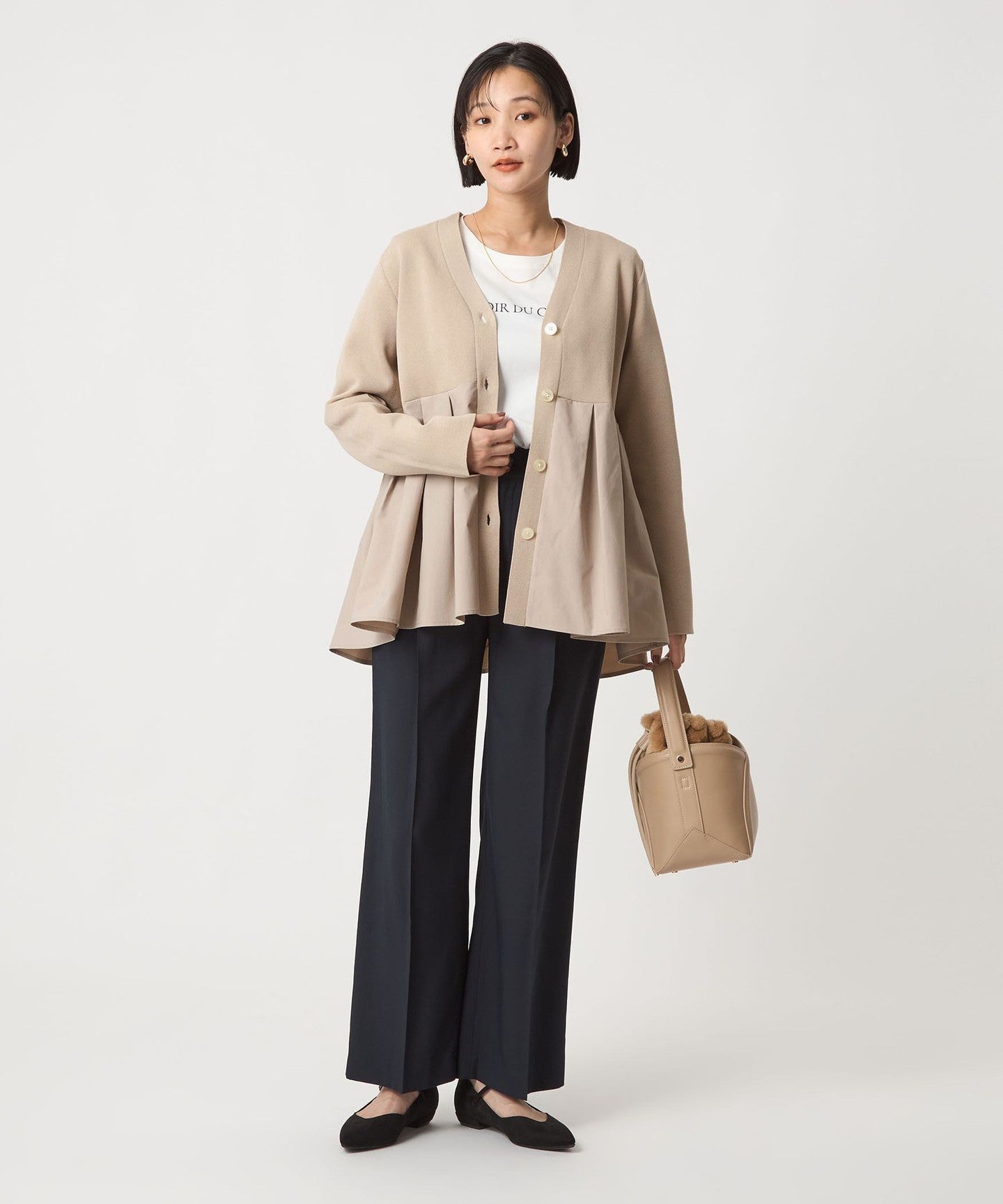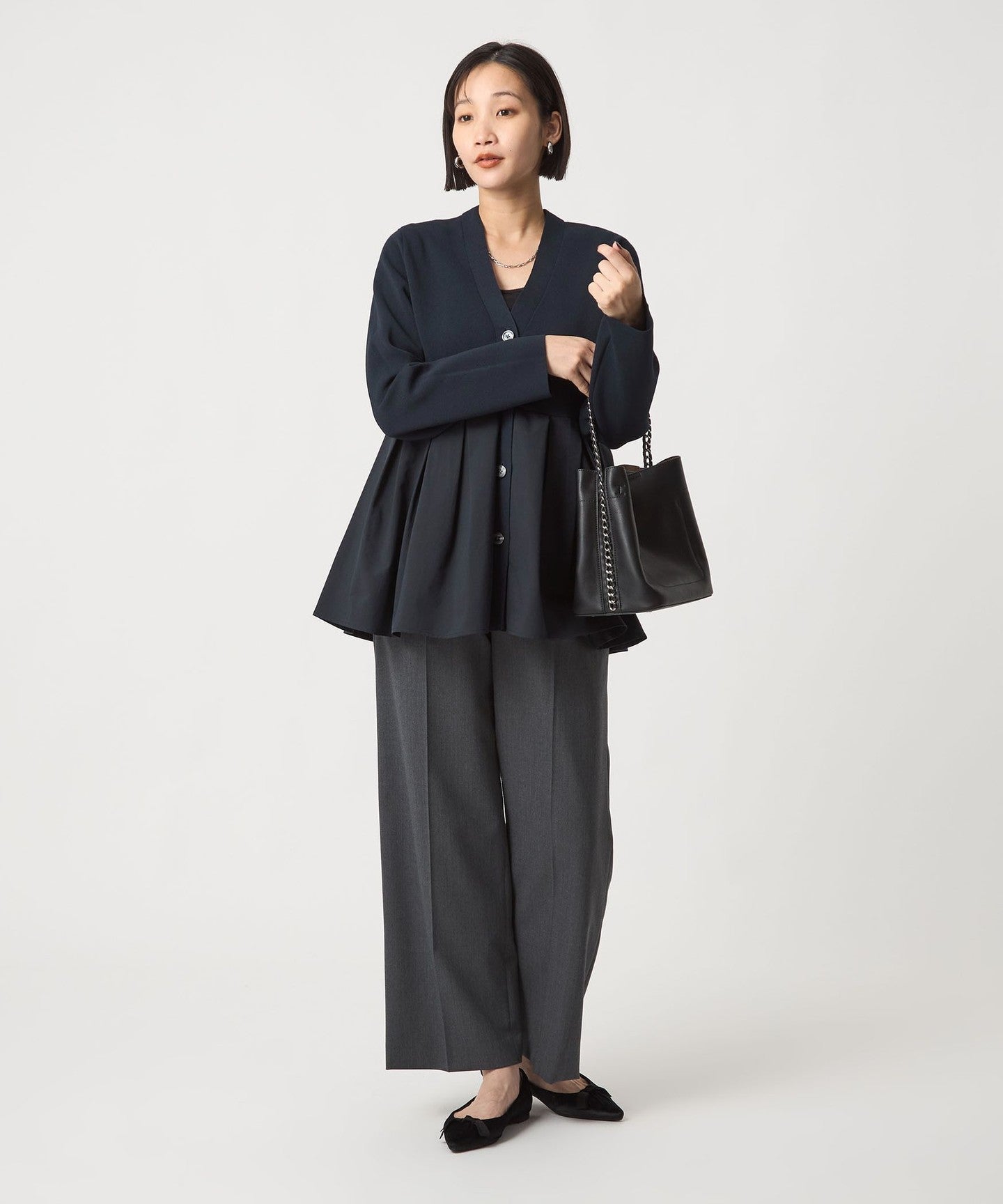 A knit cardigan with an attractive, fluffy peplum silhouette.