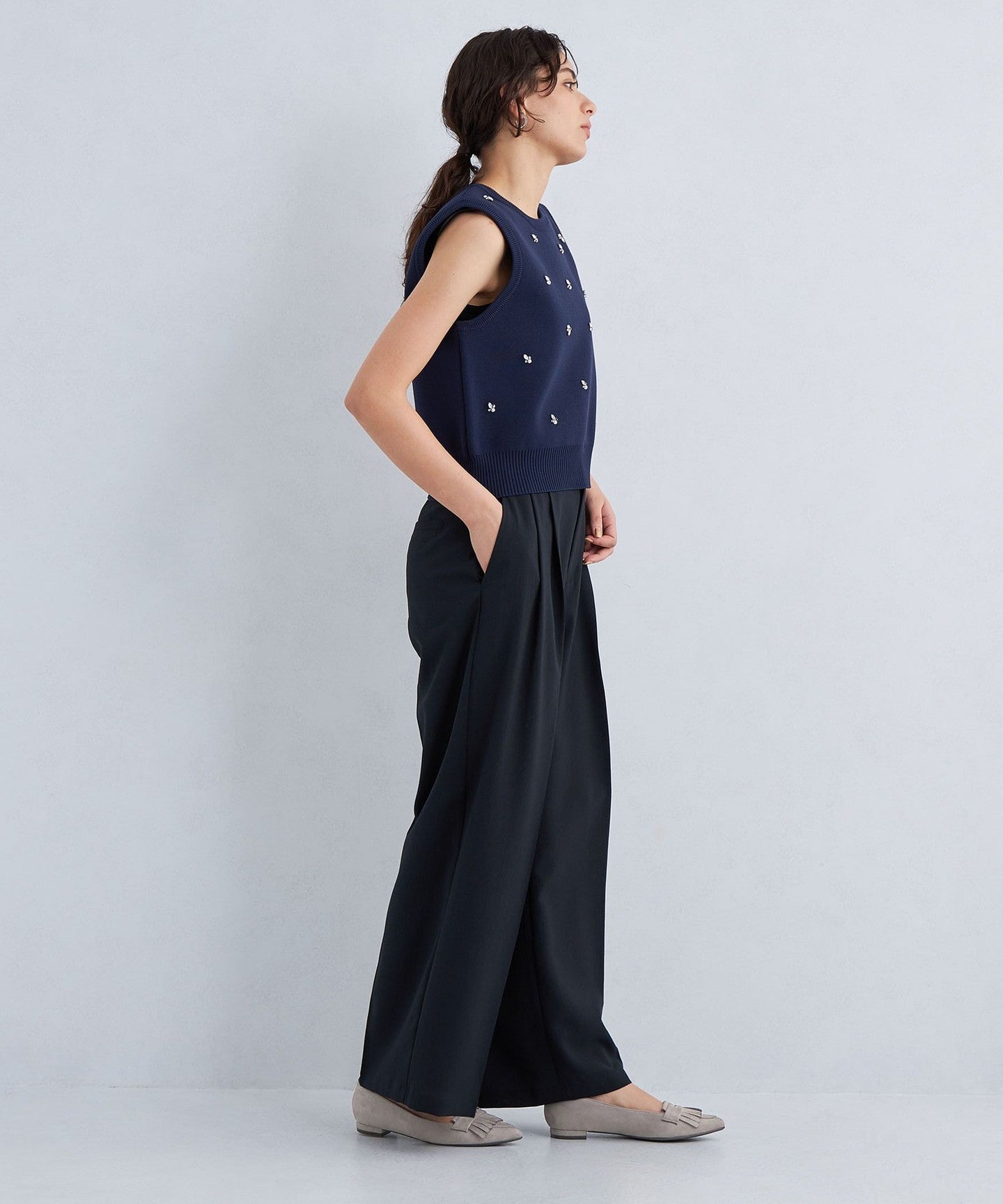 It looks the same tone as the innerwear, giving it a sophisticated impression.
