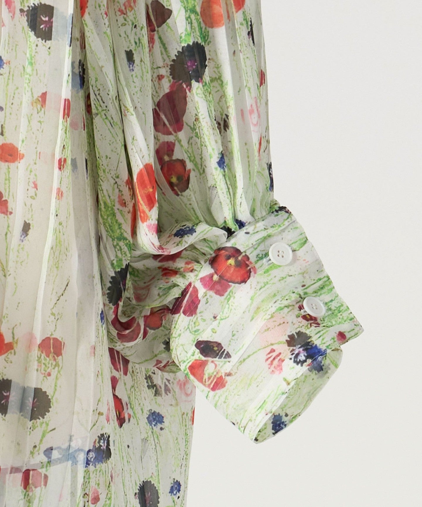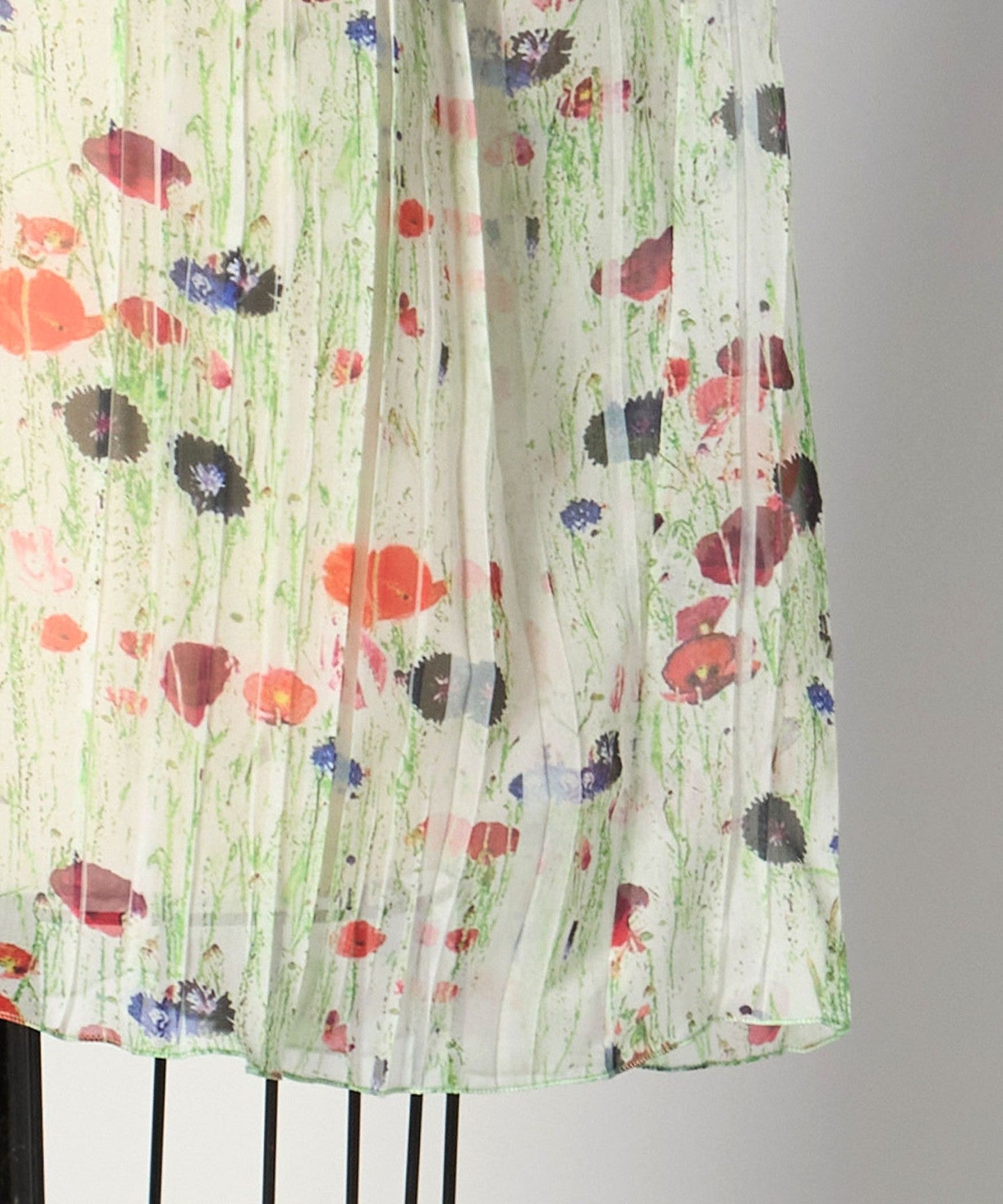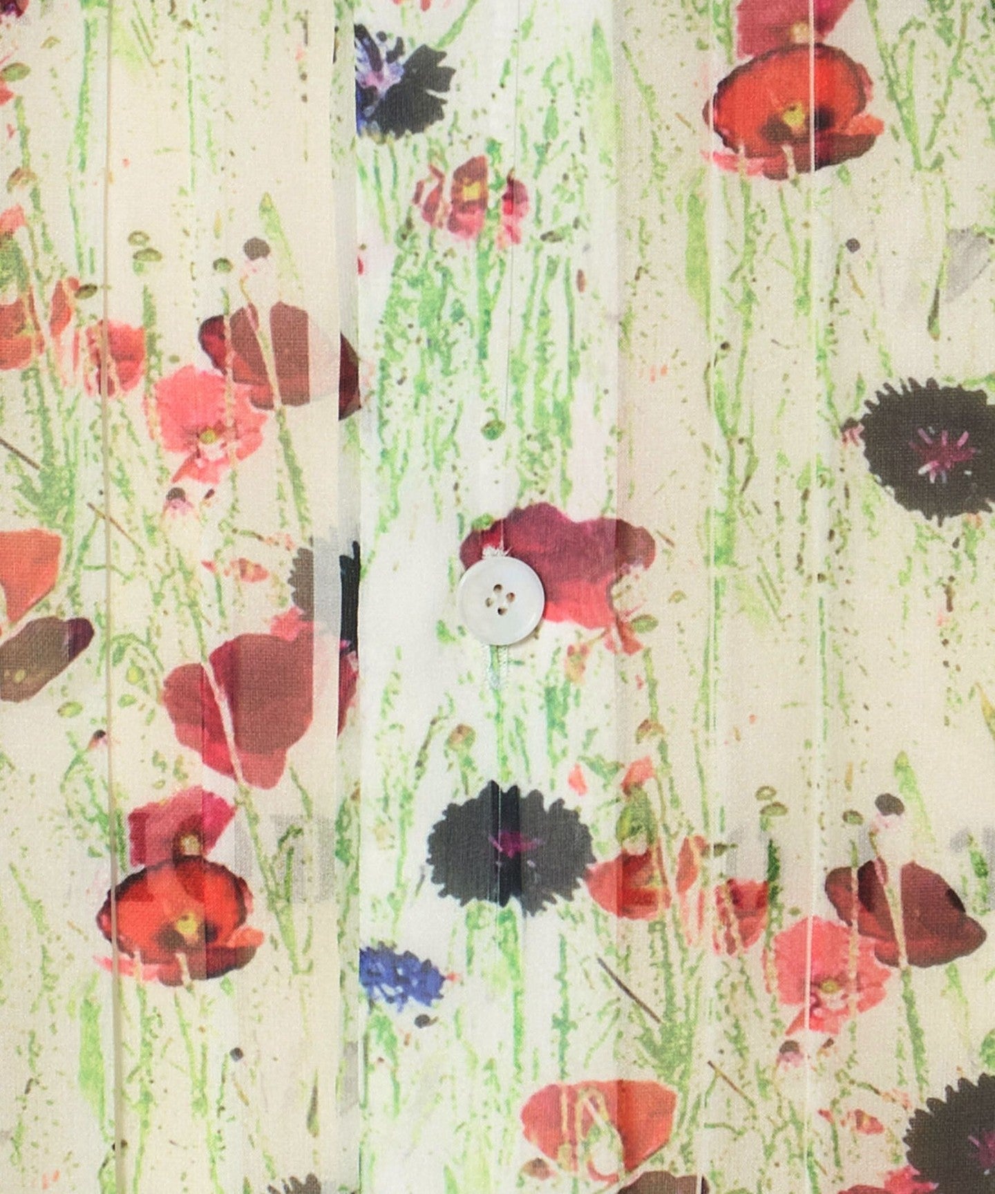 It features a colorful botanical print pattern with a poppy motif placed on a lightweight polyester fabric.