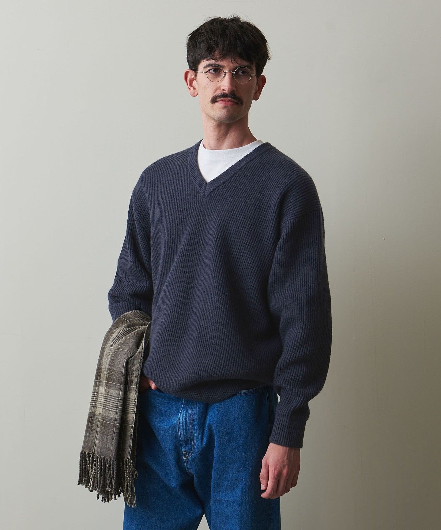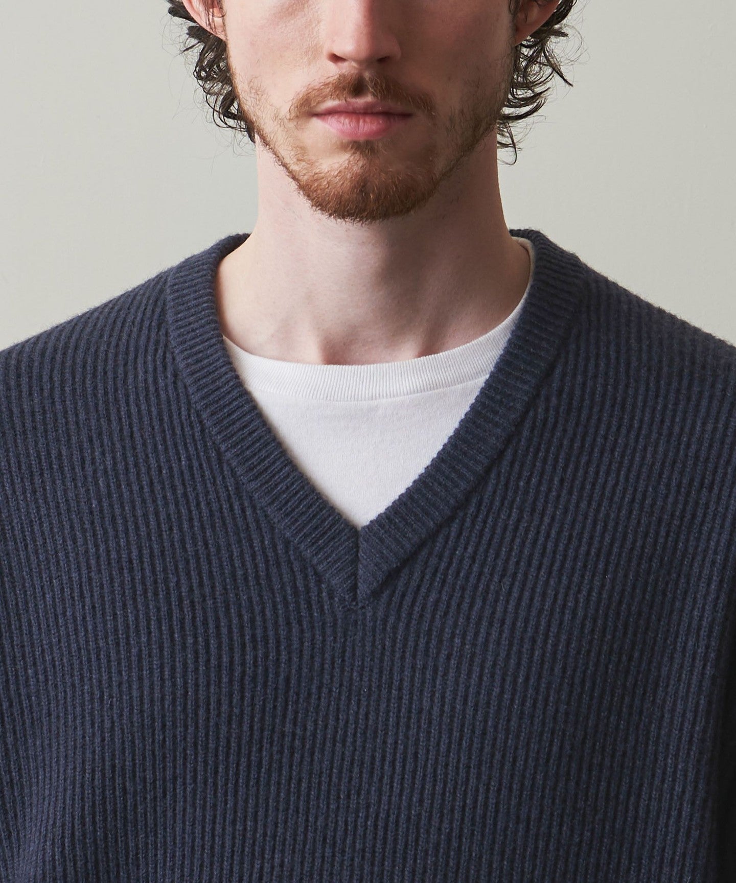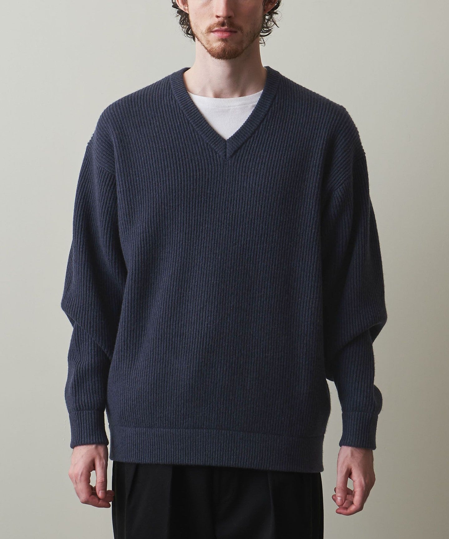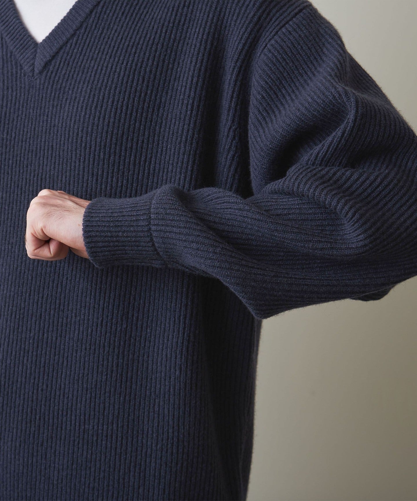 A classic V-neck knit that focuses on the texture of the material.