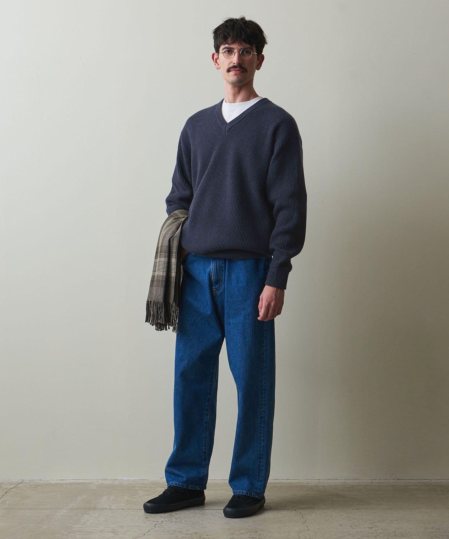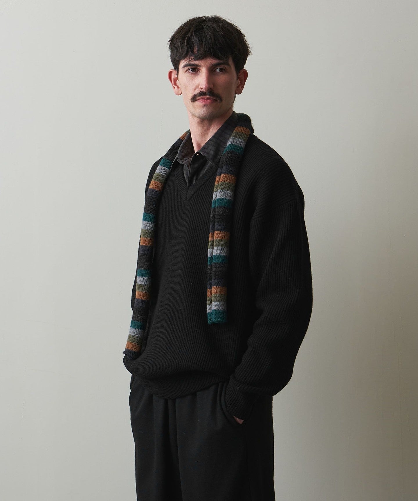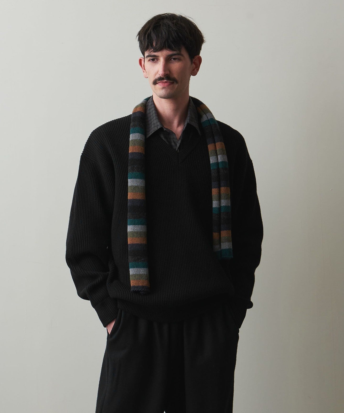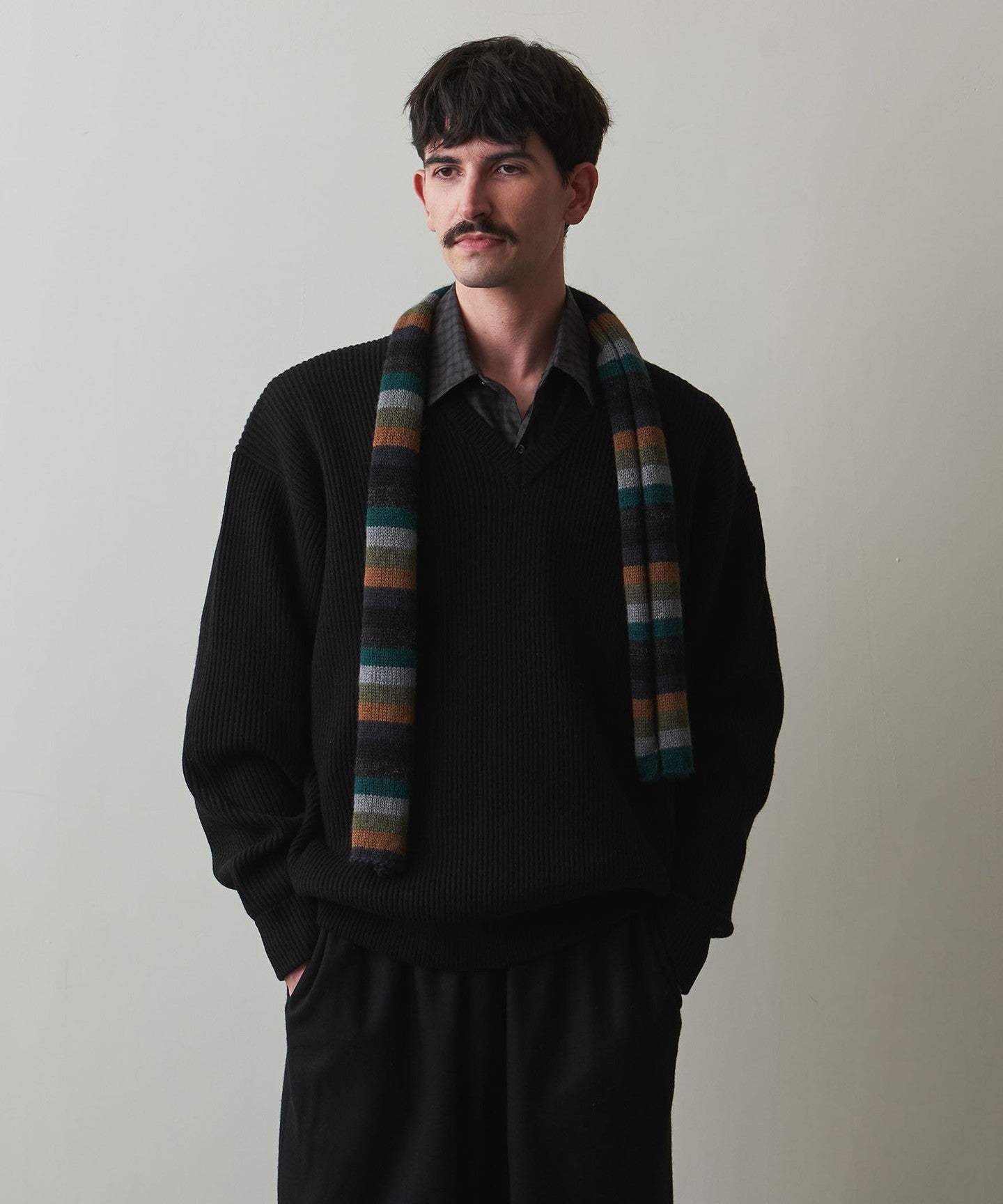 A classic V-neck knit that focuses on the texture of the material.