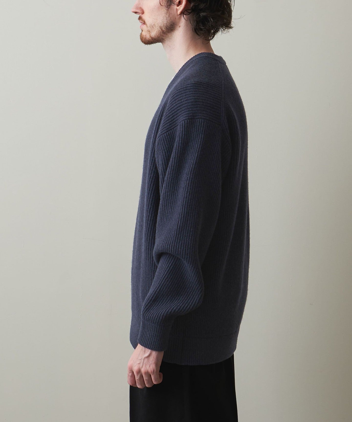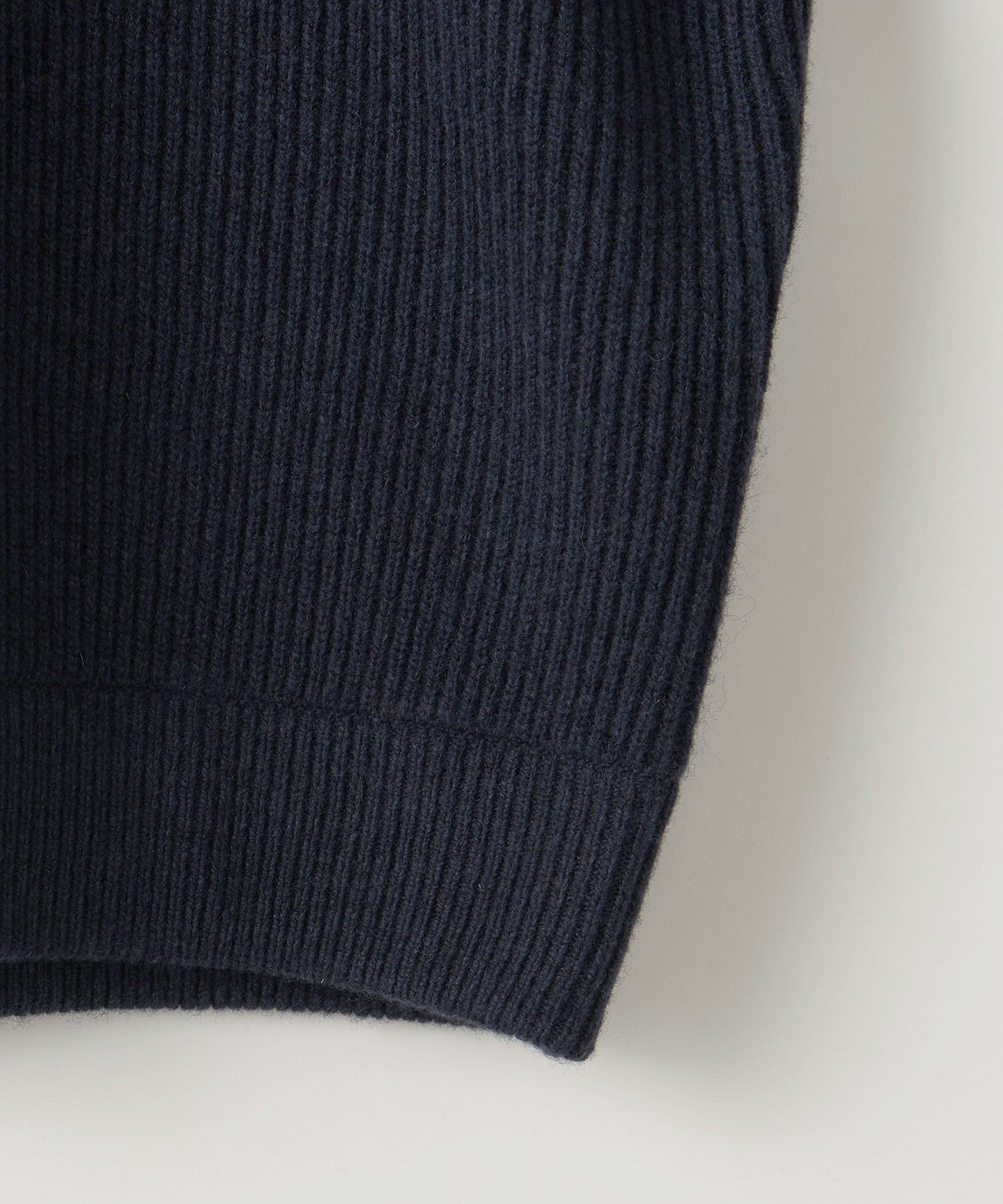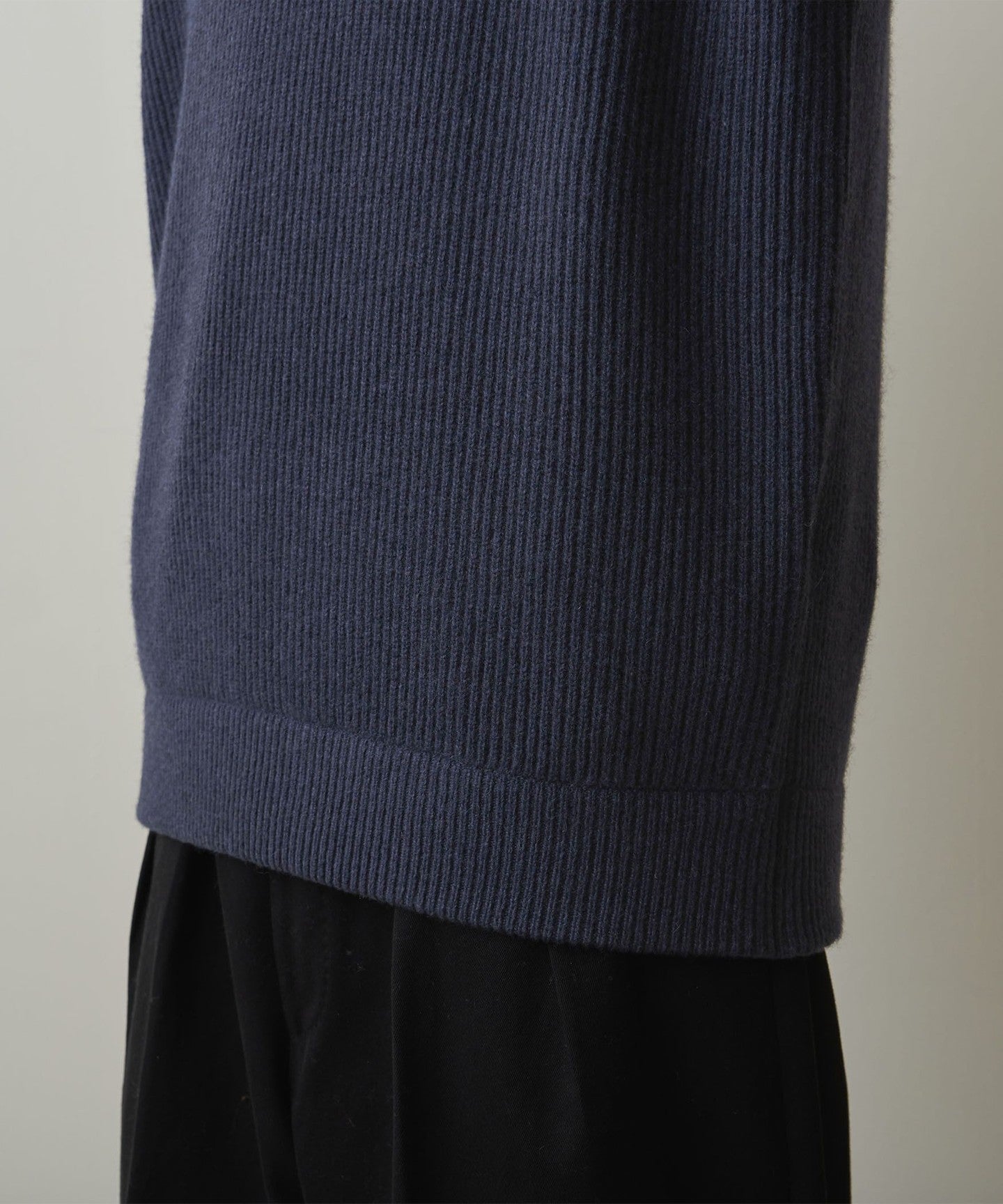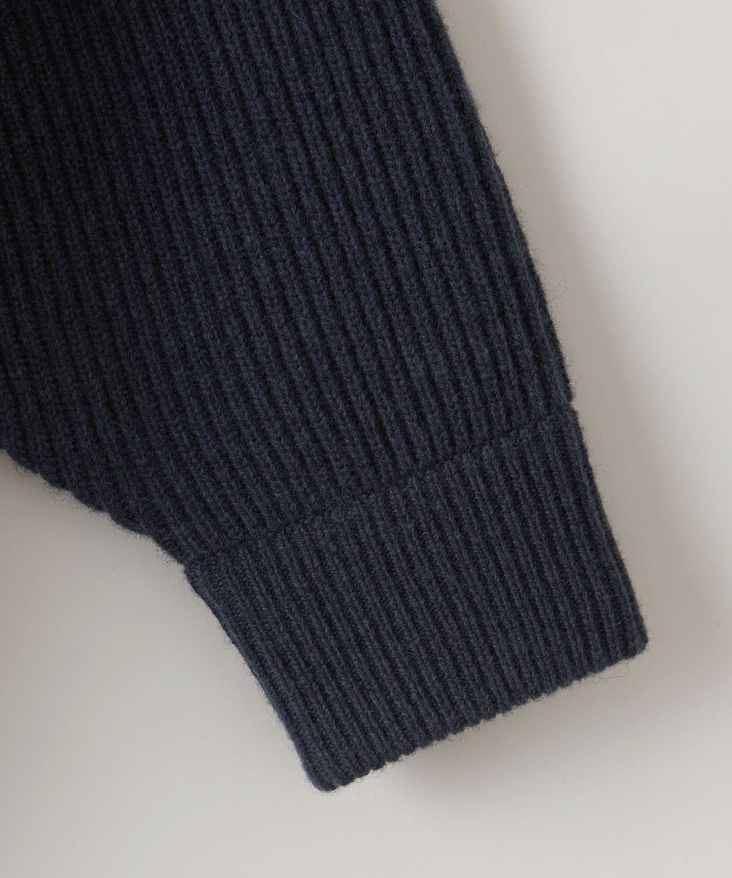 It is knitted with a mid-gauge rib knit to reduce volume.