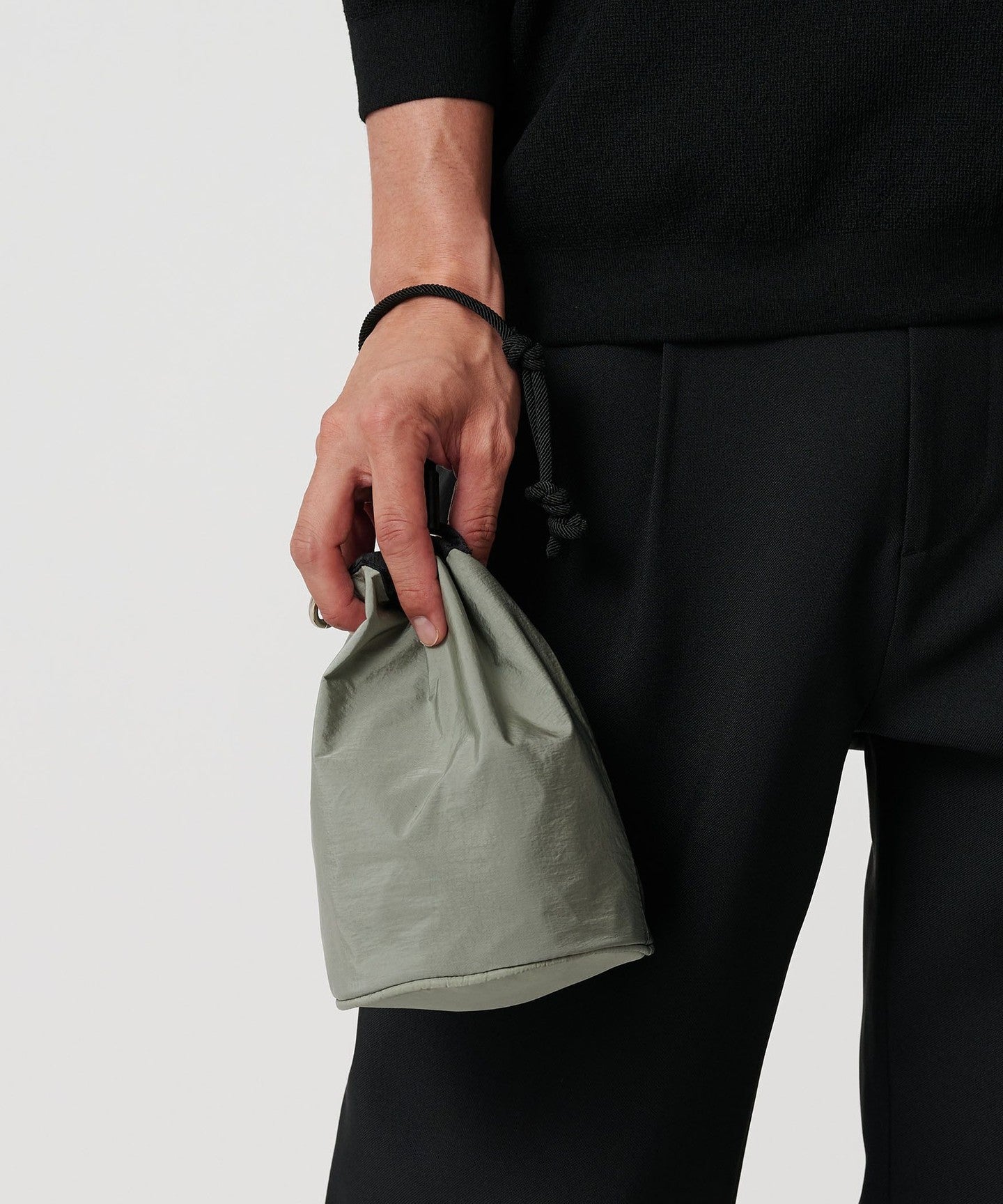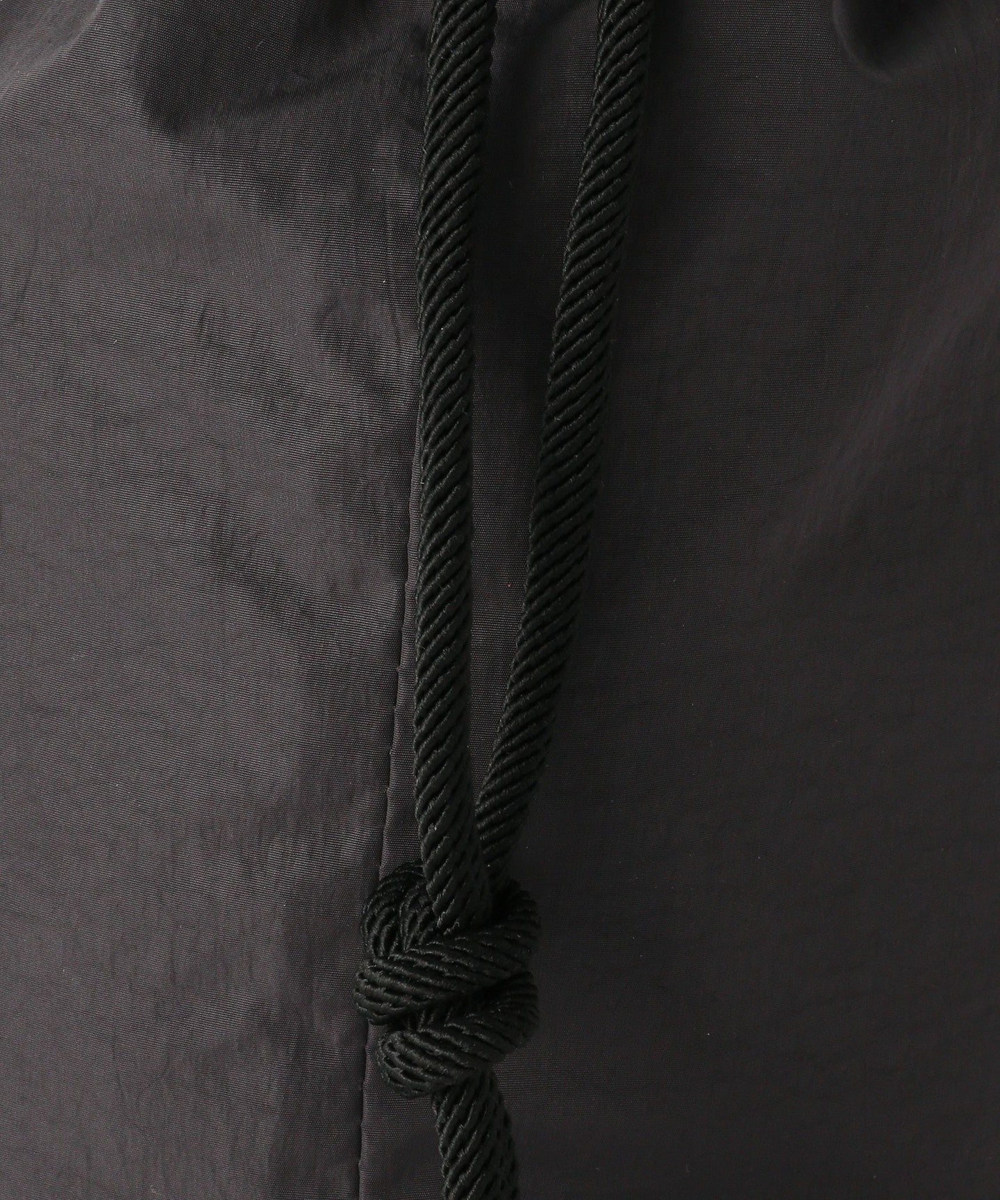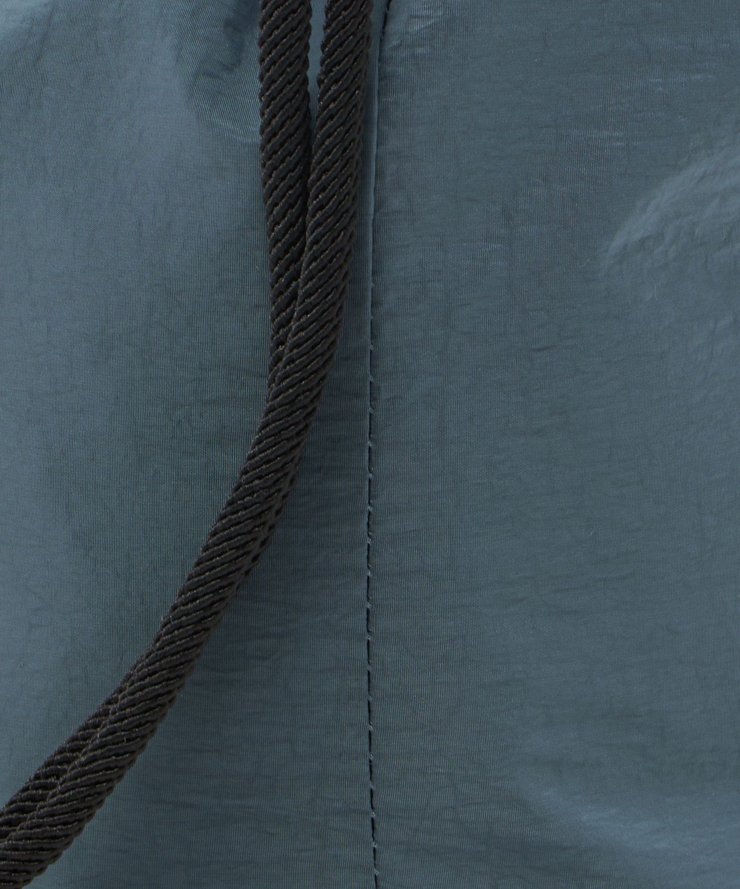 It features a drawstring detail that can be opened and closed by adjusting the string.