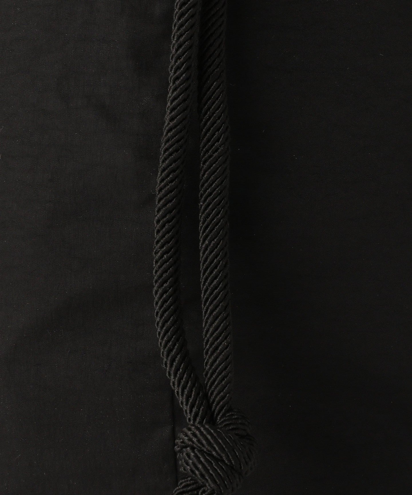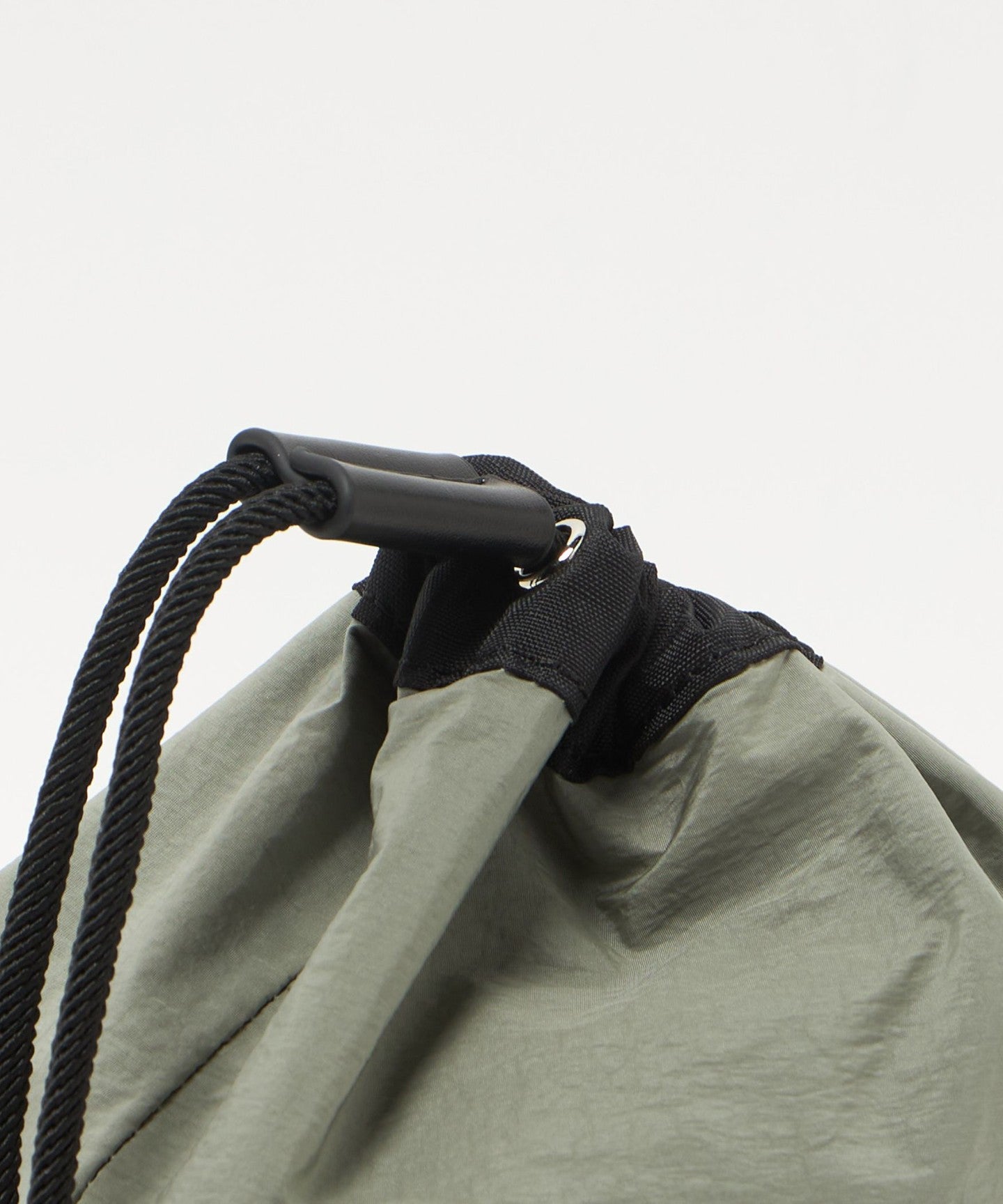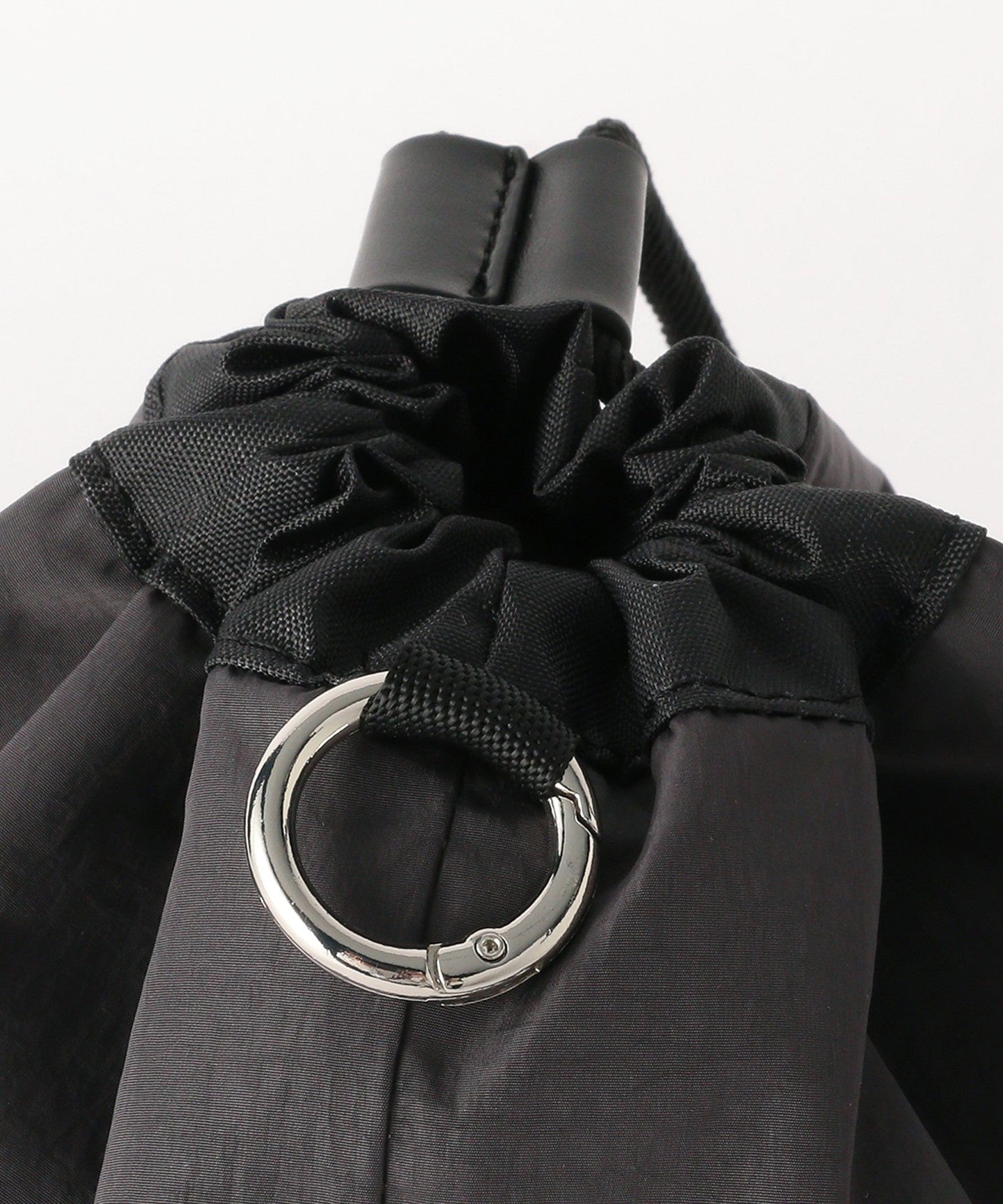 It features a drawstring detail that can be opened and closed by adjusting the string.