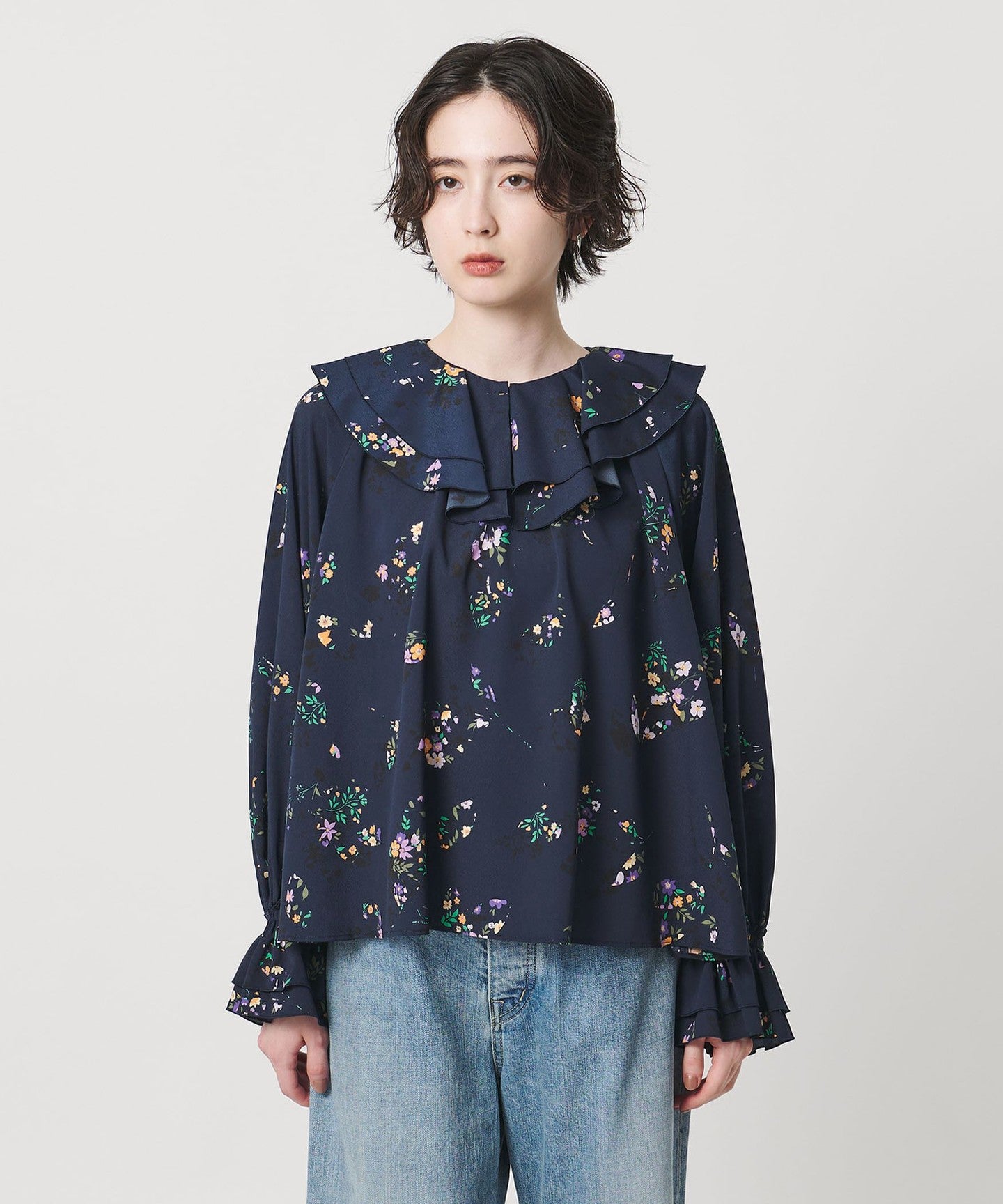 A gorgeous blouse with a three-dimensional look thanks to the double layered collar and cuffs.