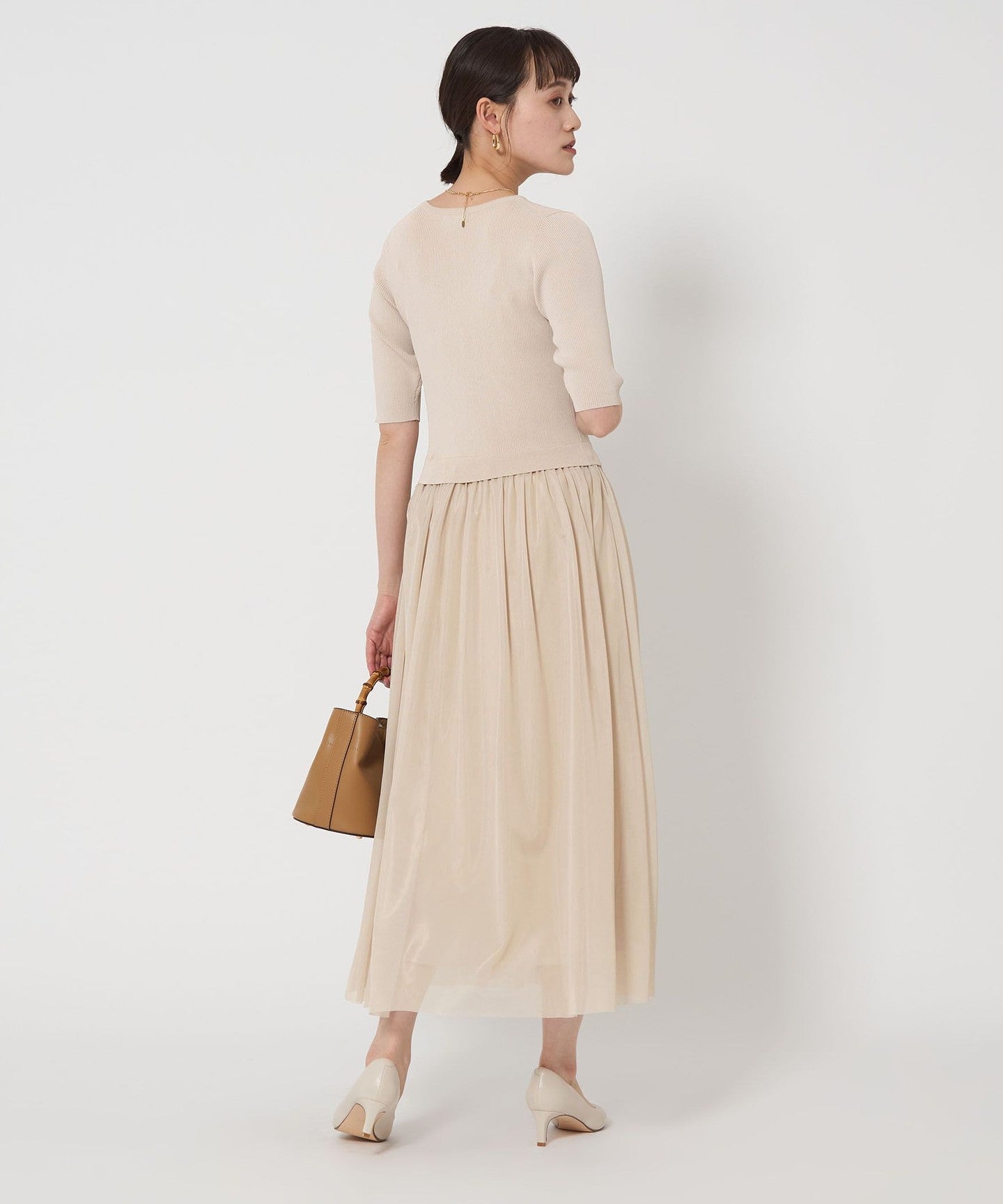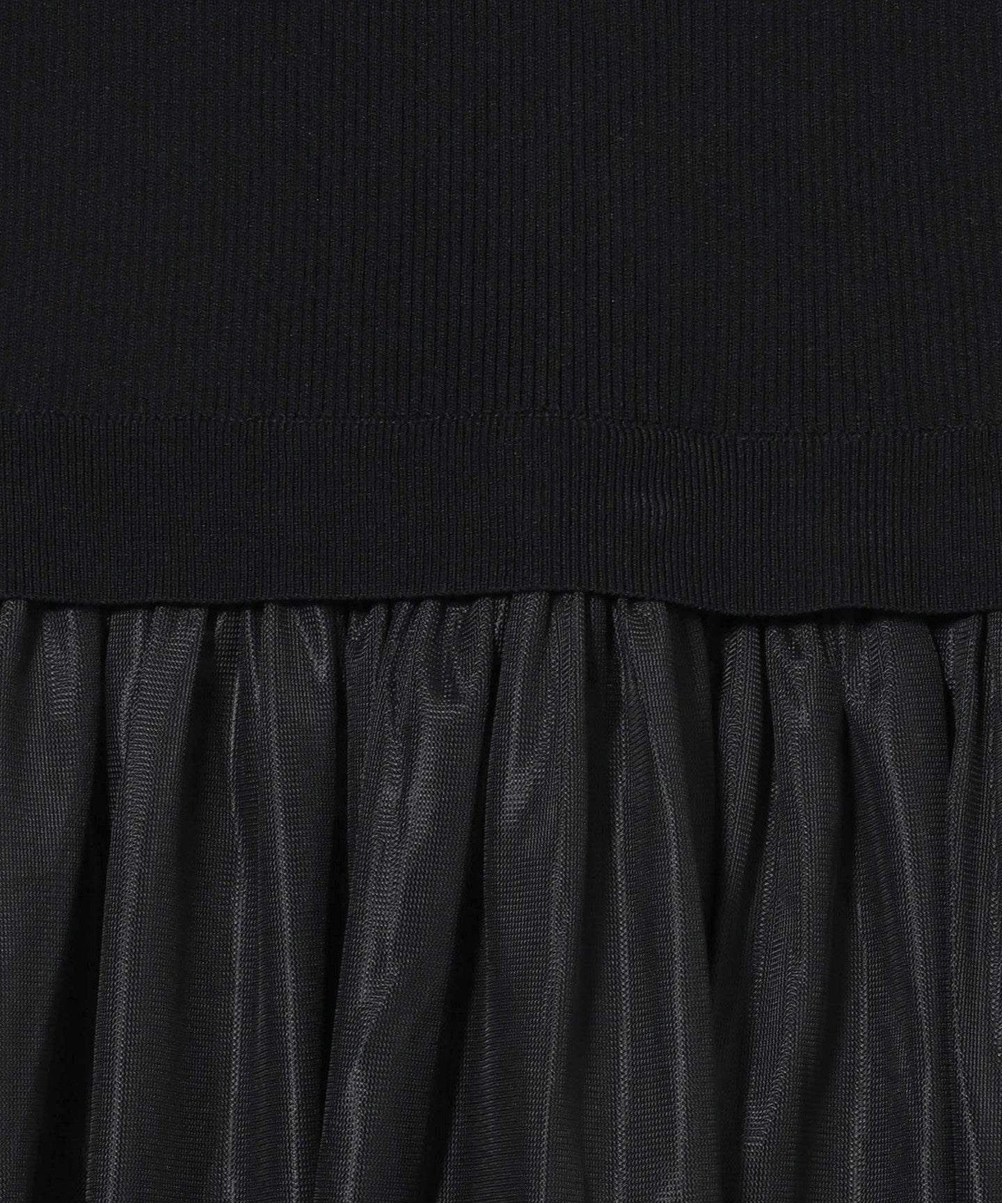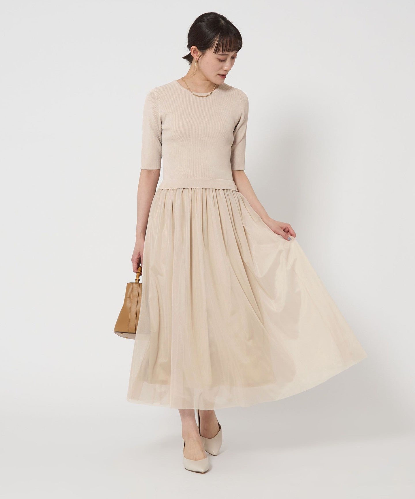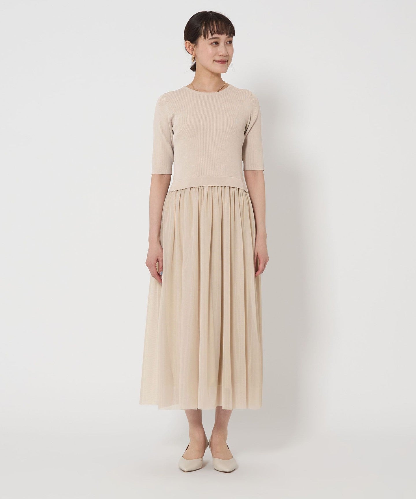 The upper body is made of knit material and the skirt is made of soft tulle material.