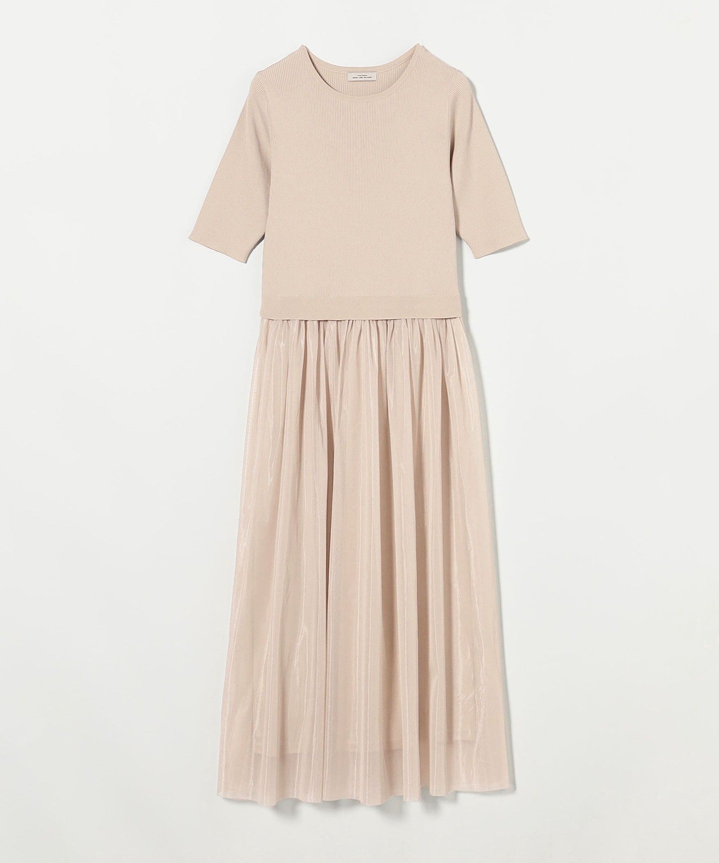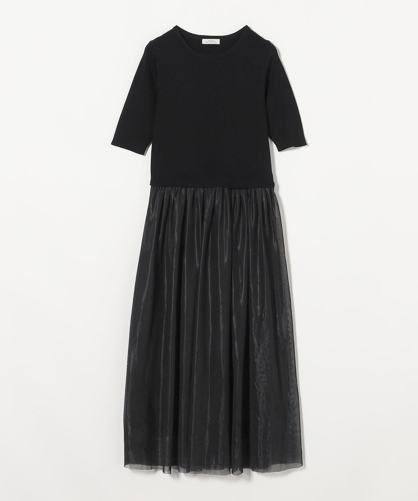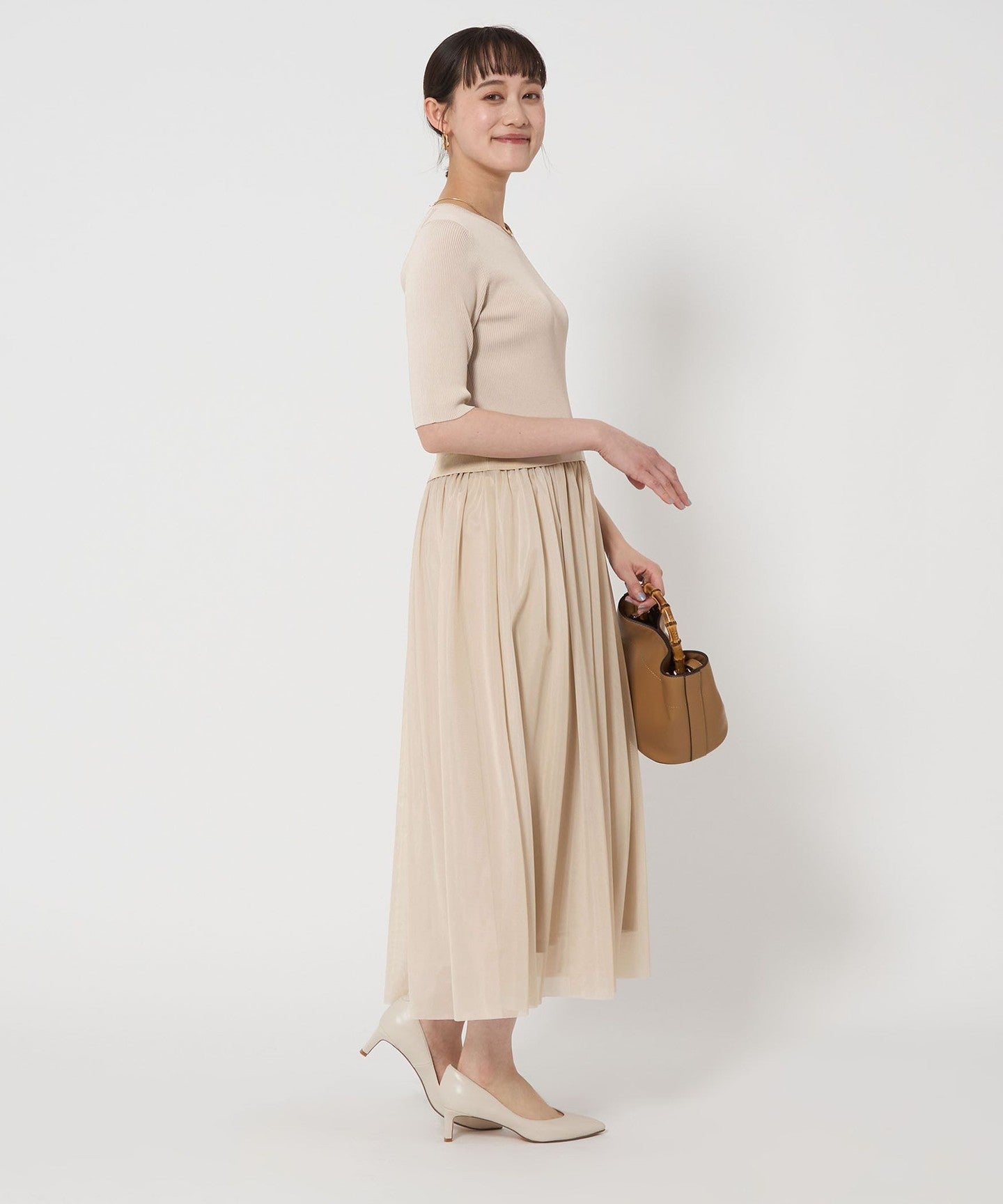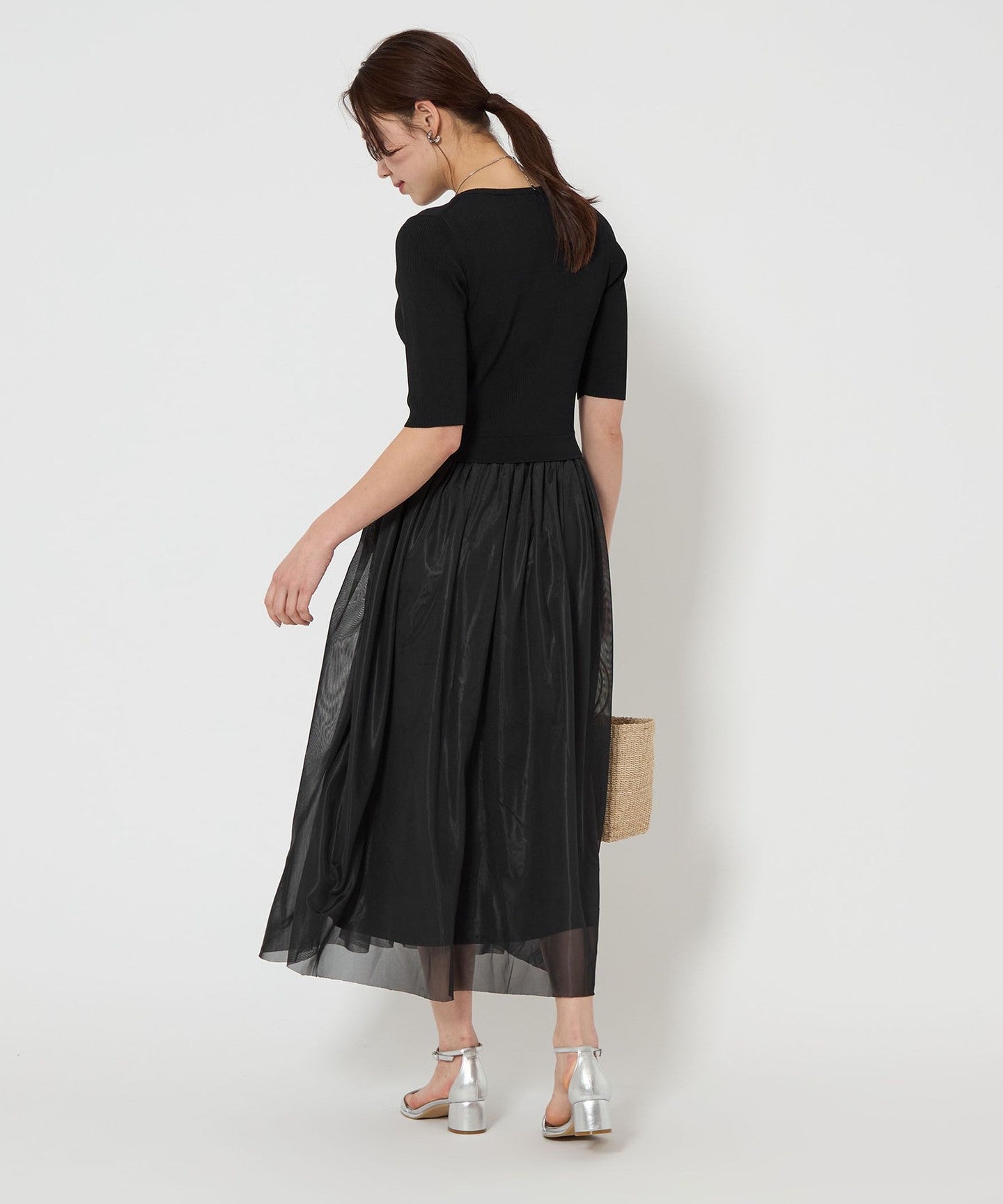 The upper body is made of knit material and the skirt is made of soft tulle material.