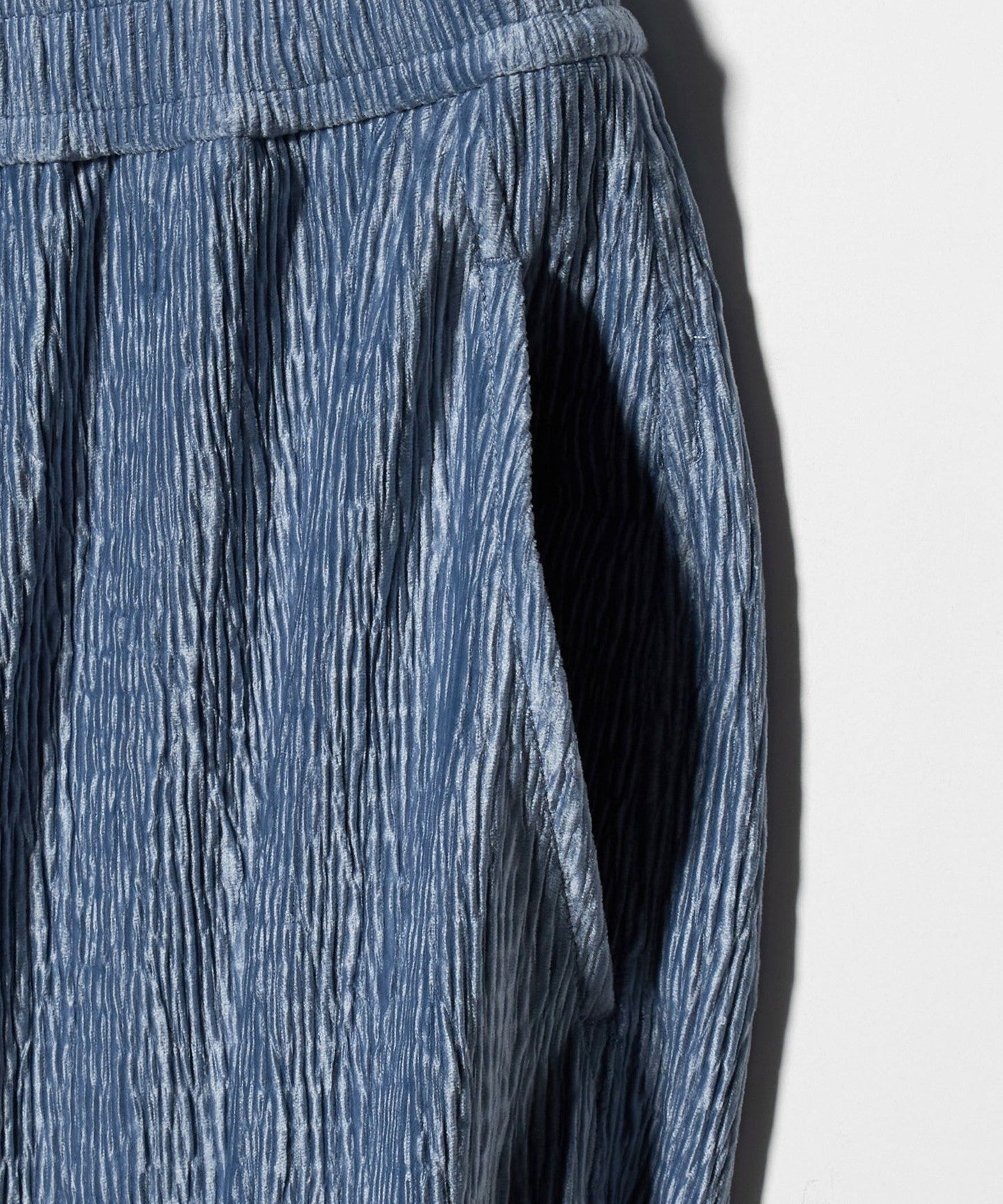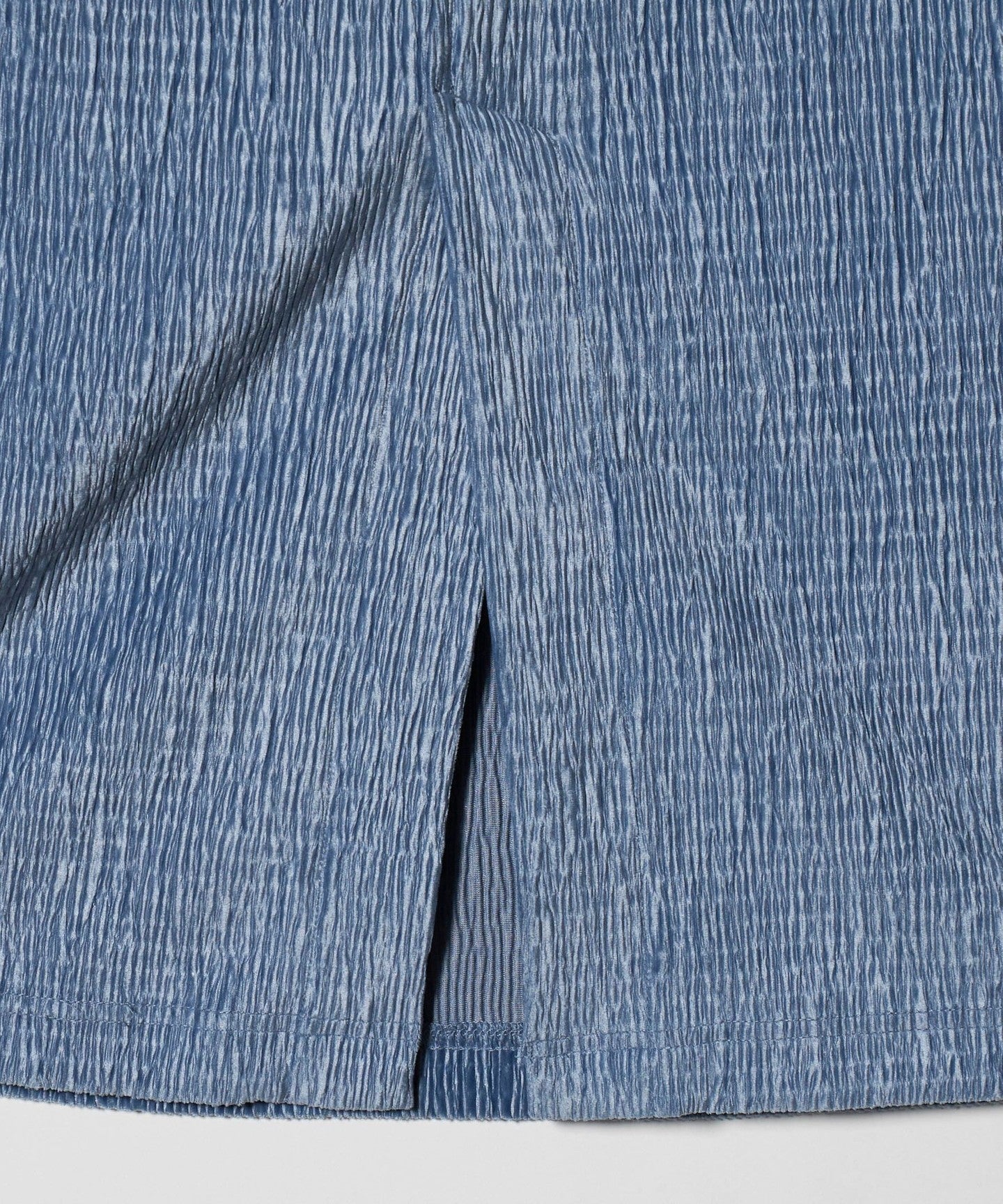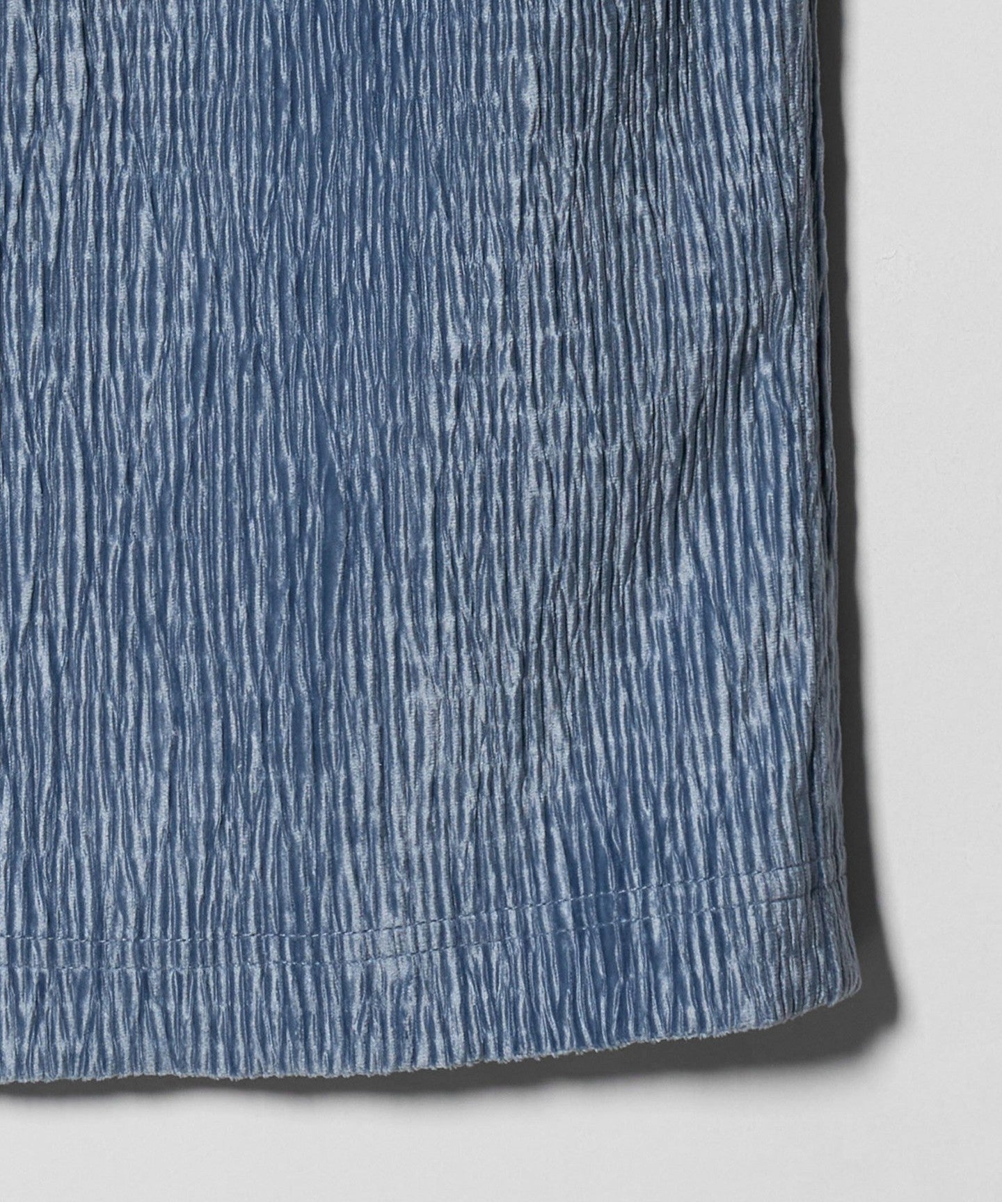 It is made from a cut-and-sew material with a textured feel that resembles fine pleats.