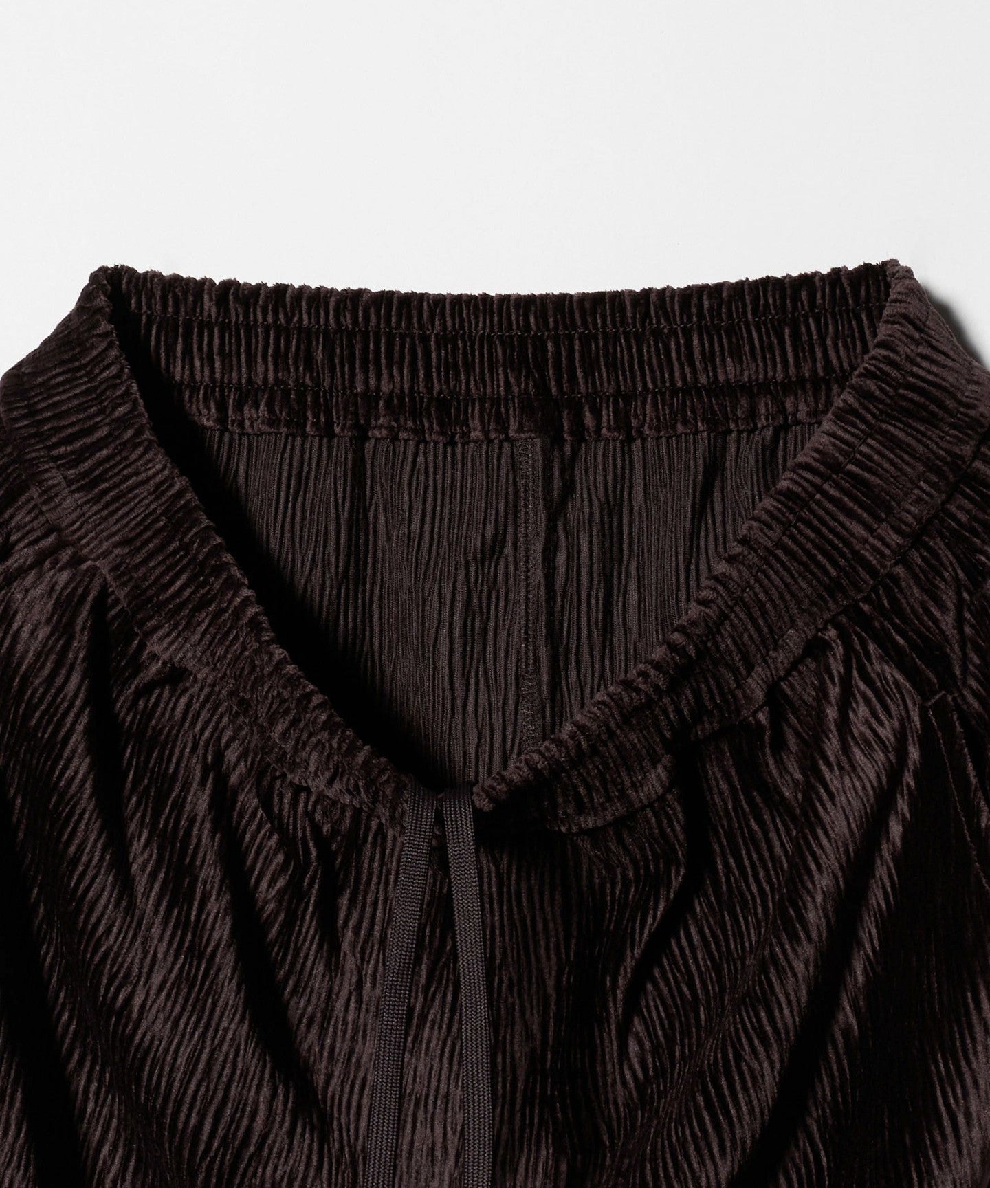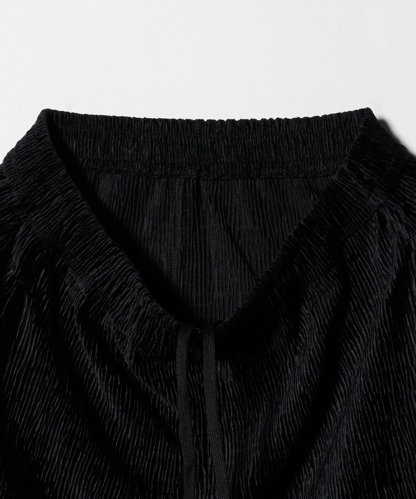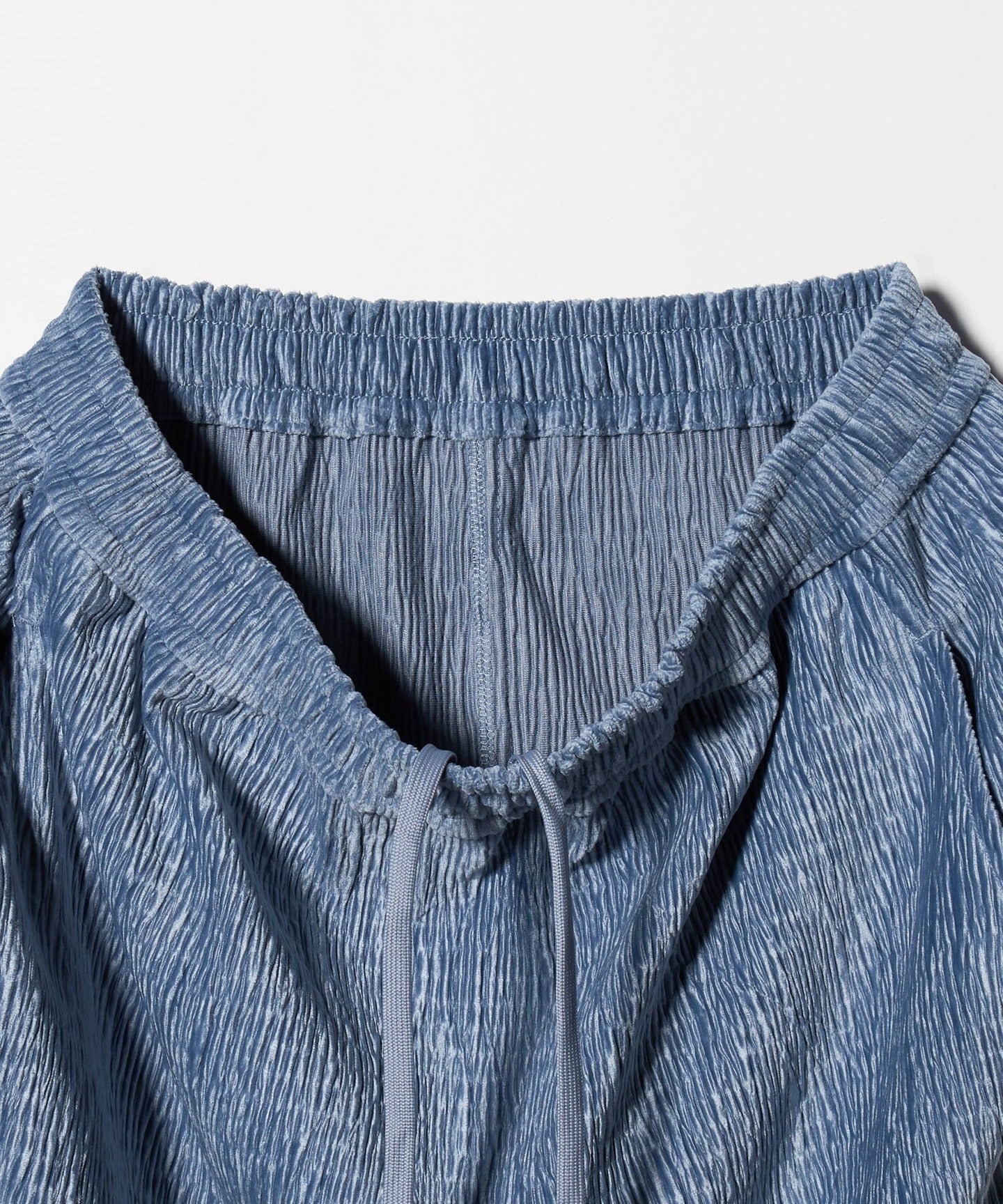 It is made from a cut-and-sew material with a textured feel that resembles fine pleats.