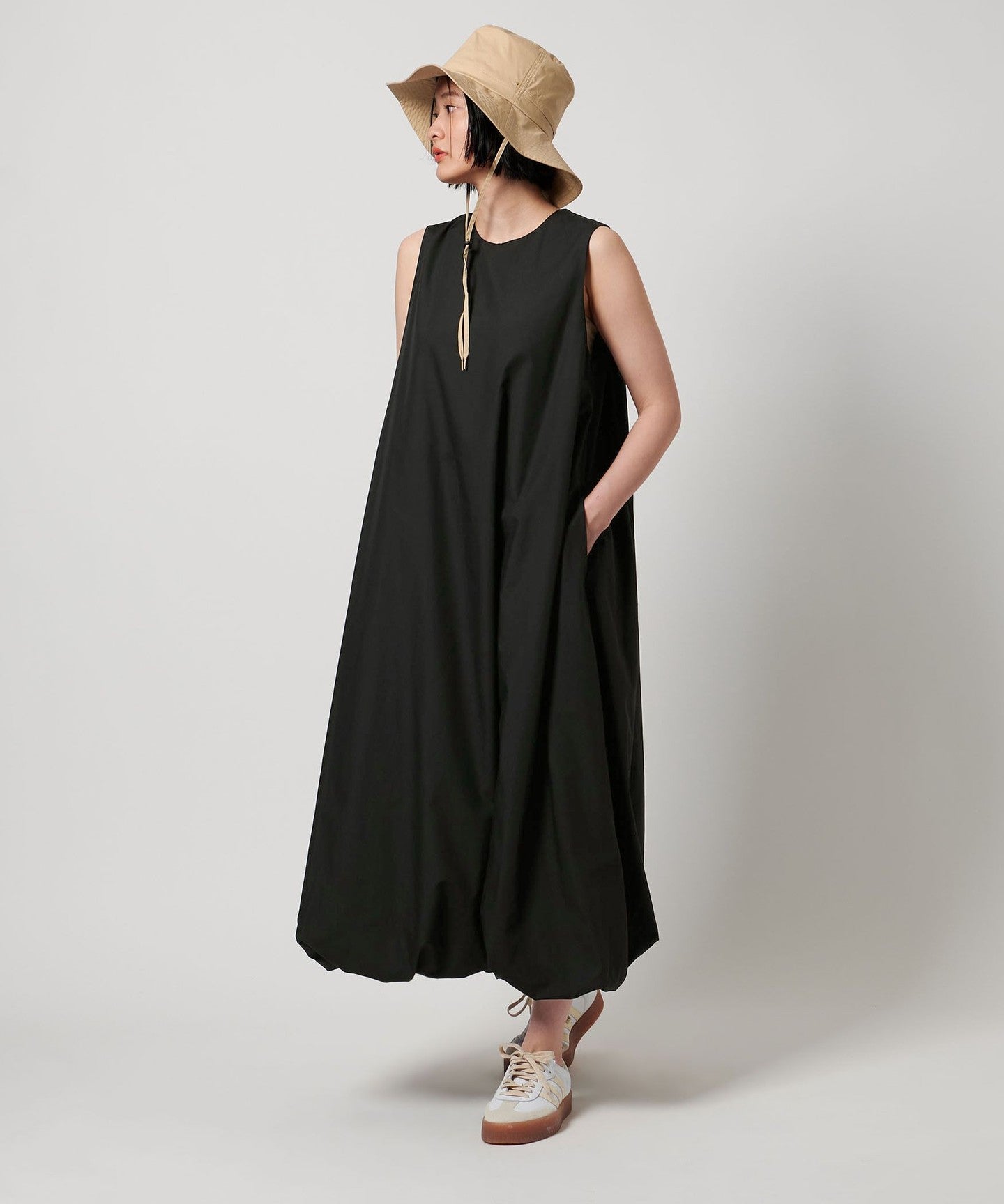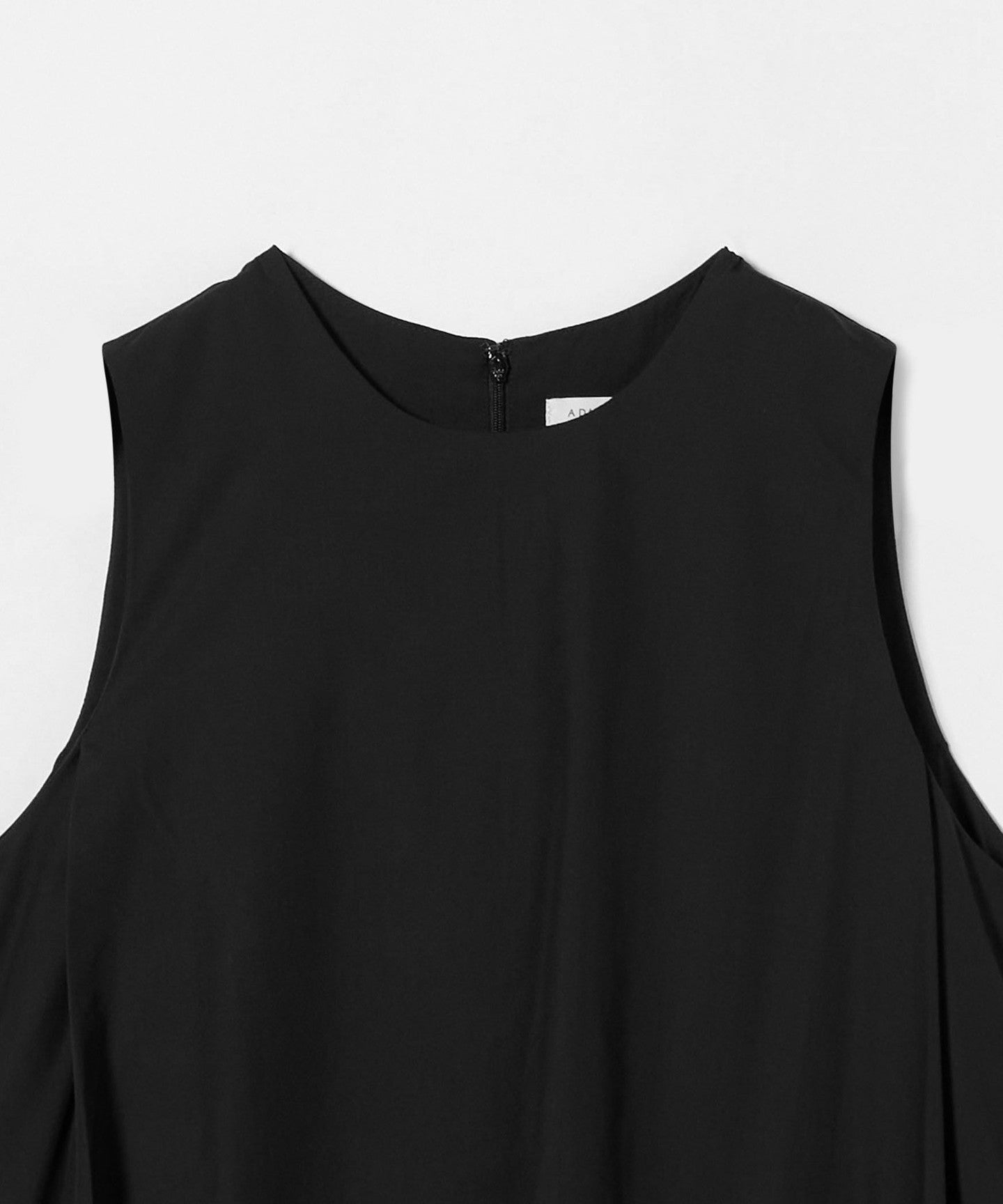 This piece features a beautiful contrast between the clean sleeveless design and the voluminous balloon silhouette.