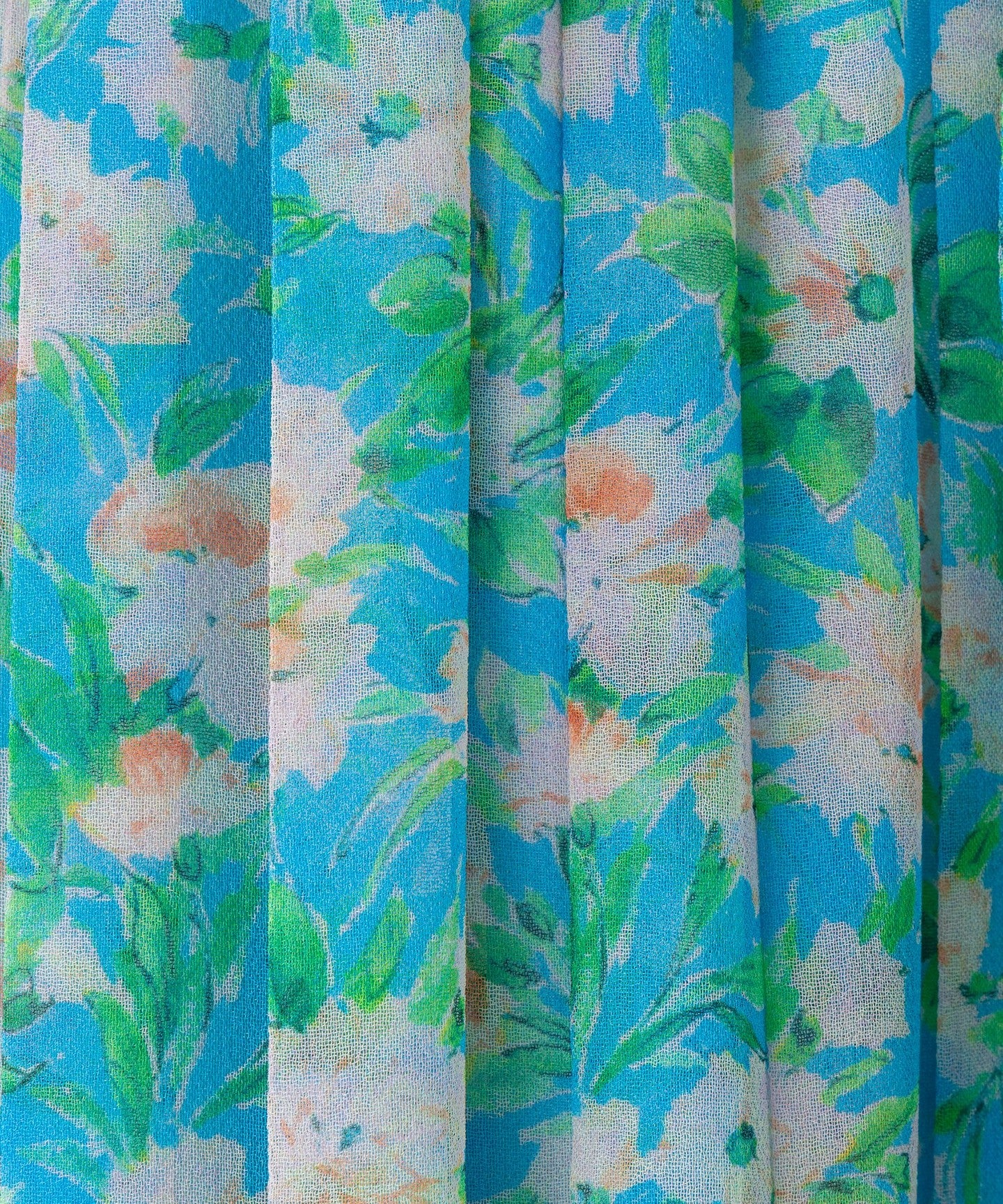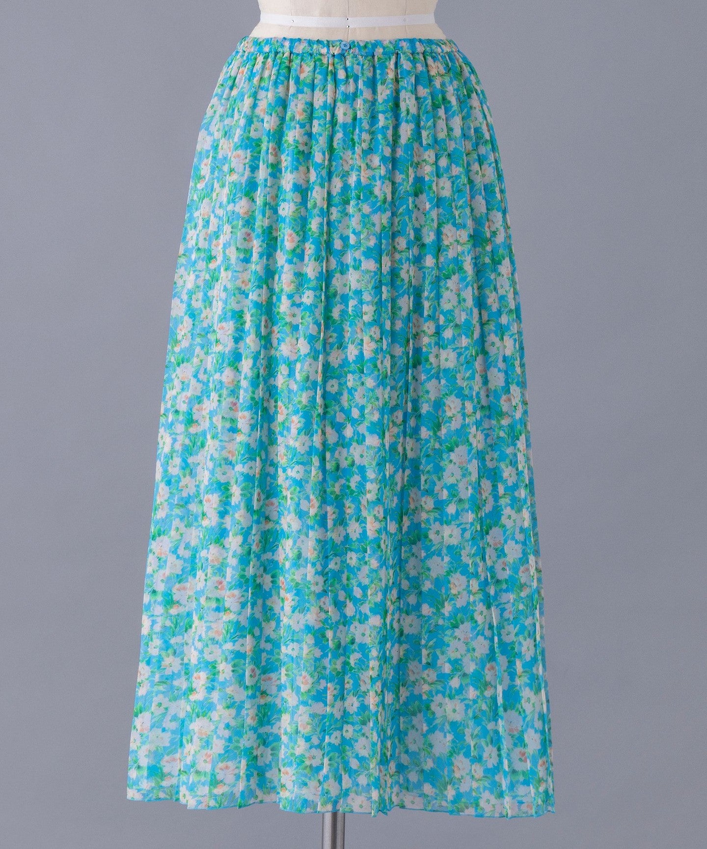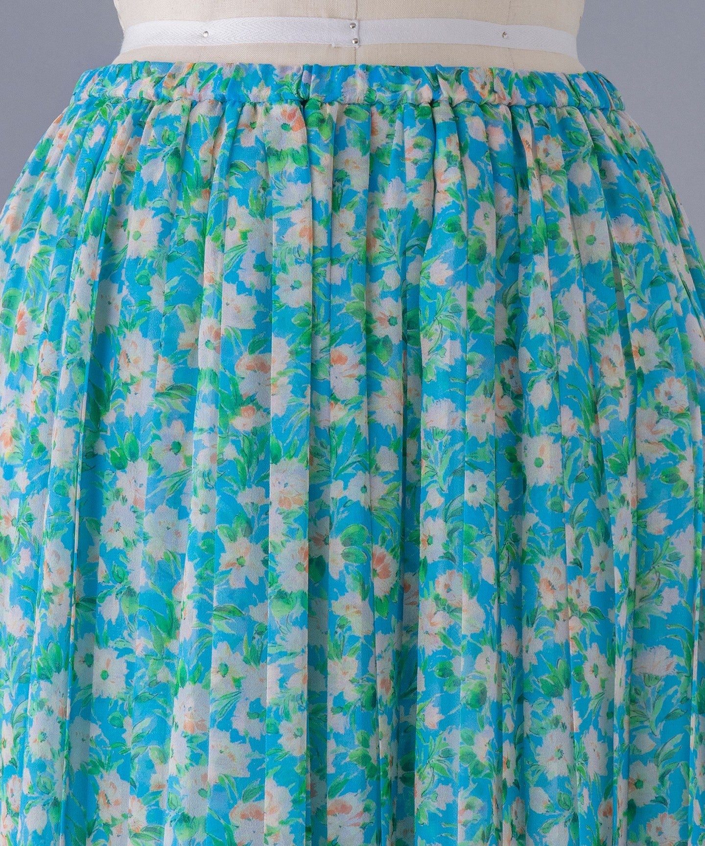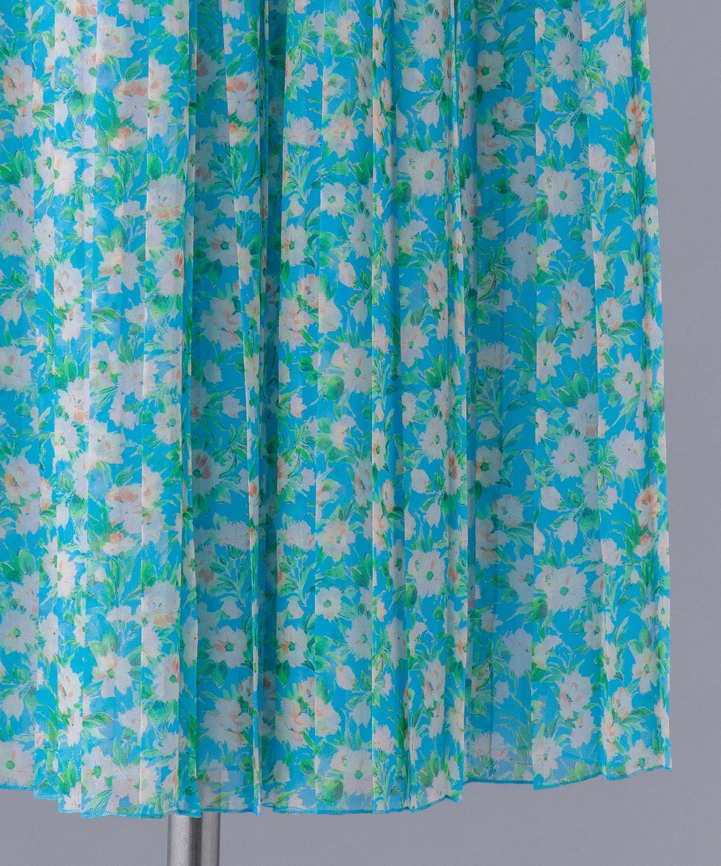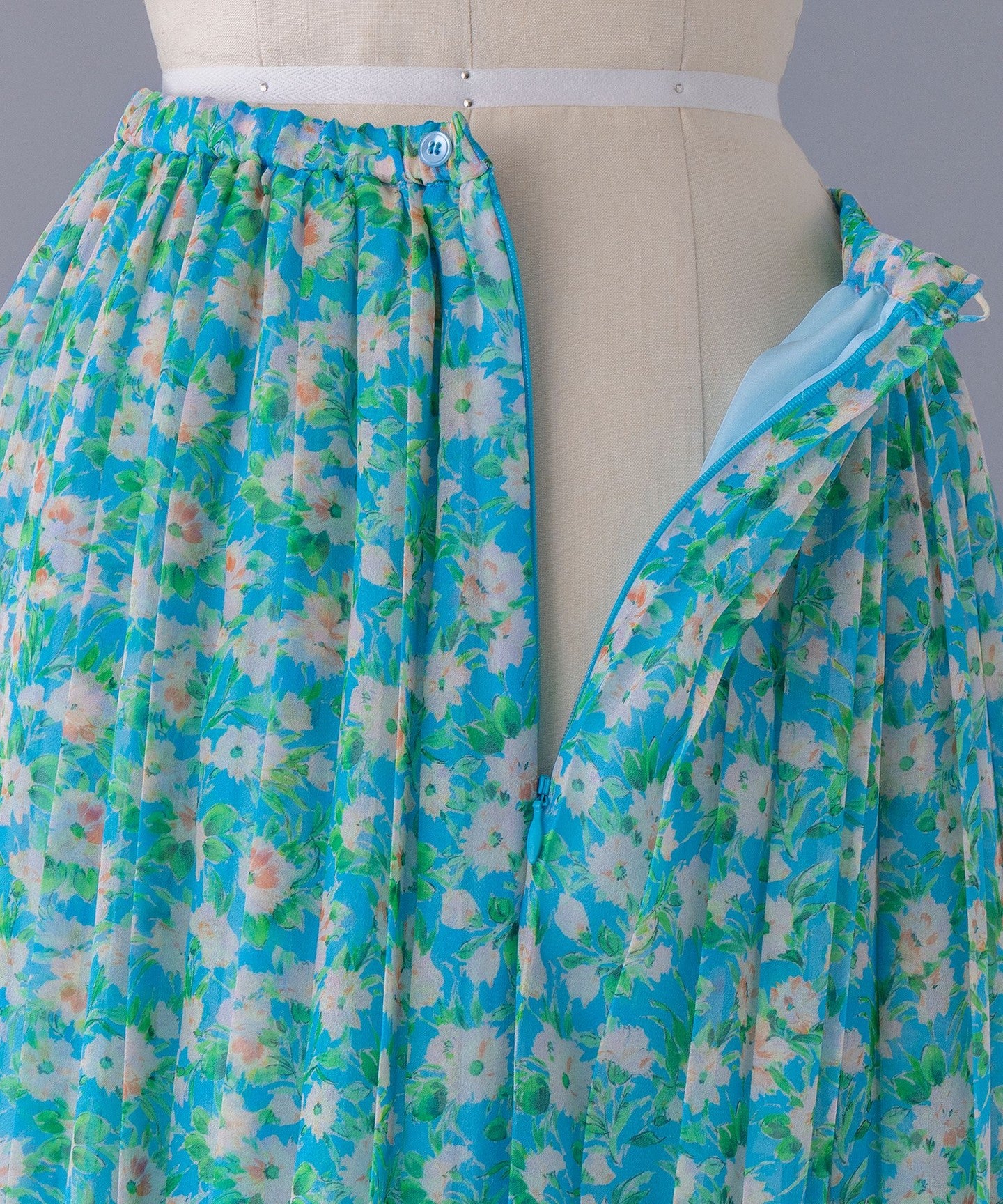 A pleated skirt with an eye-catching floral print that gives off a retro vibe