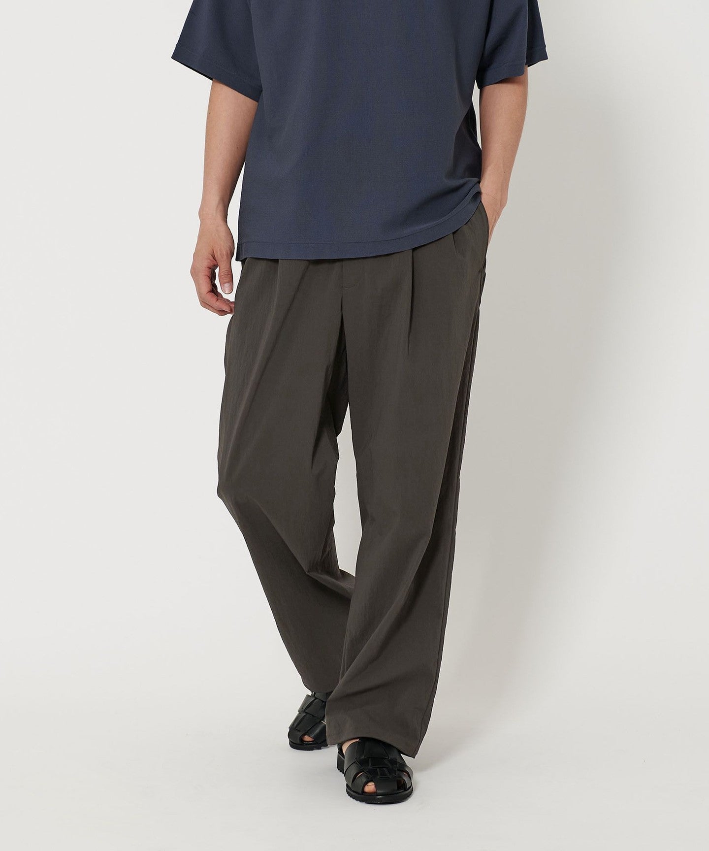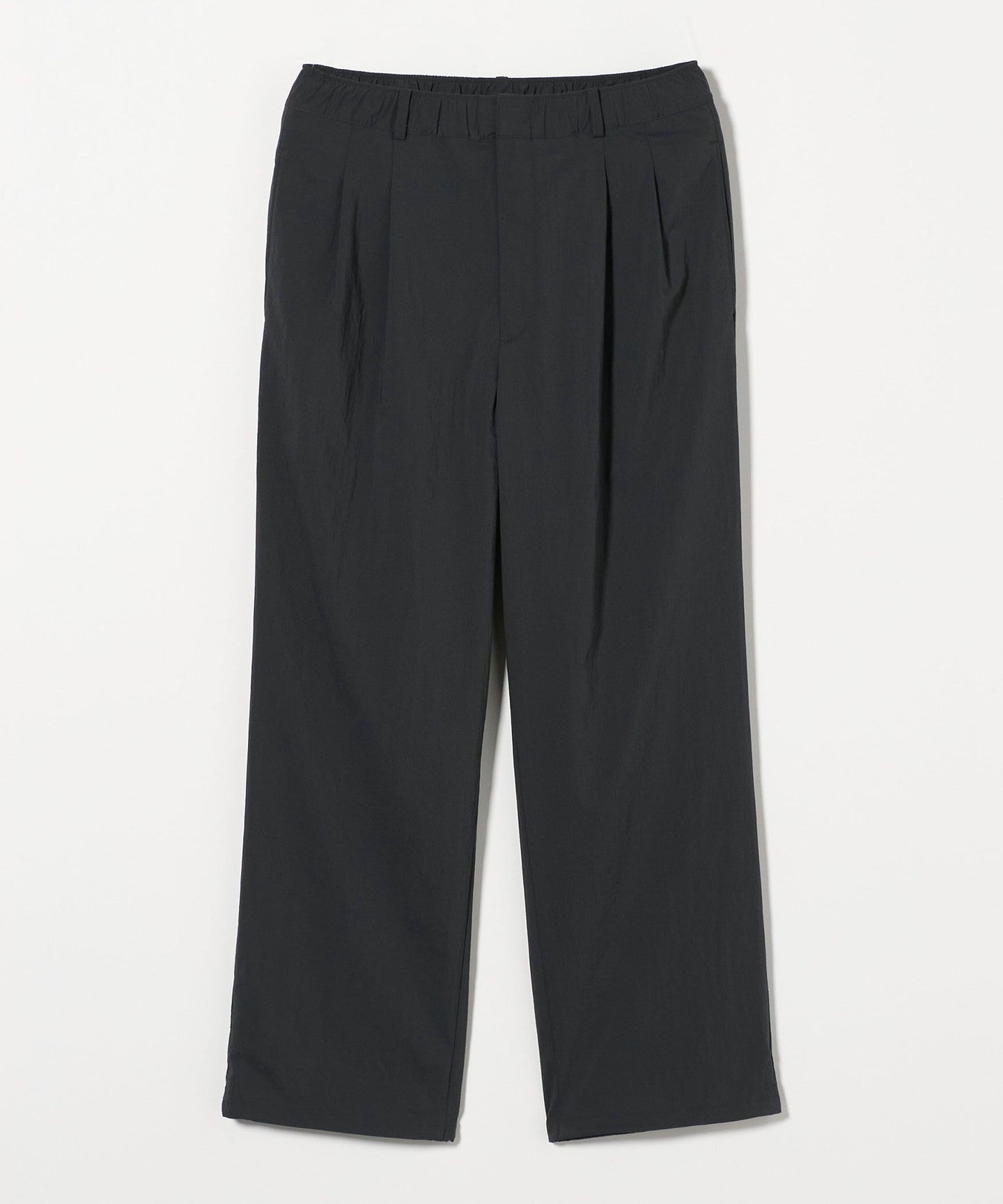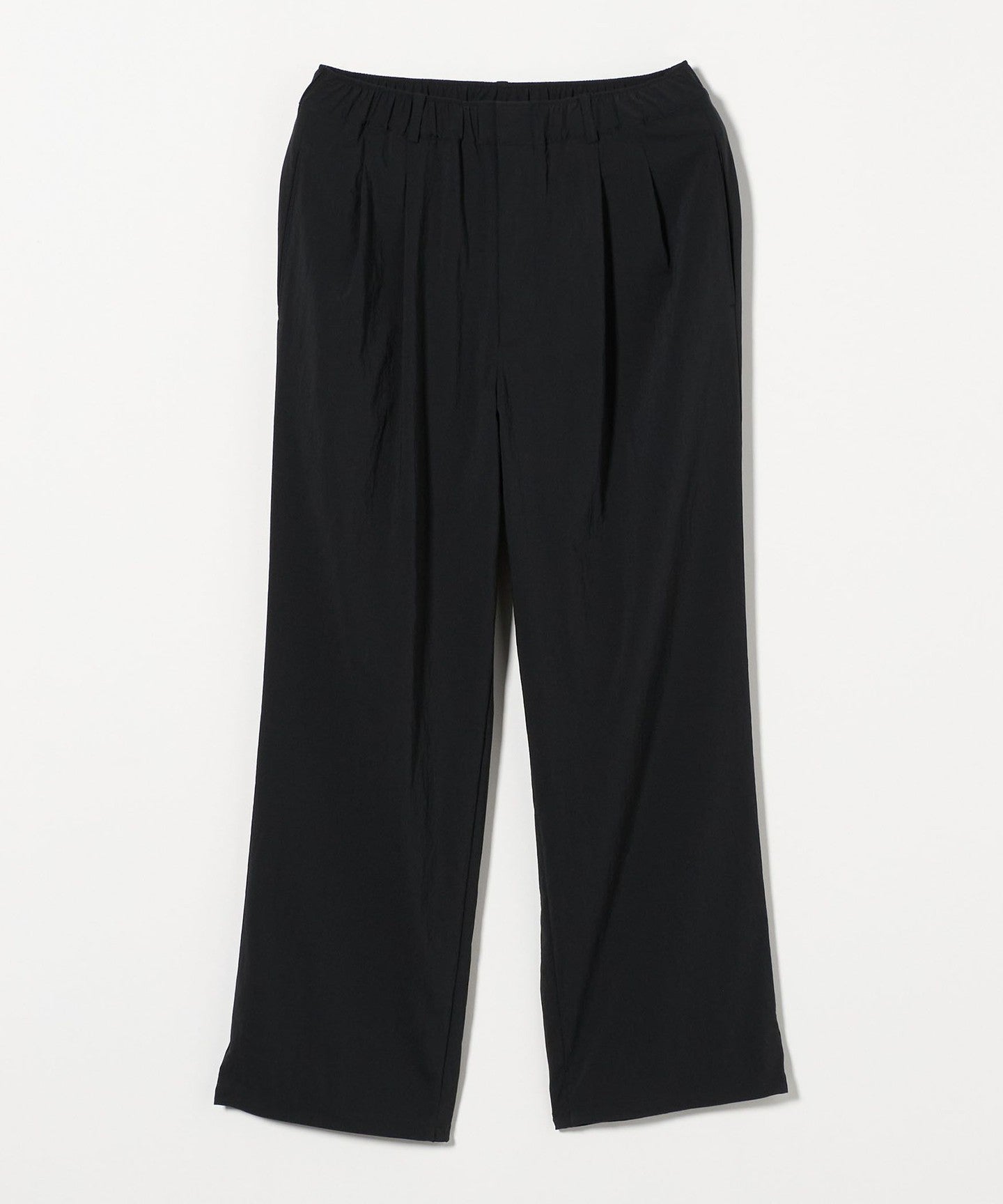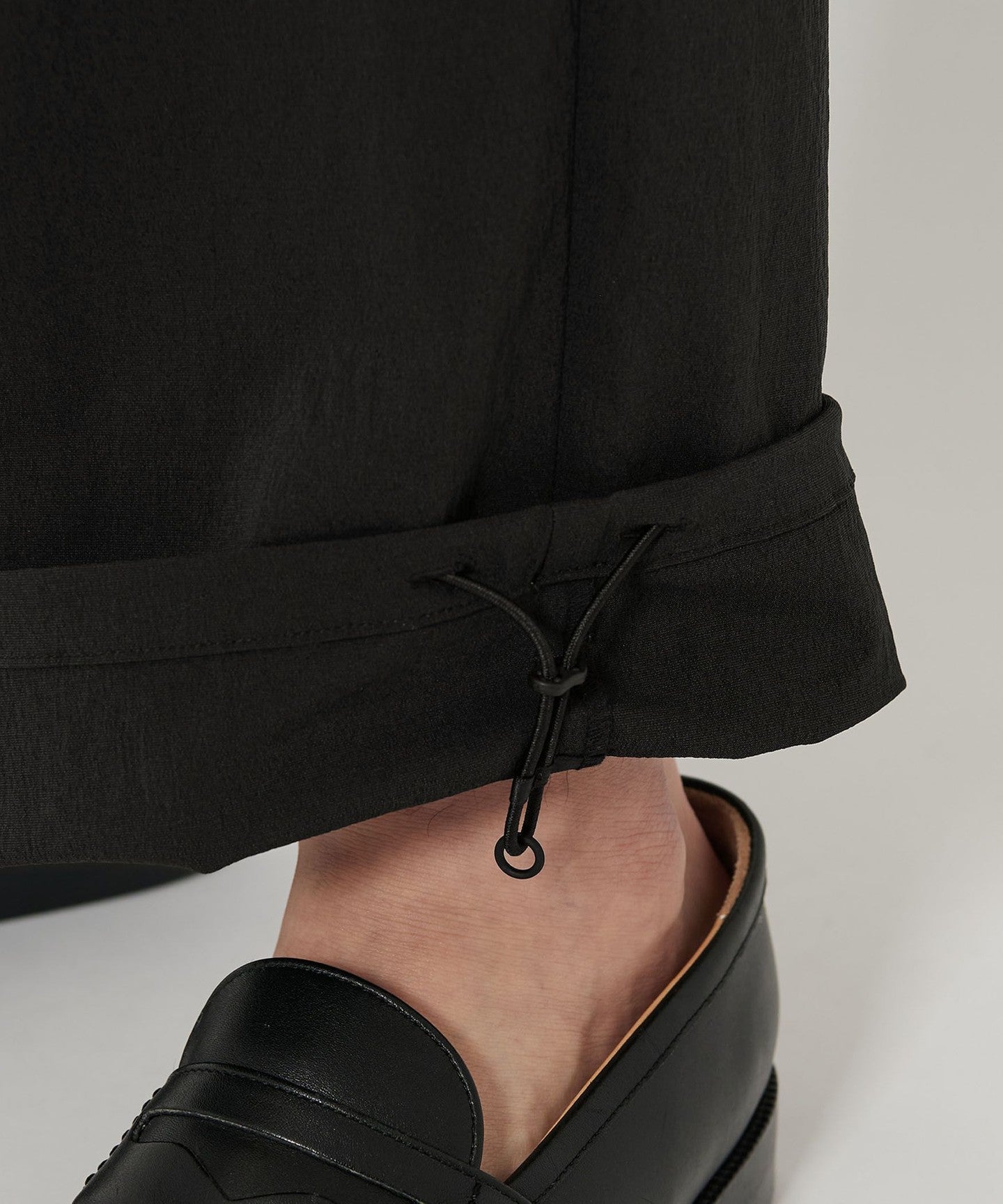 The waist area is made fluffy with two tucks, and there is almost no tapering from the knee to the hem, so it fits nicely without clinging to the leg lines too much.
