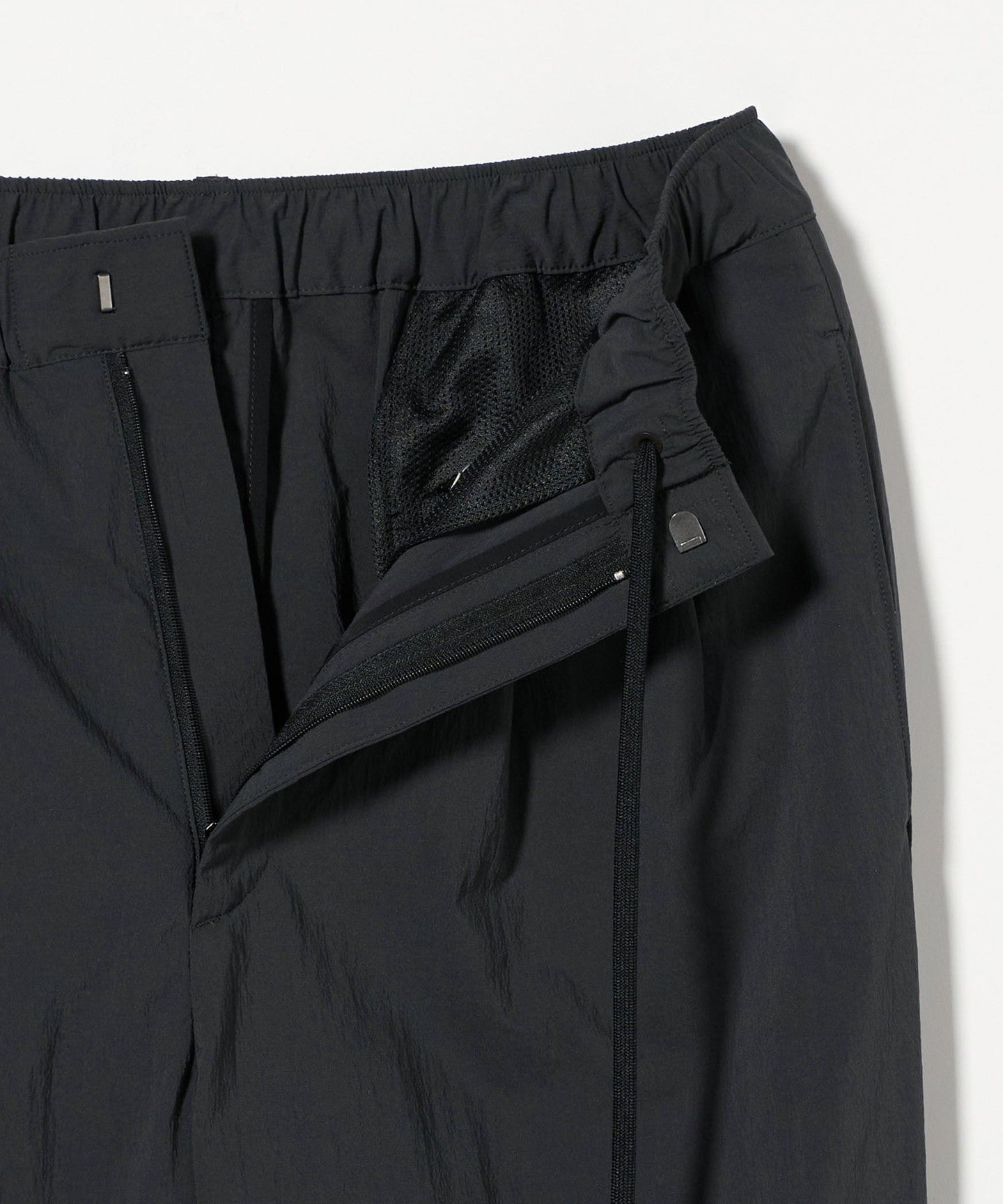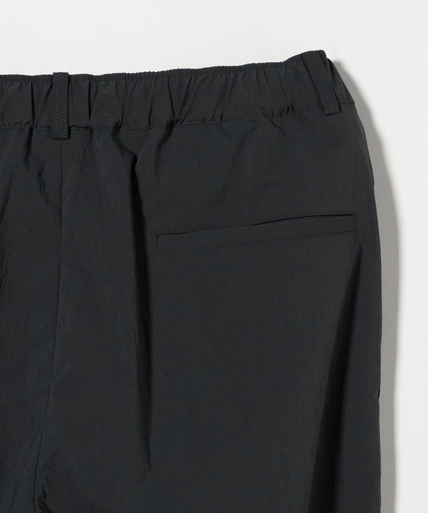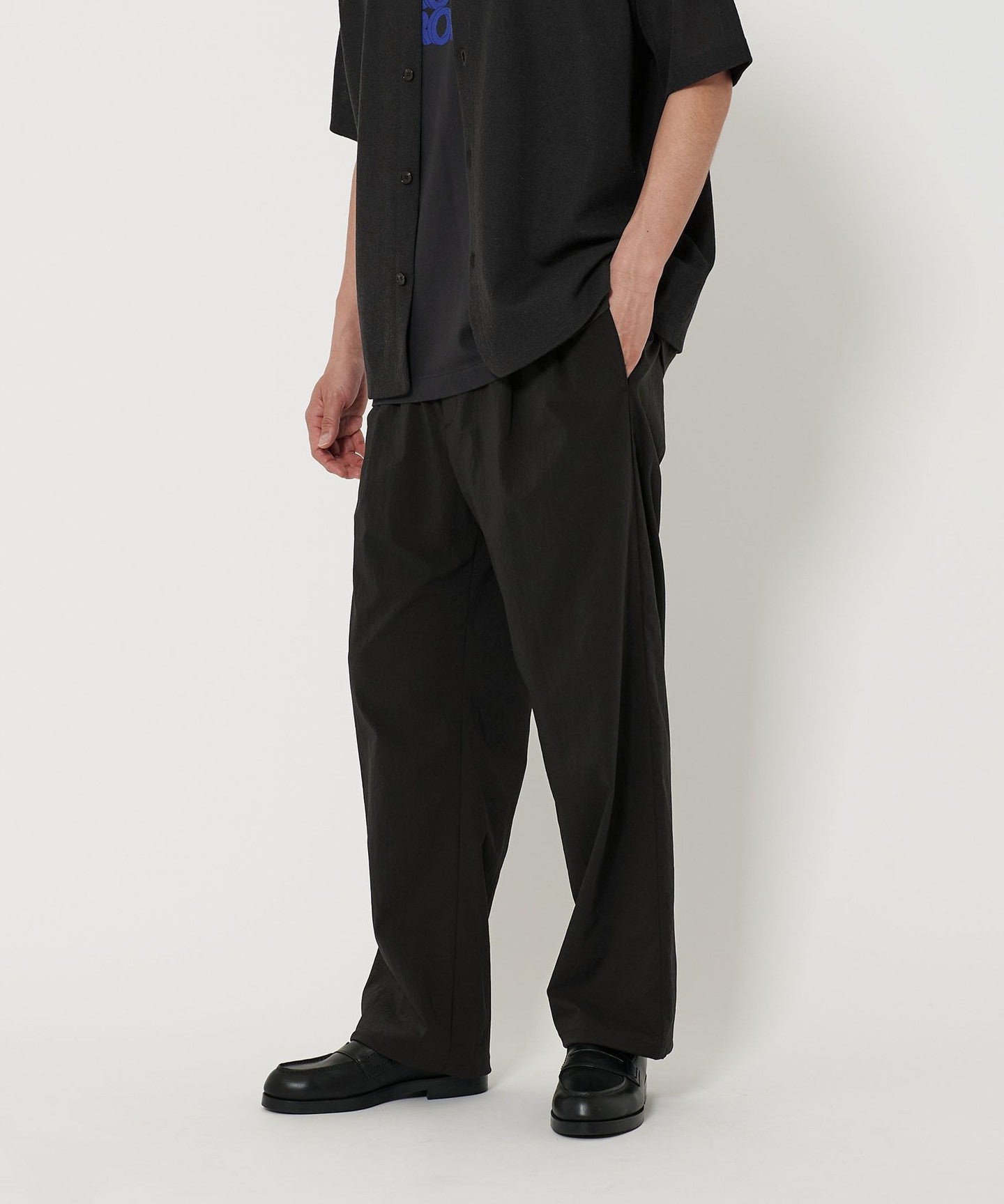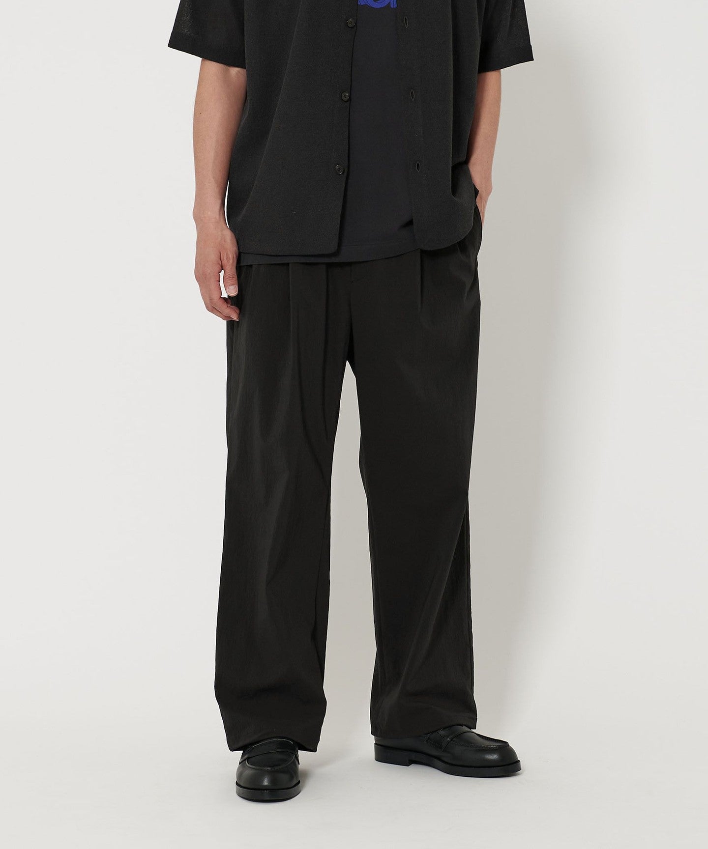 The waist area is made fluffy with two tucks, and there is almost no tapering from the knee to the hem, so it fits nicely without clinging to the leg lines too much.
