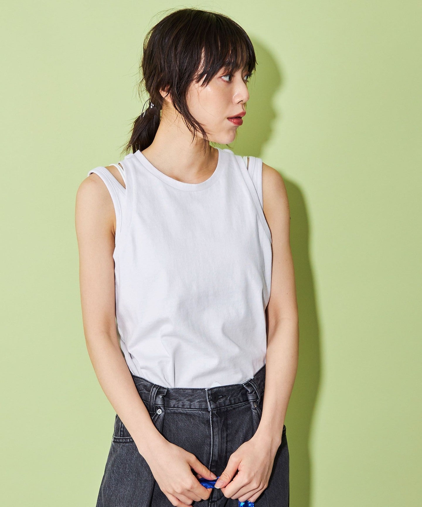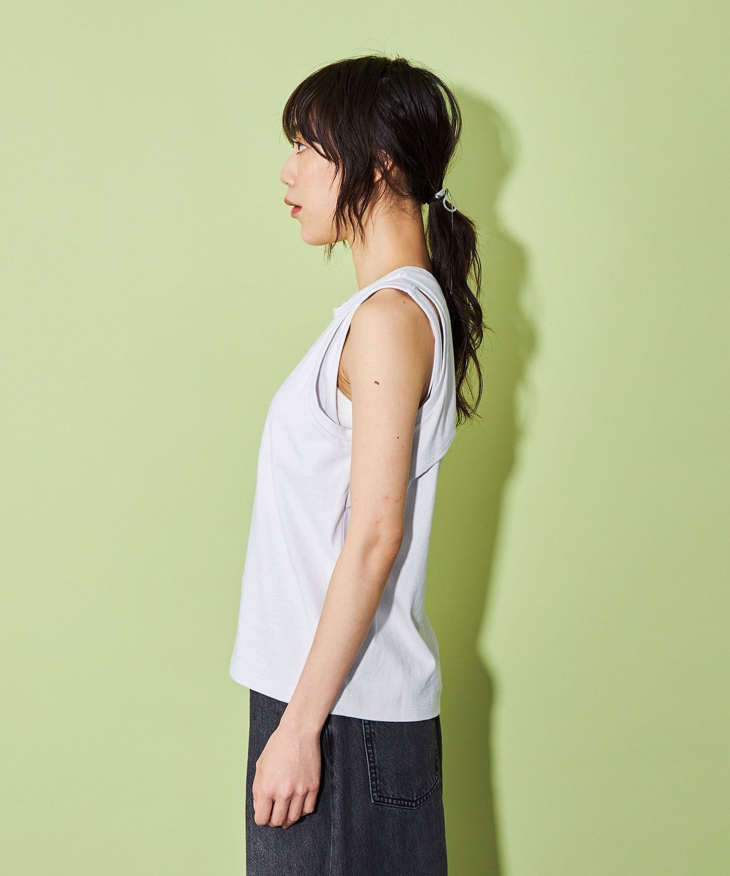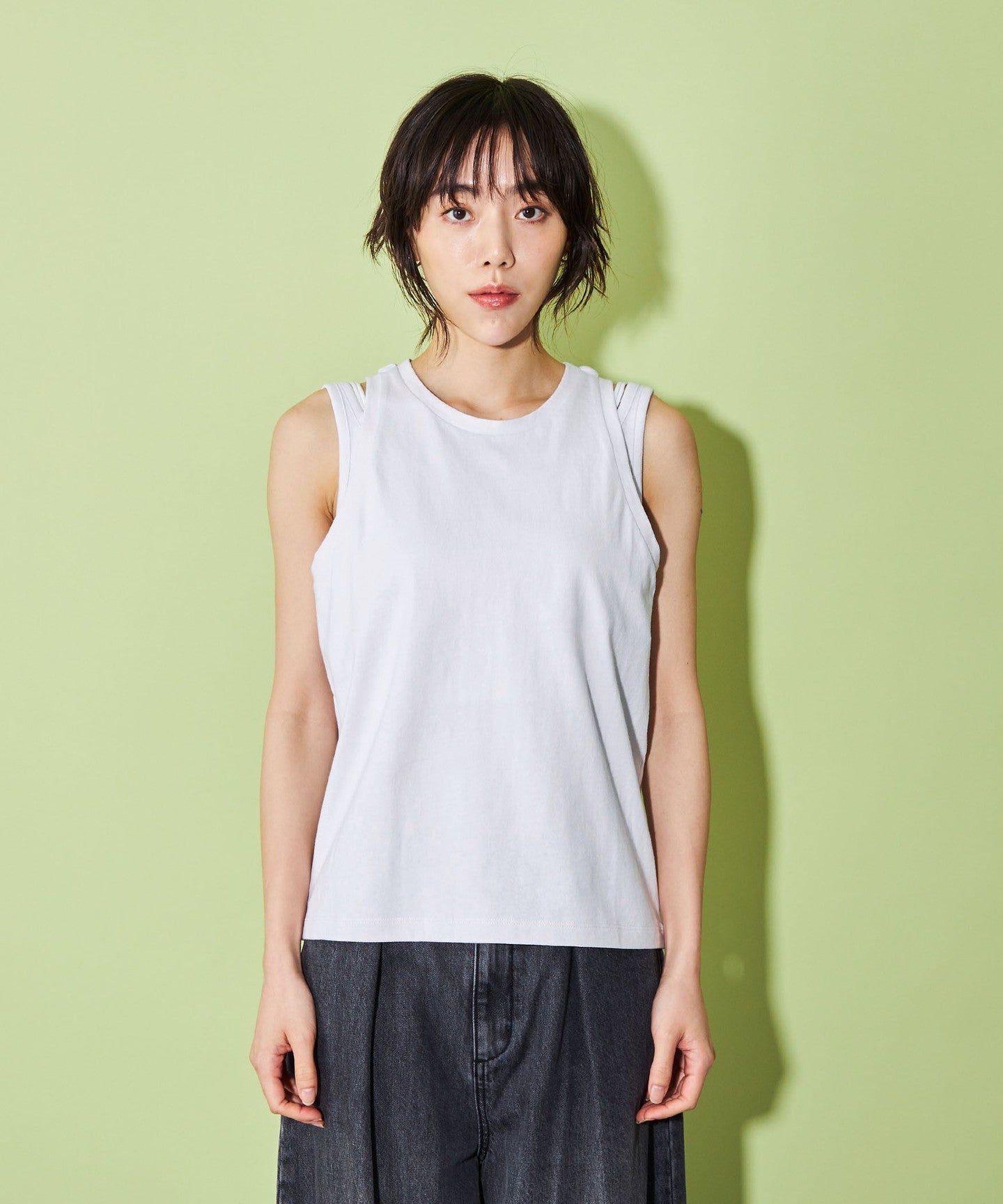 A layered design tank top that's popular this season.