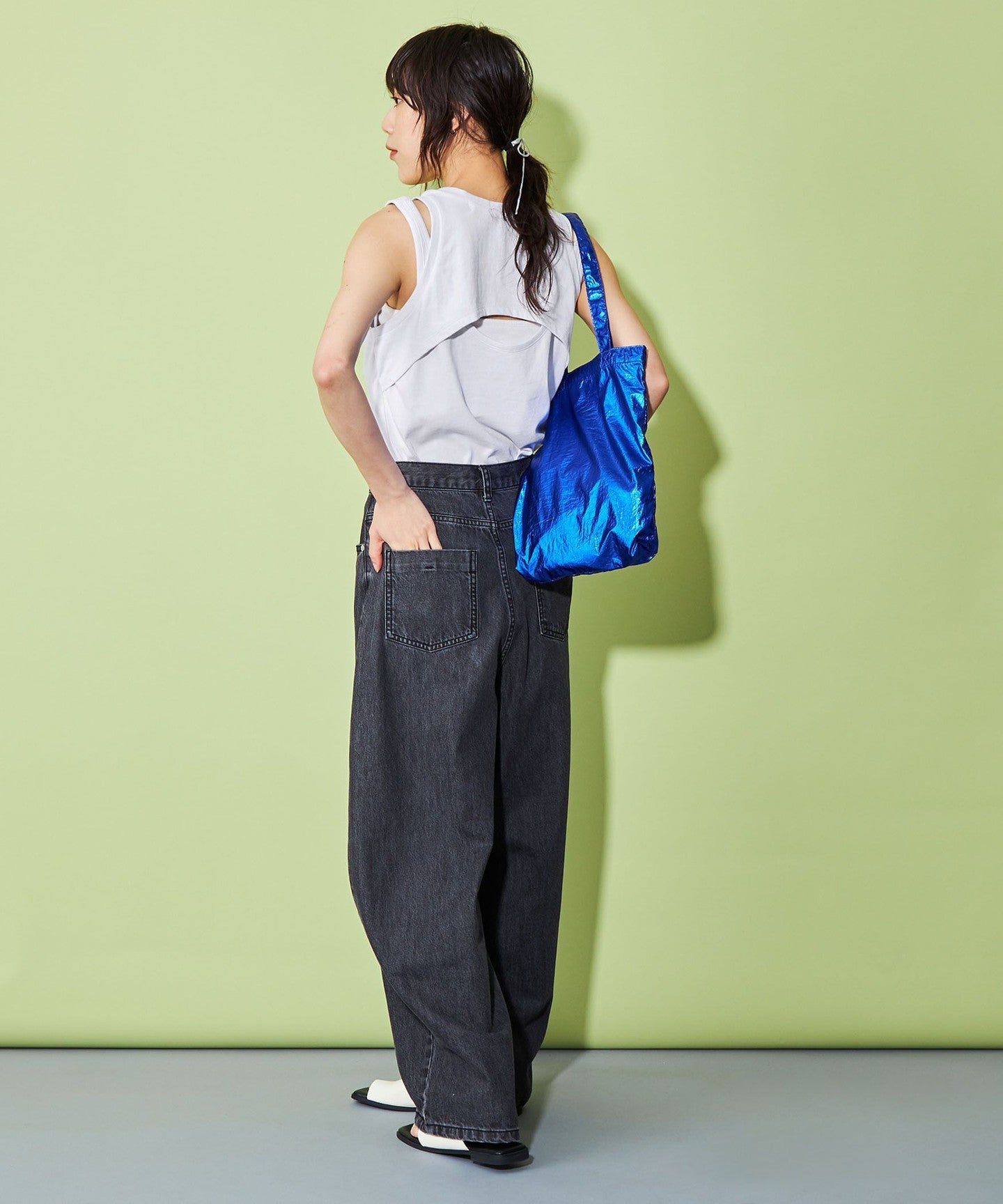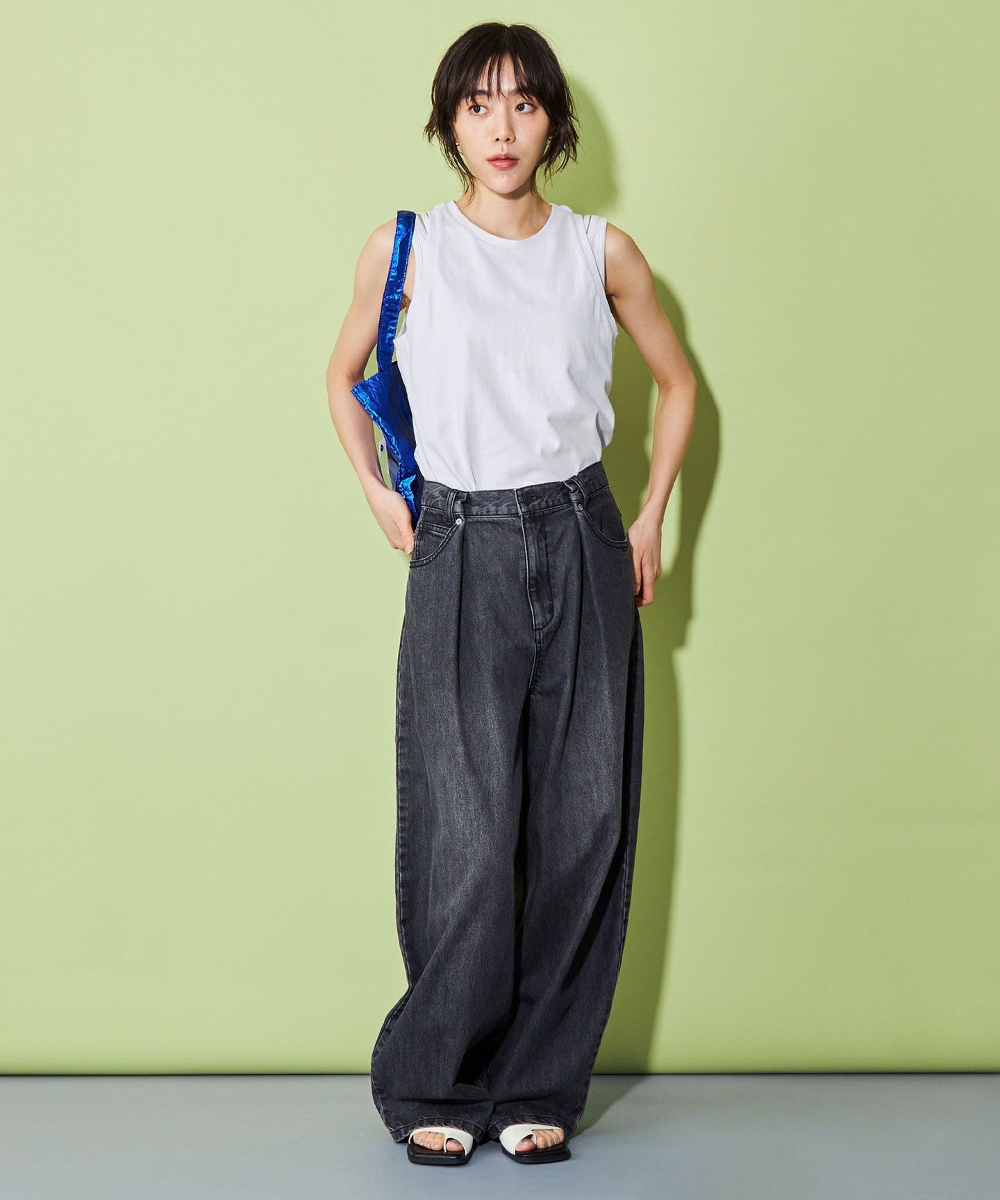 The size is not too tight and has just the right amount of looseness, so it looks great on its own, and we recommend pairing it with wide pants or denim for a casual look.