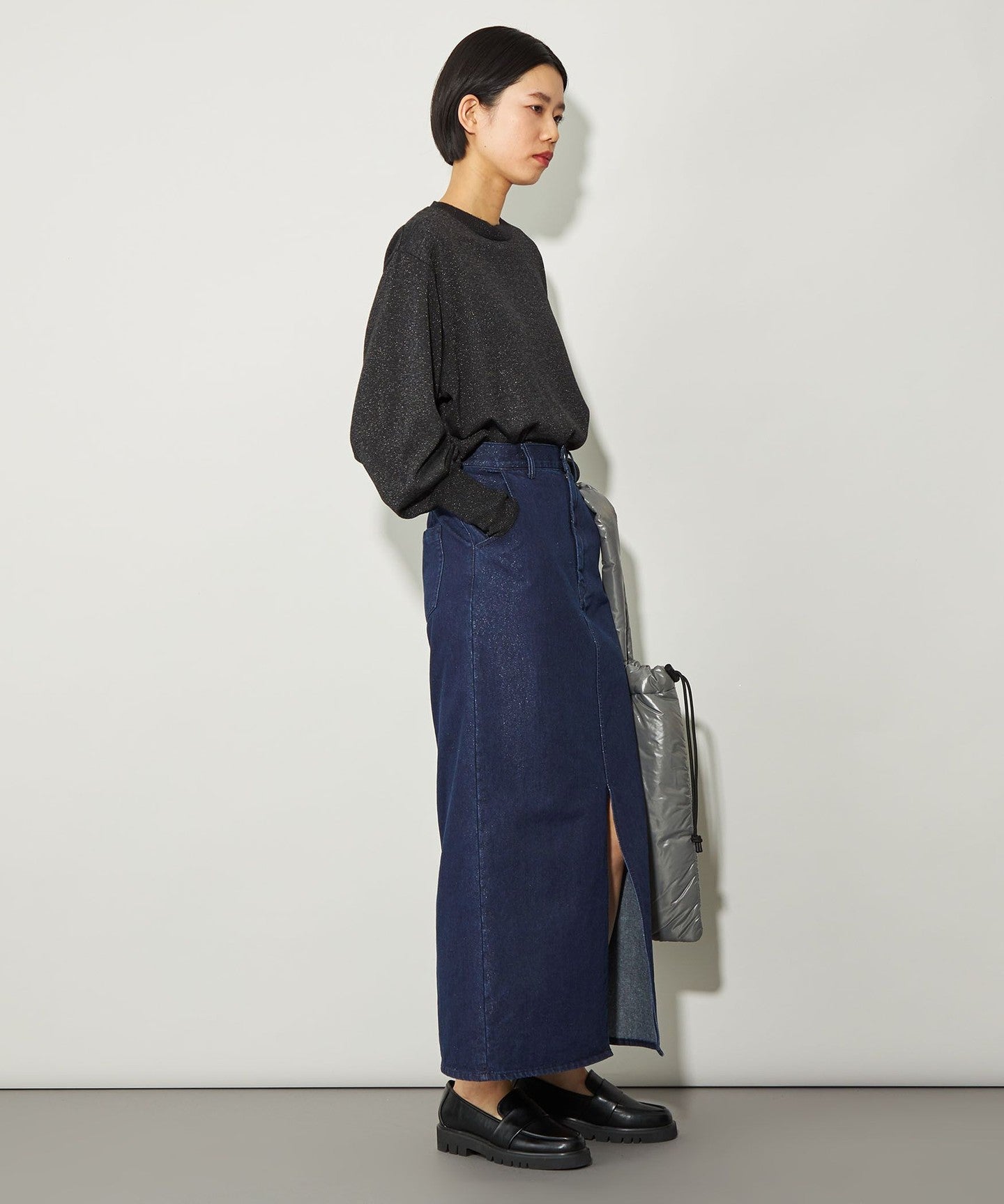 The glitter material gives it a slightly elegant look, so it goes well with casual items like sweatshirts.