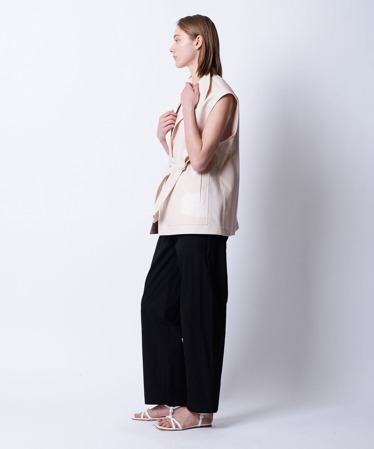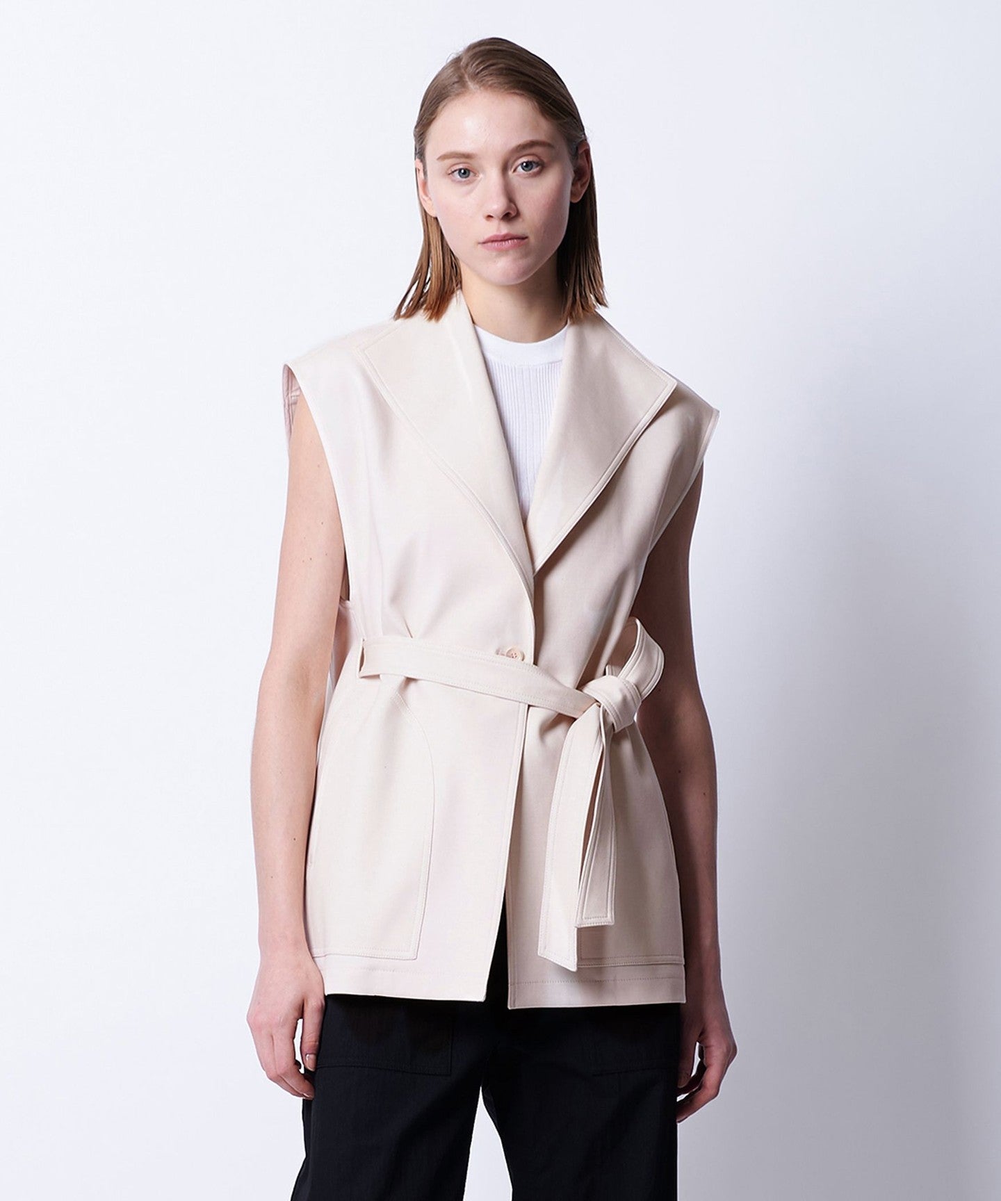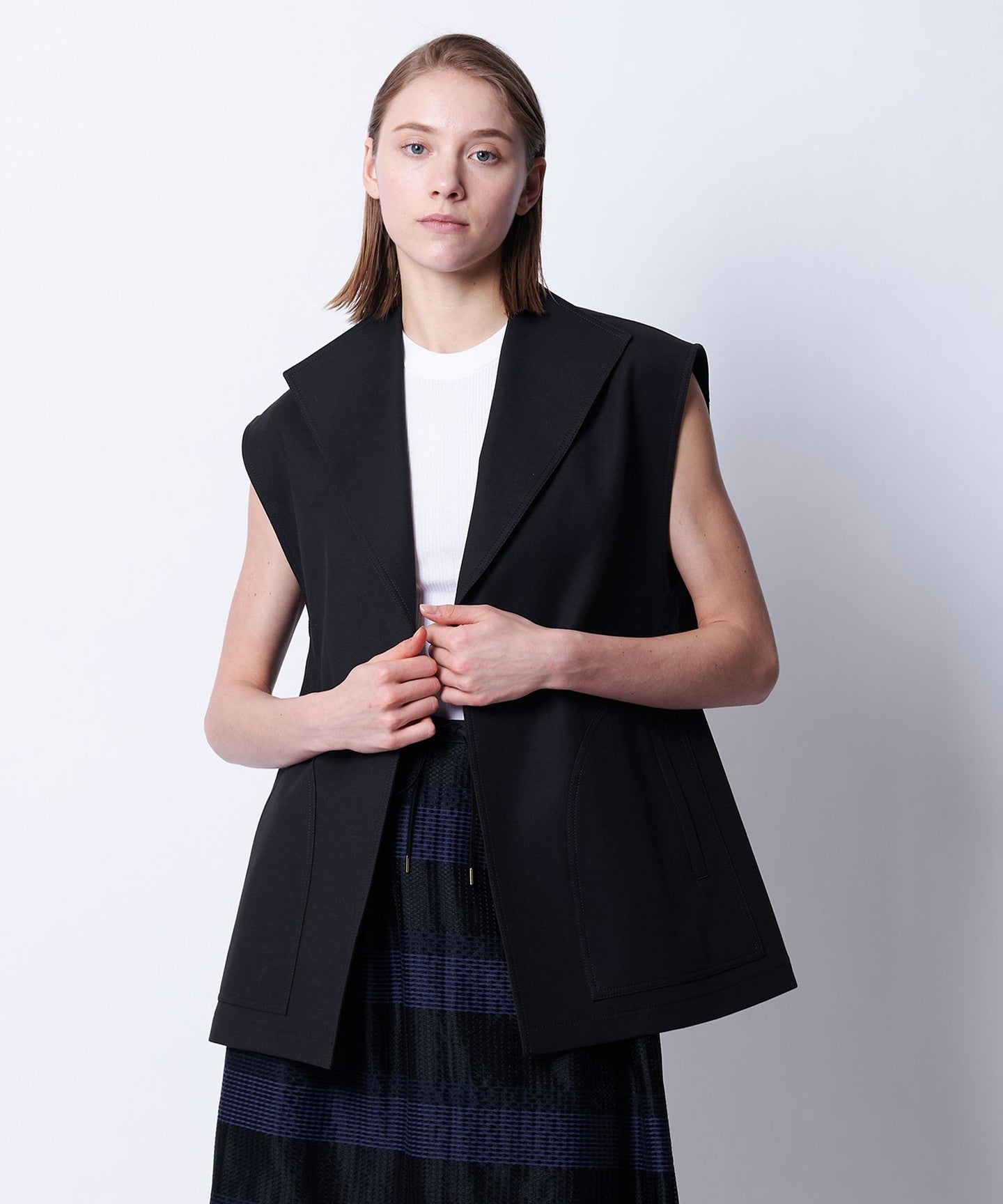 Standing in a rowCOLLAR A lightweight cotton-based gilet with a sharp design.
