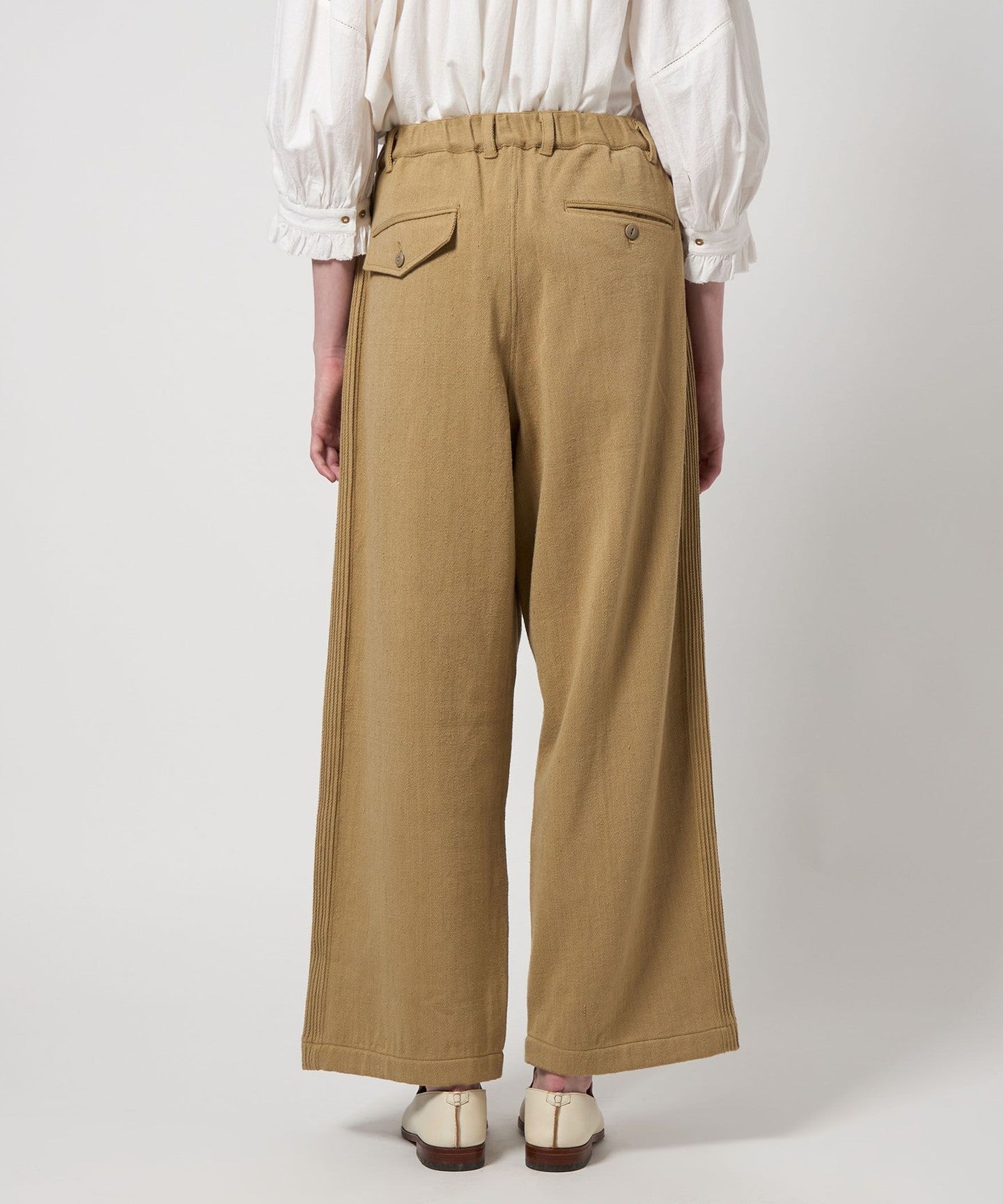 Taking advantage of the softness and pleasant feel that only handwoven denim can offer, this piece has a voluminous, relaxed silhouette.