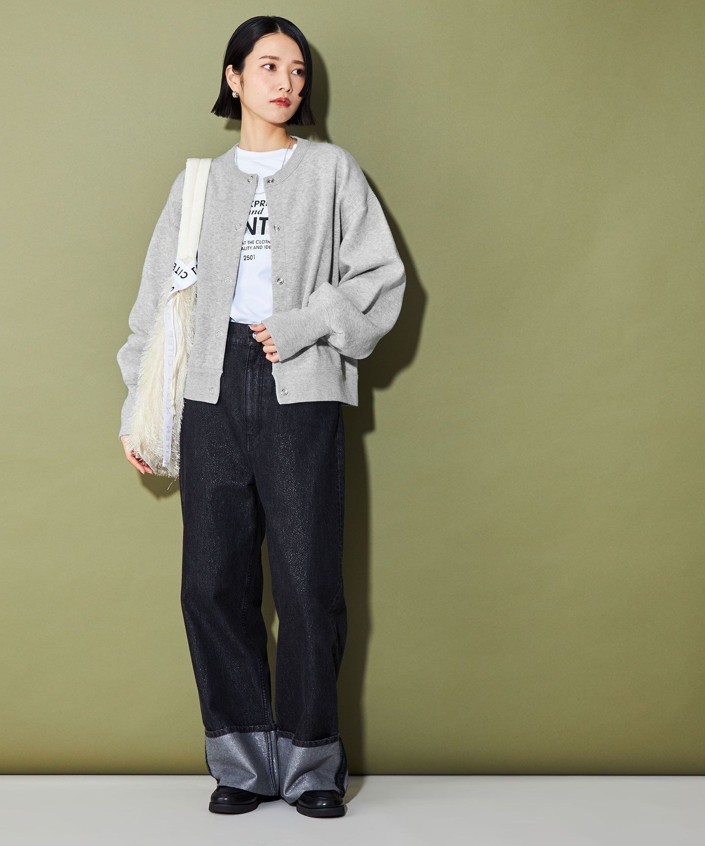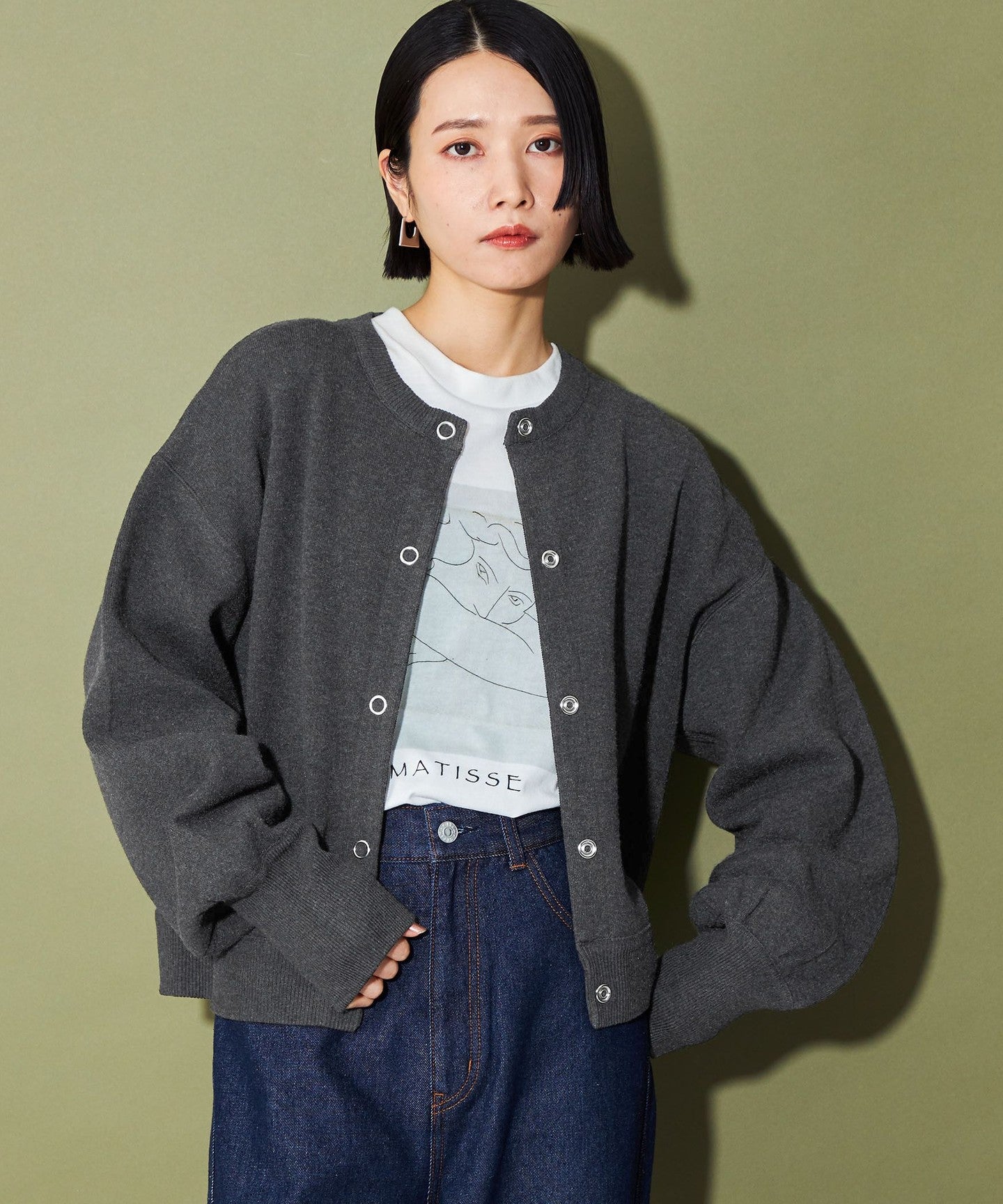 Like a sweatshirt, it can be easily matched with anything, such as pants, skirts, and dresses, and the knit fabric gives it an elegant look without being too casual.