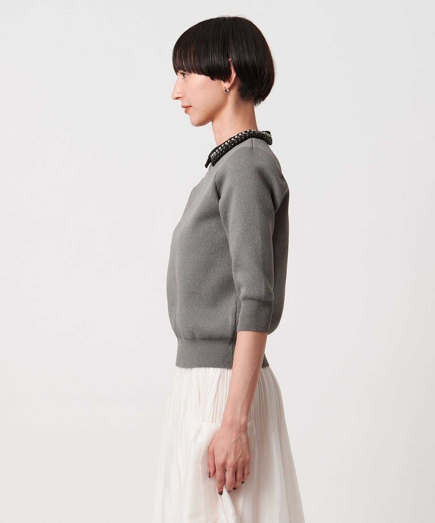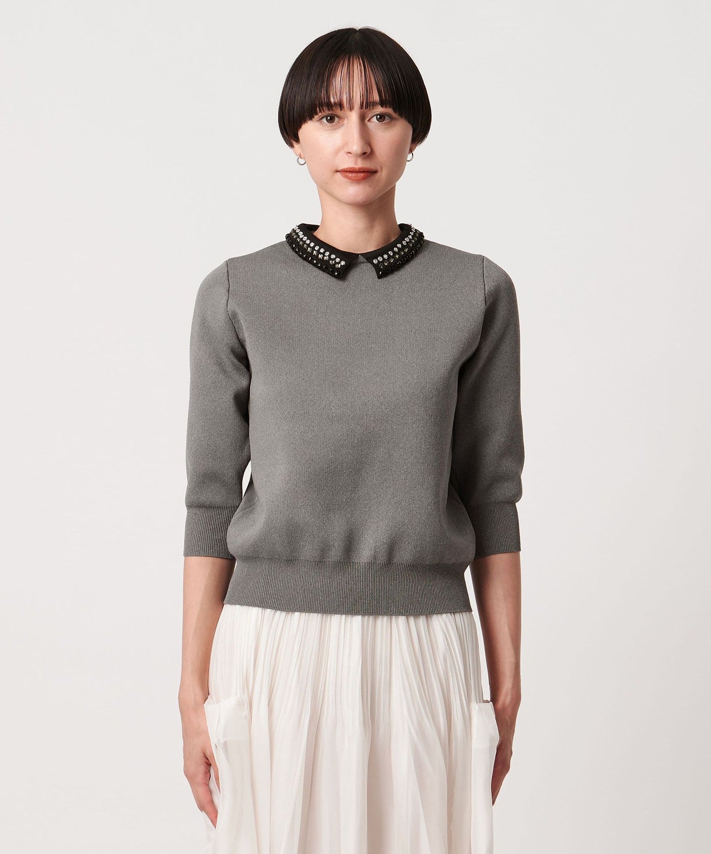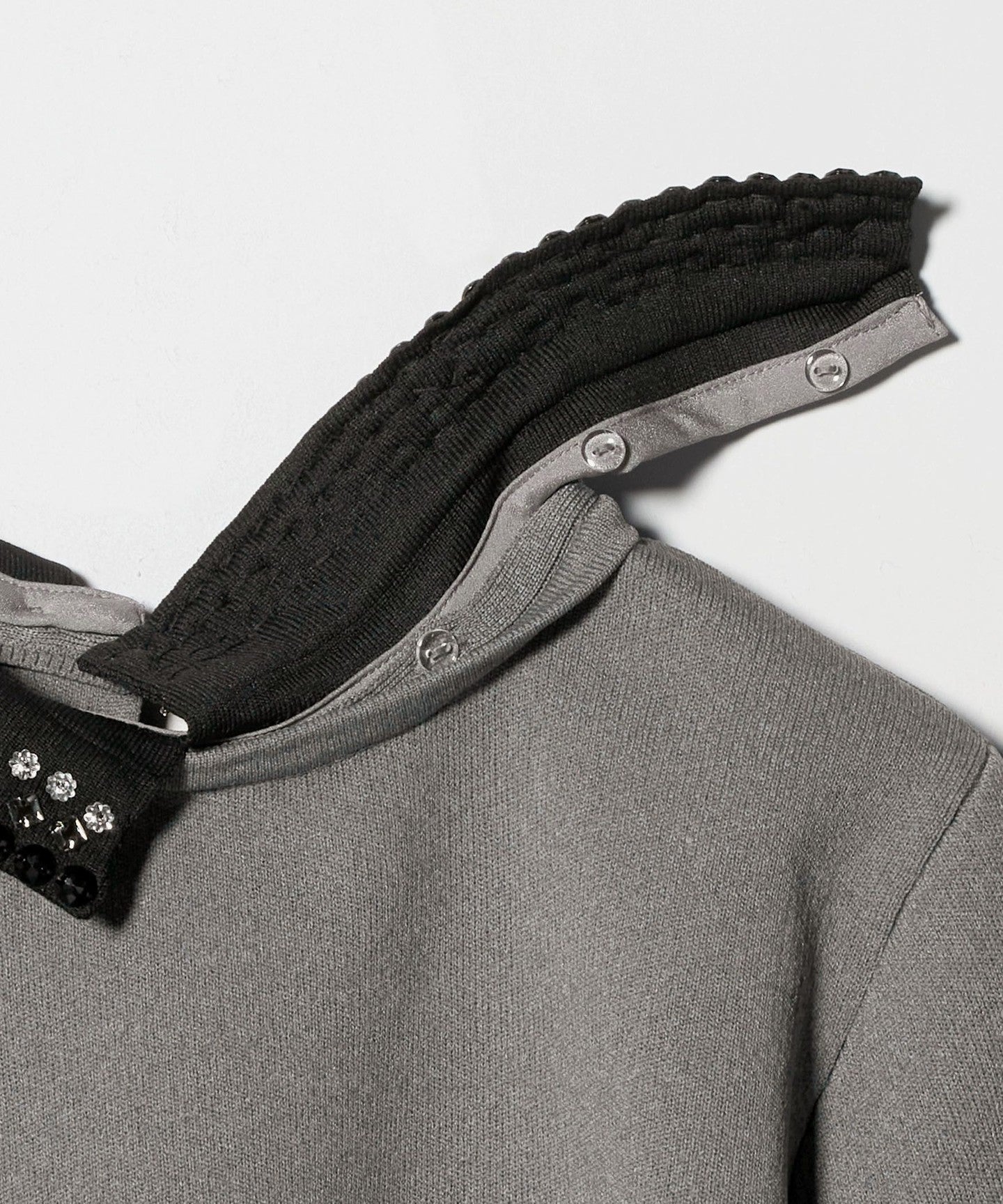When the collar is attached, it gives a stylish and glamorous look, and when removed it can be worn as a basic sweatshirt-like knit.