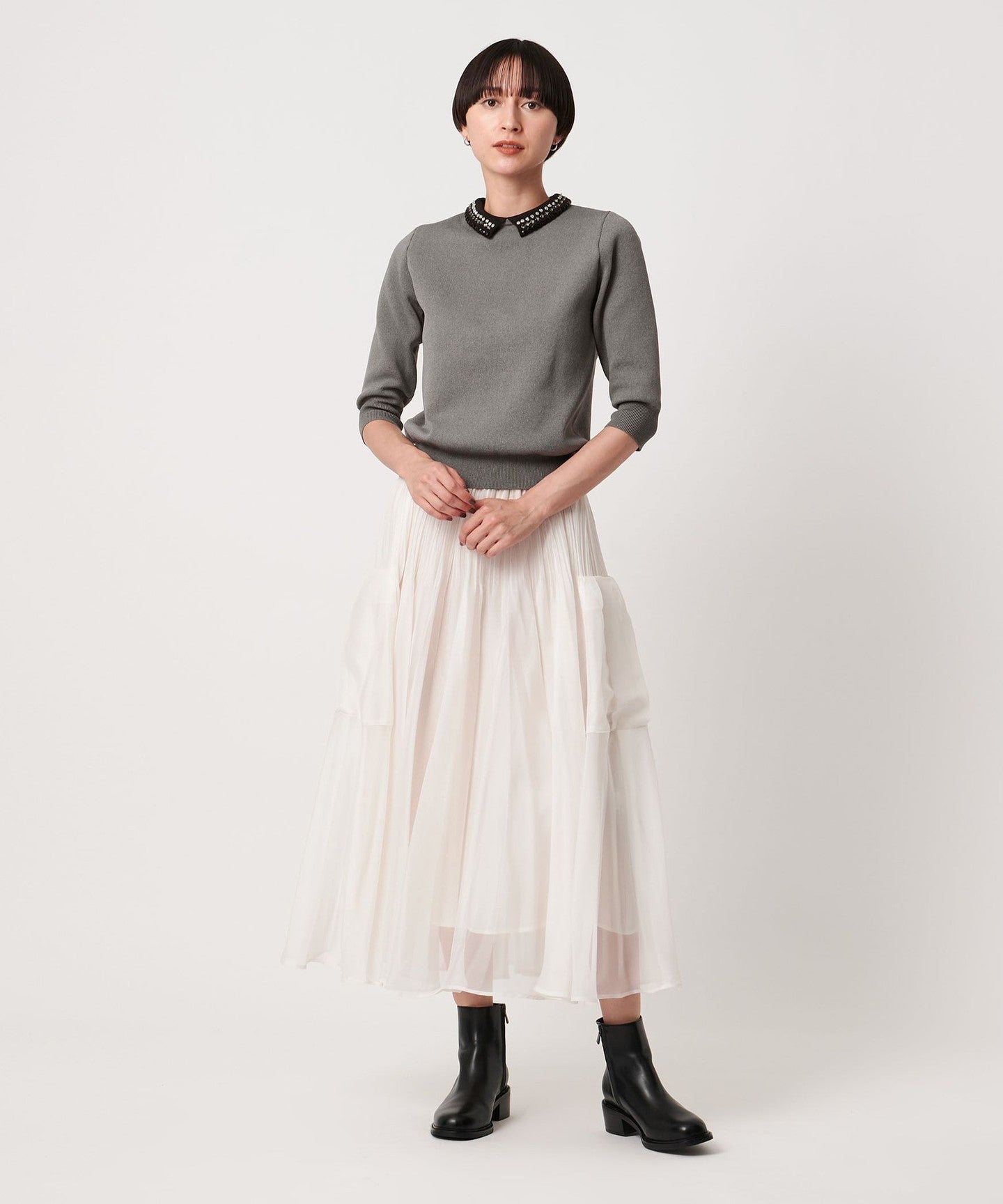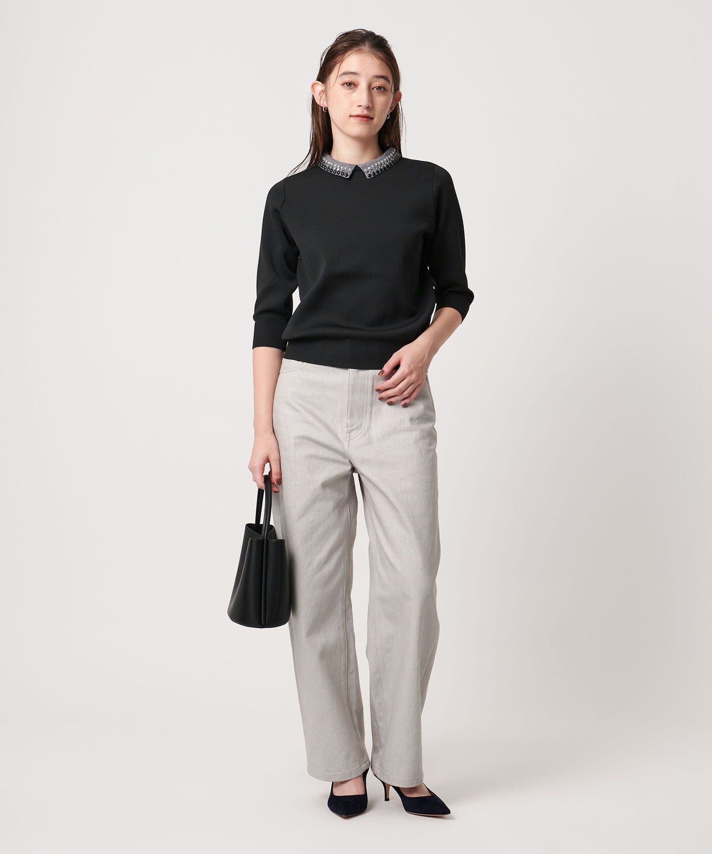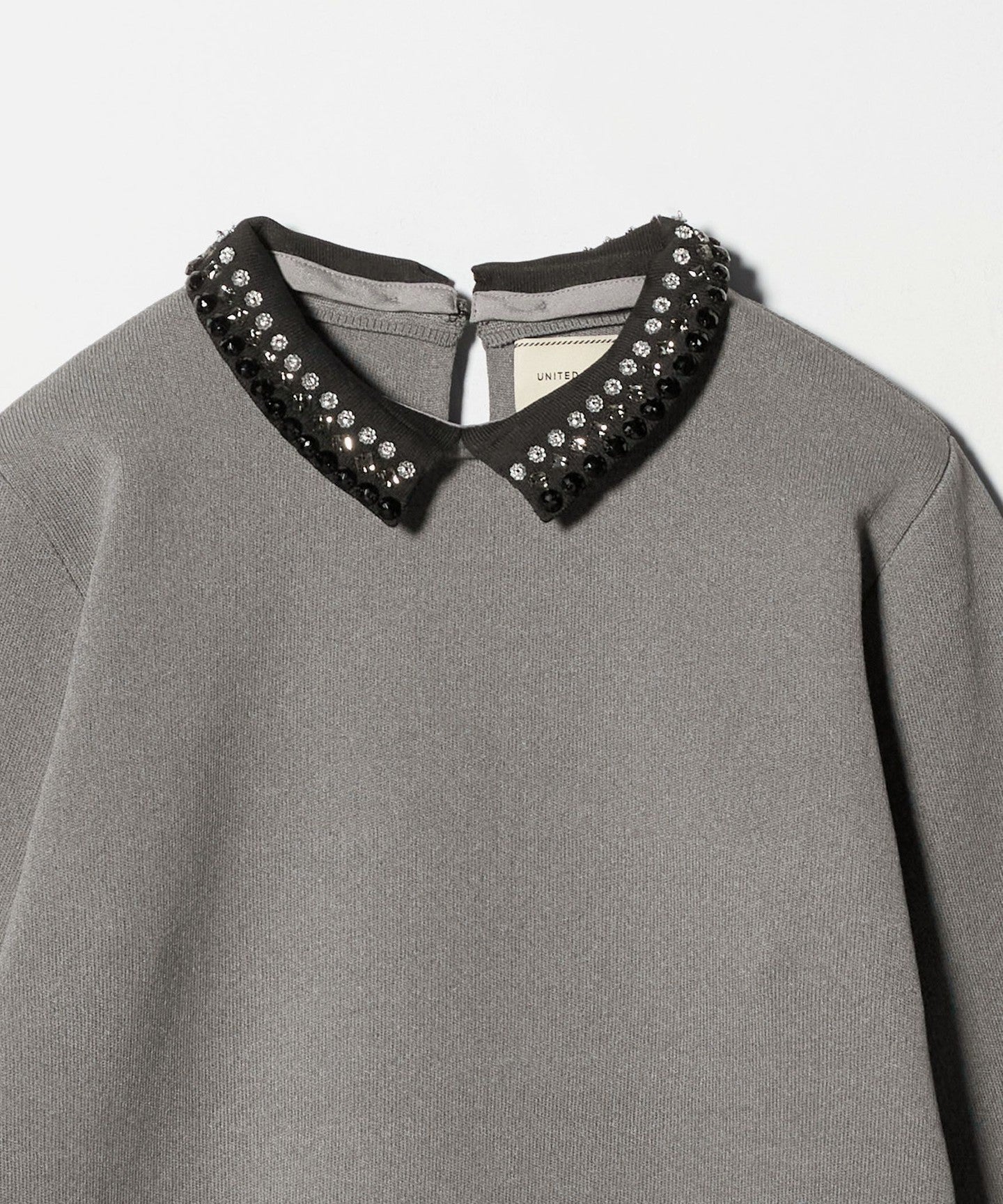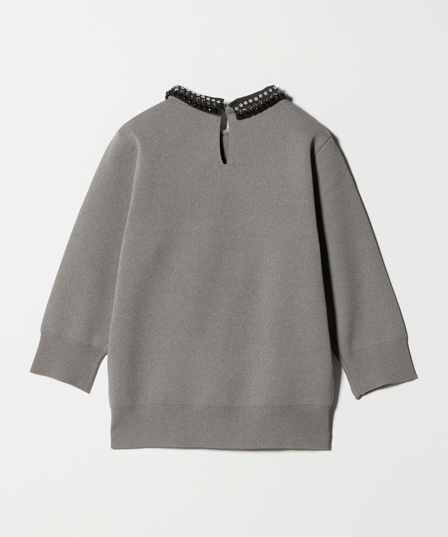 When the collar is attached, it gives a stylish and glamorous look, and when removed it can be worn as a basic sweatshirt-like knit.