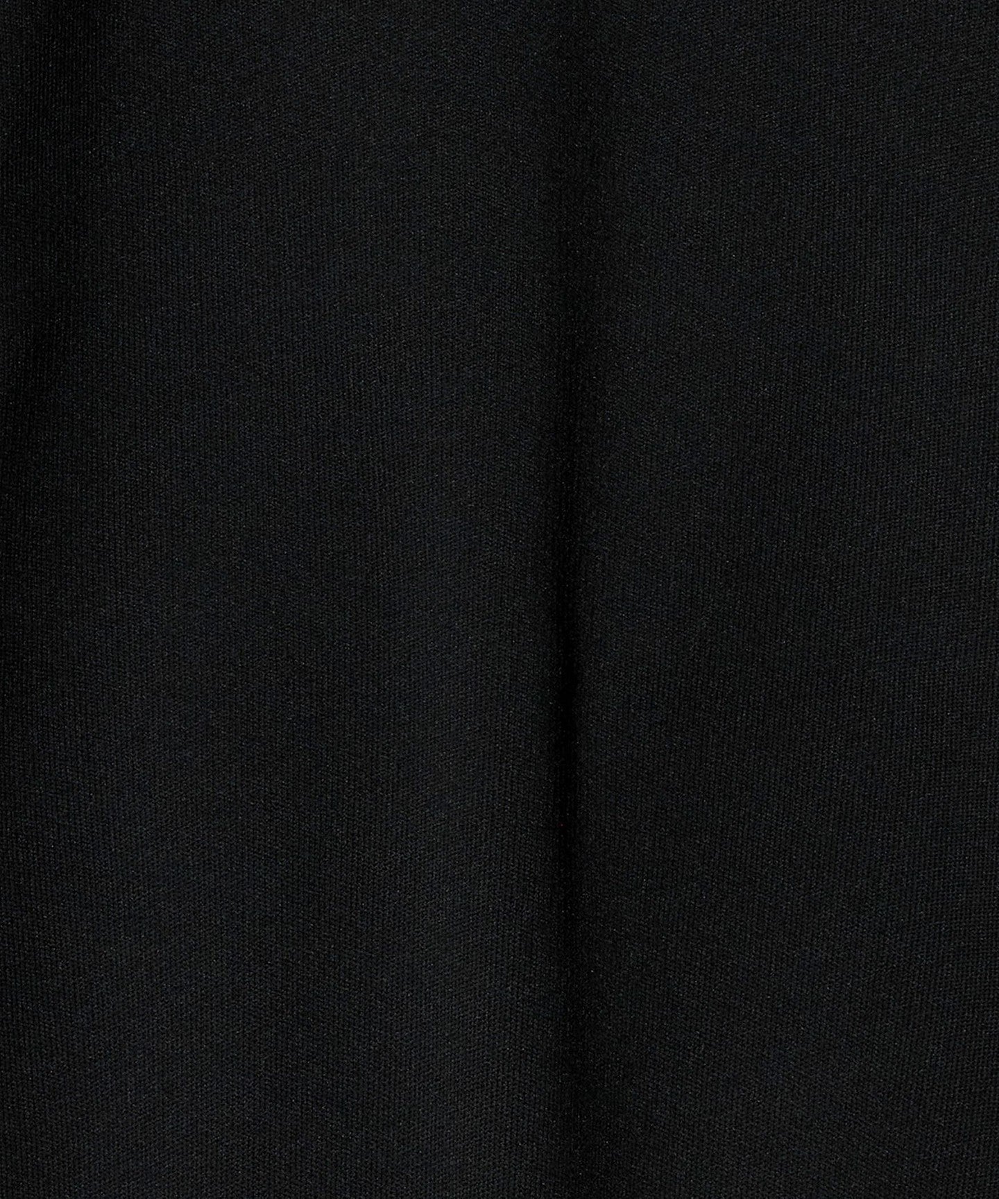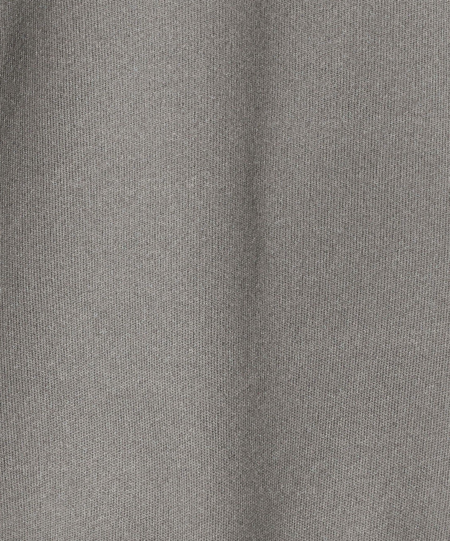 A polyester material with a smooth knit, moderate thickness, and a smooth feel against the skin.