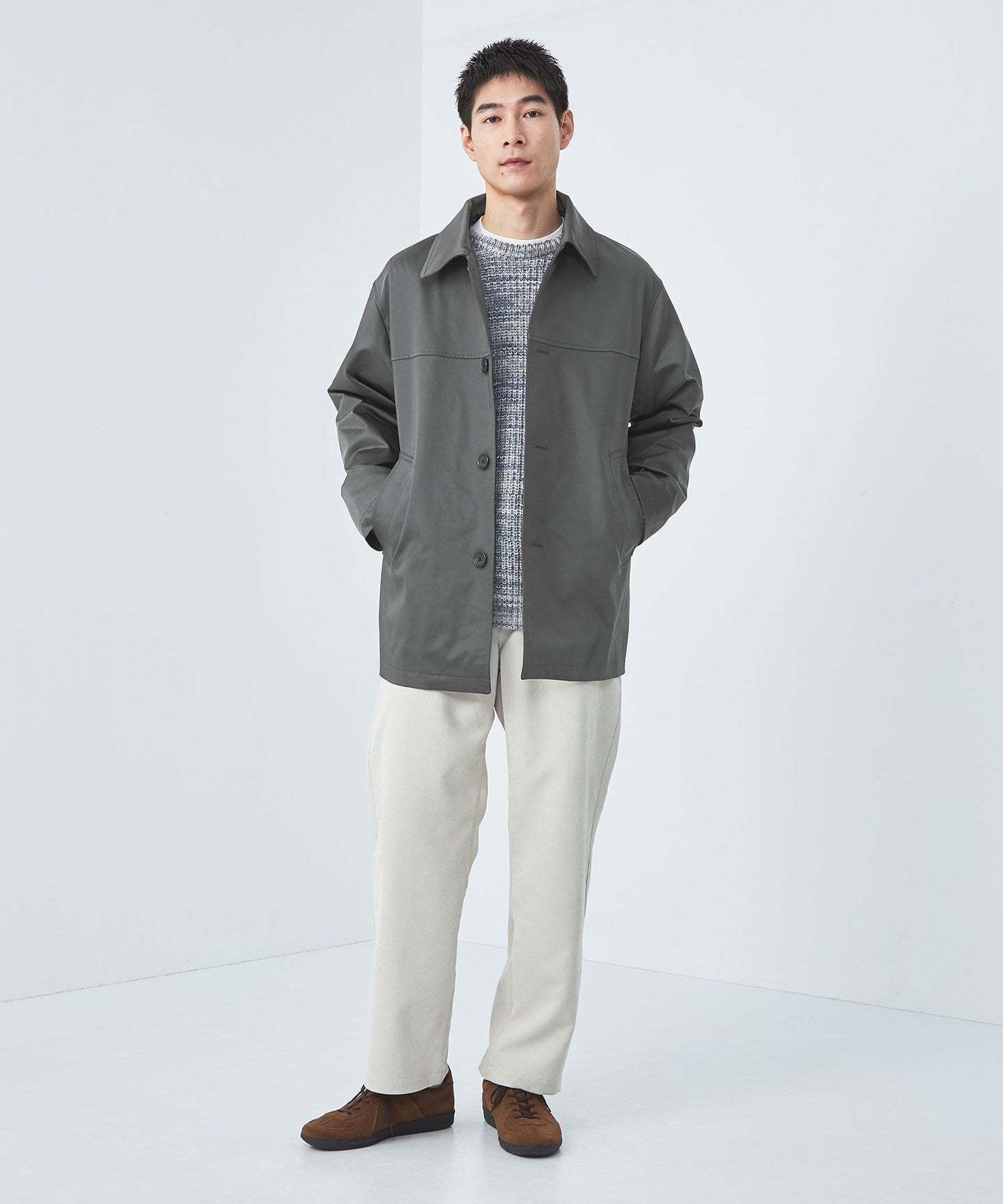 Pair it with leather sneakers, moccasins, or deck shoes for a sophisticated casual look.