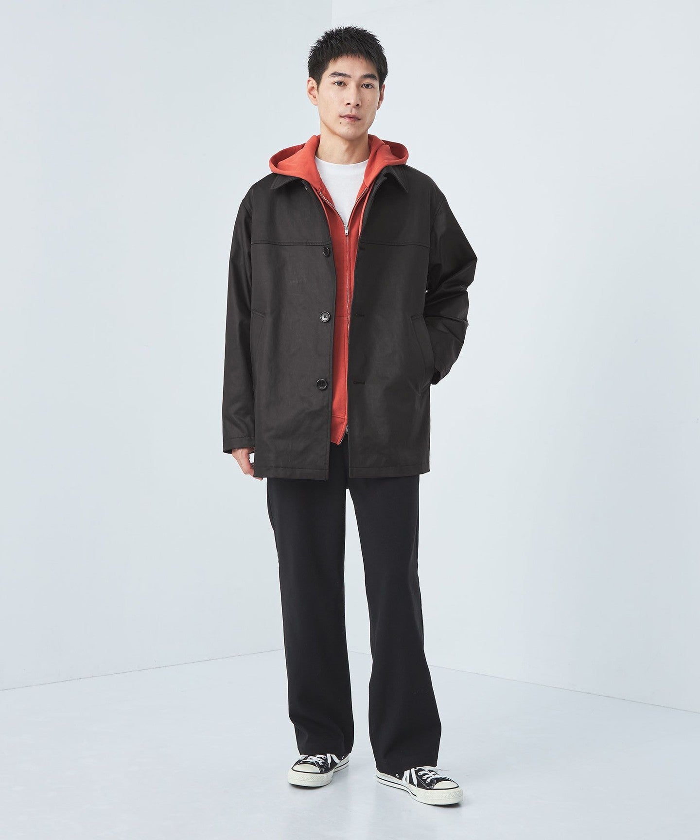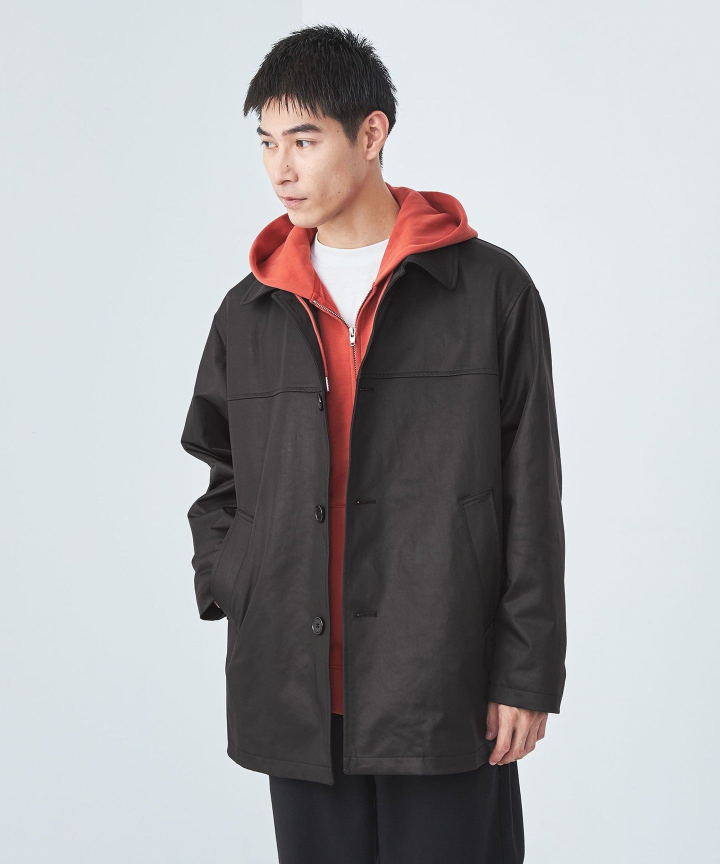 This mid-length coat is a modern take on the leather car coat from the early 90s.