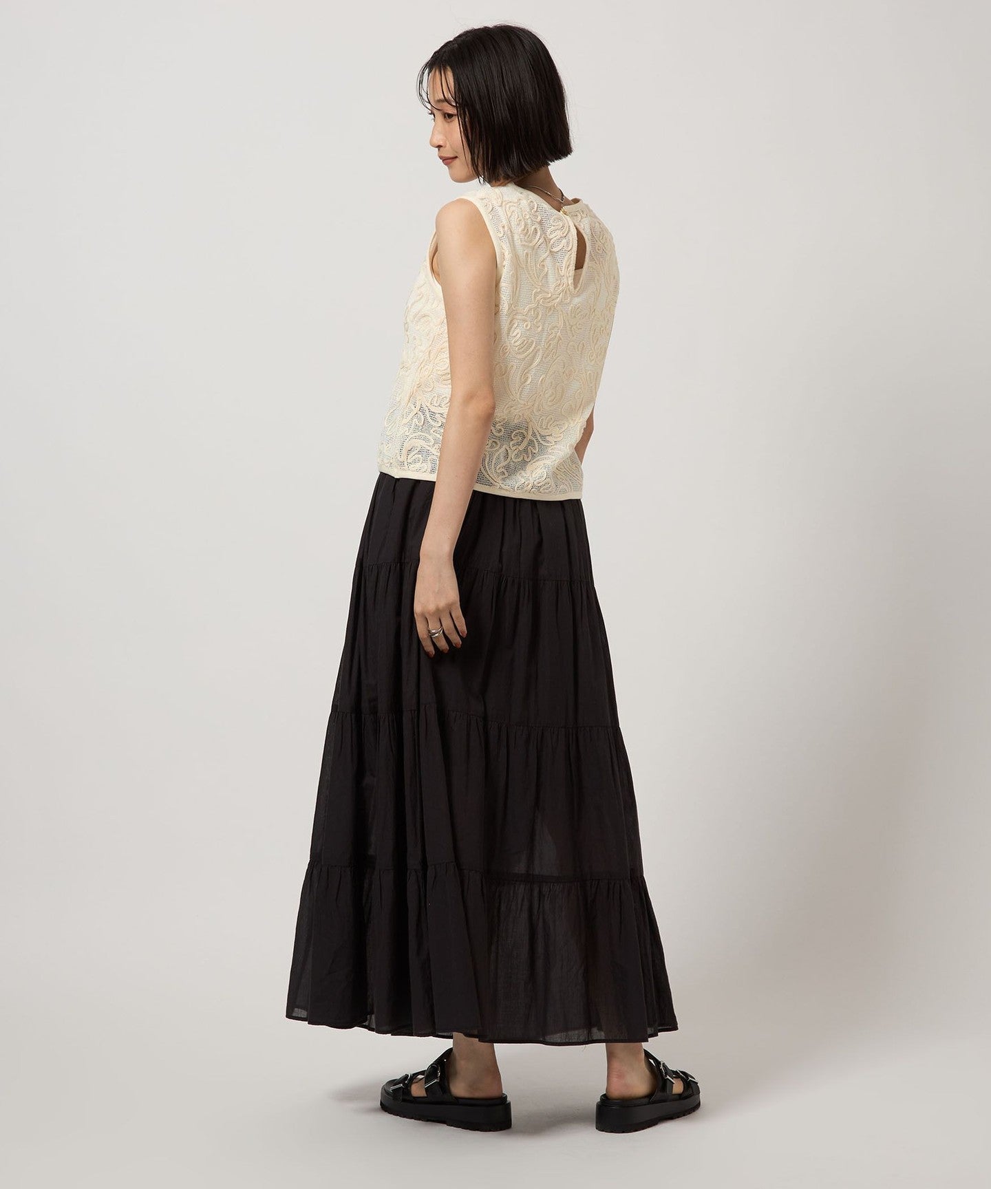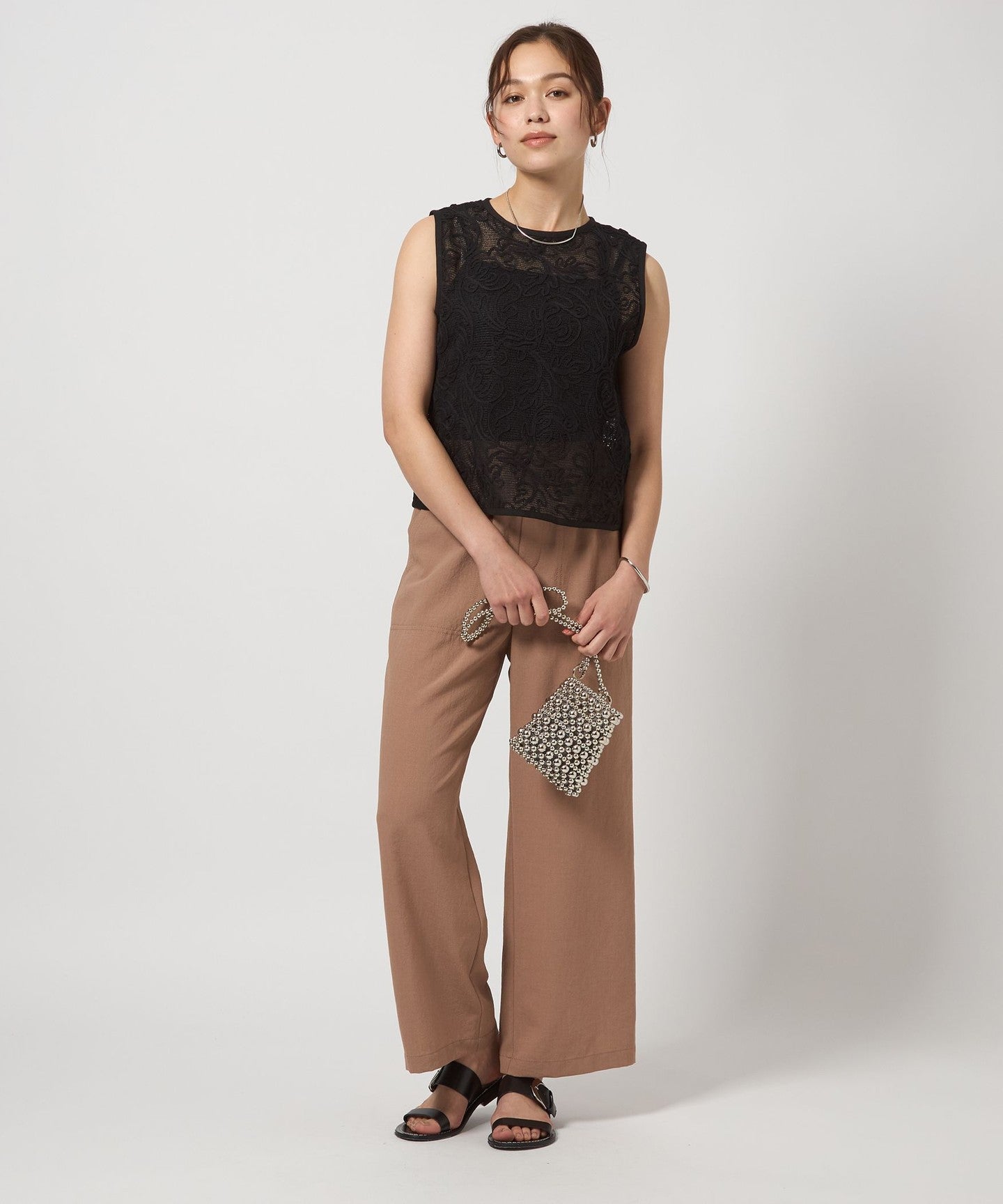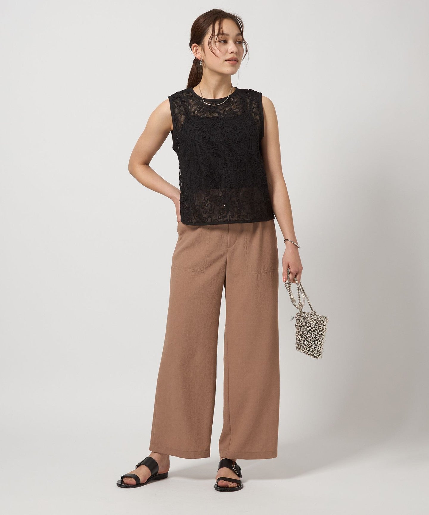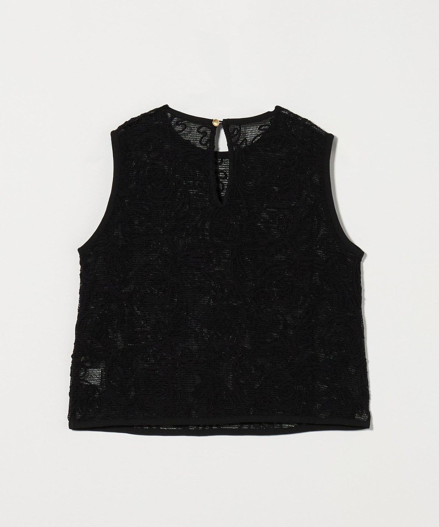 A material with a craft feel, made from mesh fabric with cord embroidery.