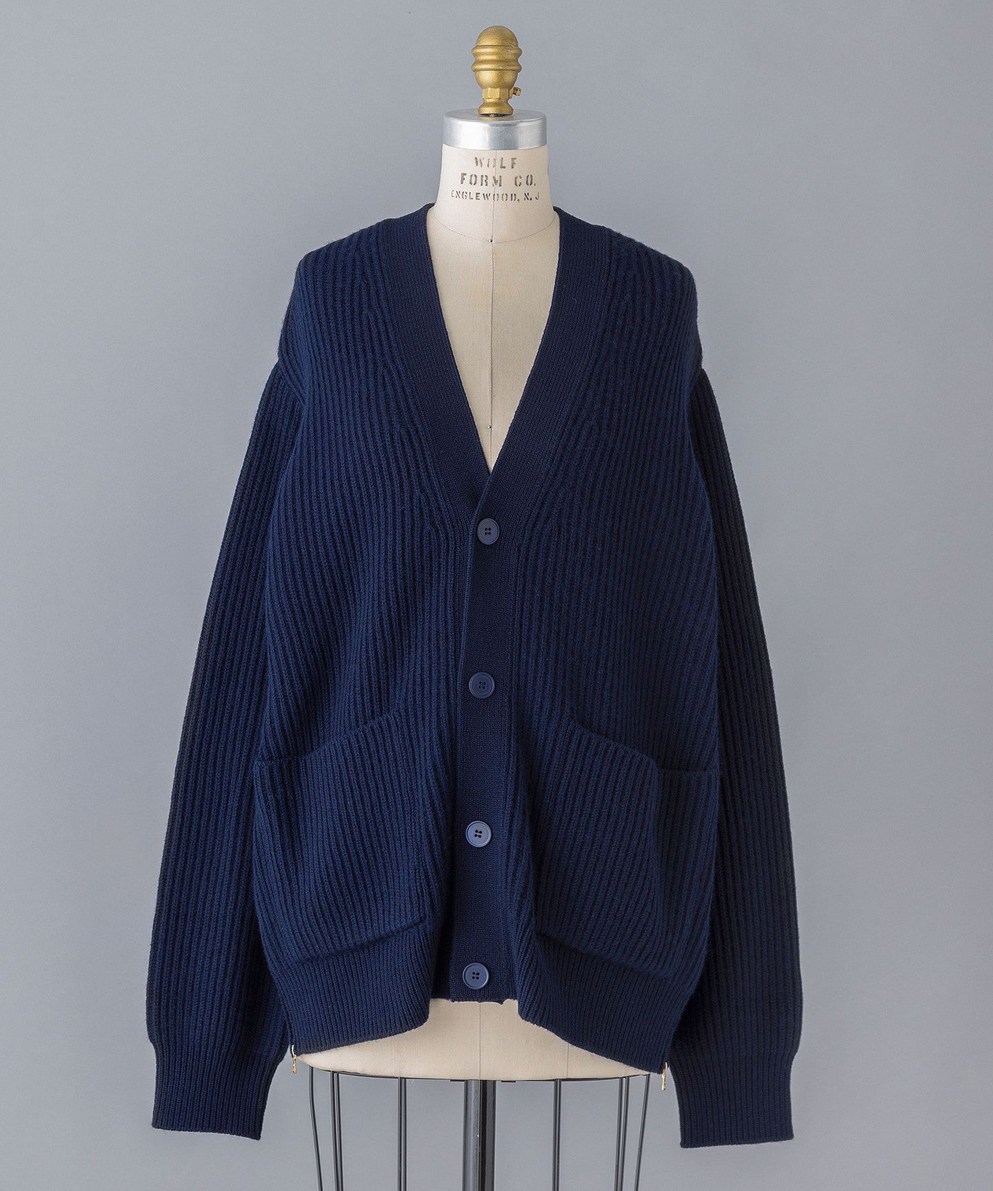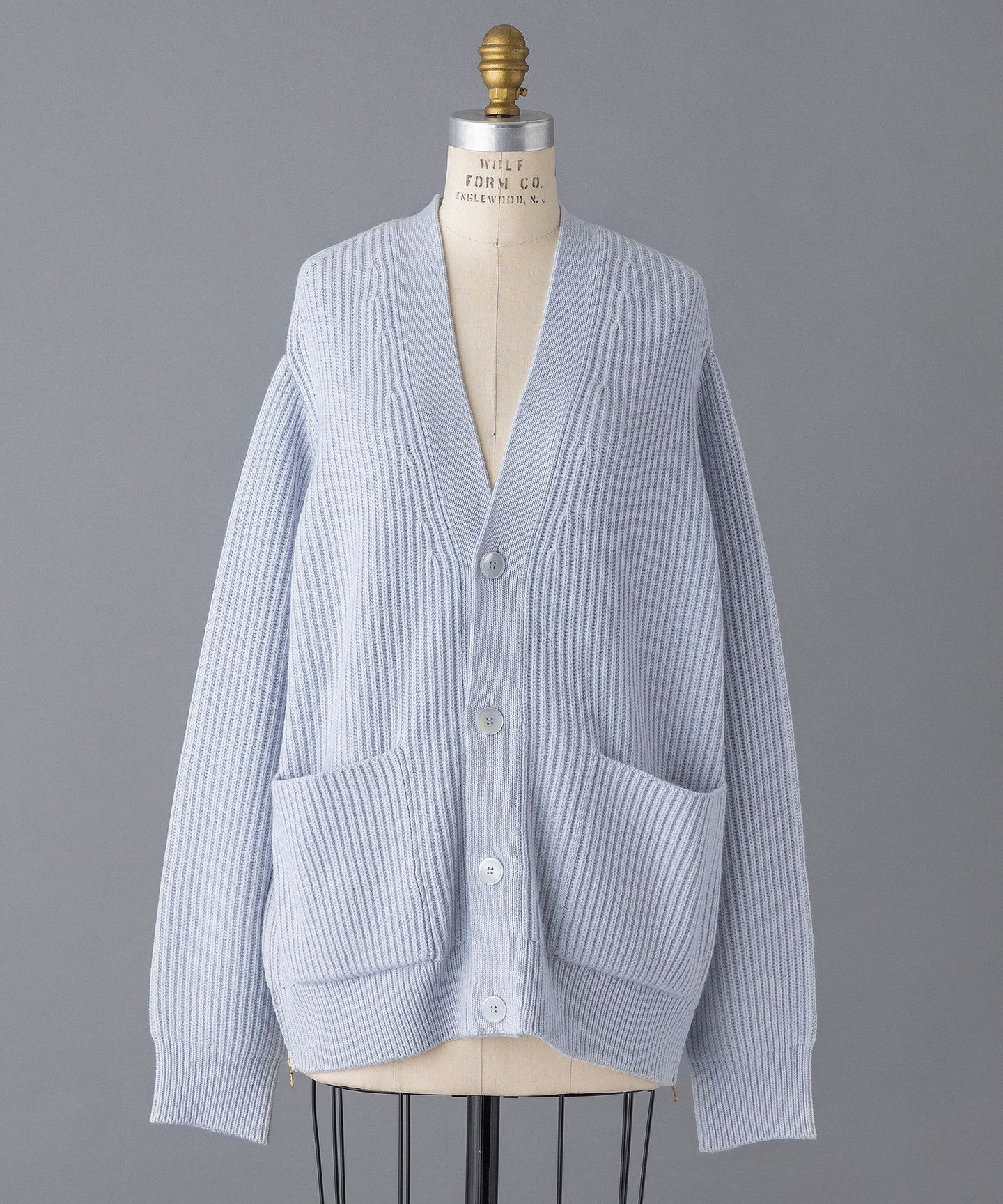 A cardigan with a loose, relaxed feel thanks to its low gauge rib knit.