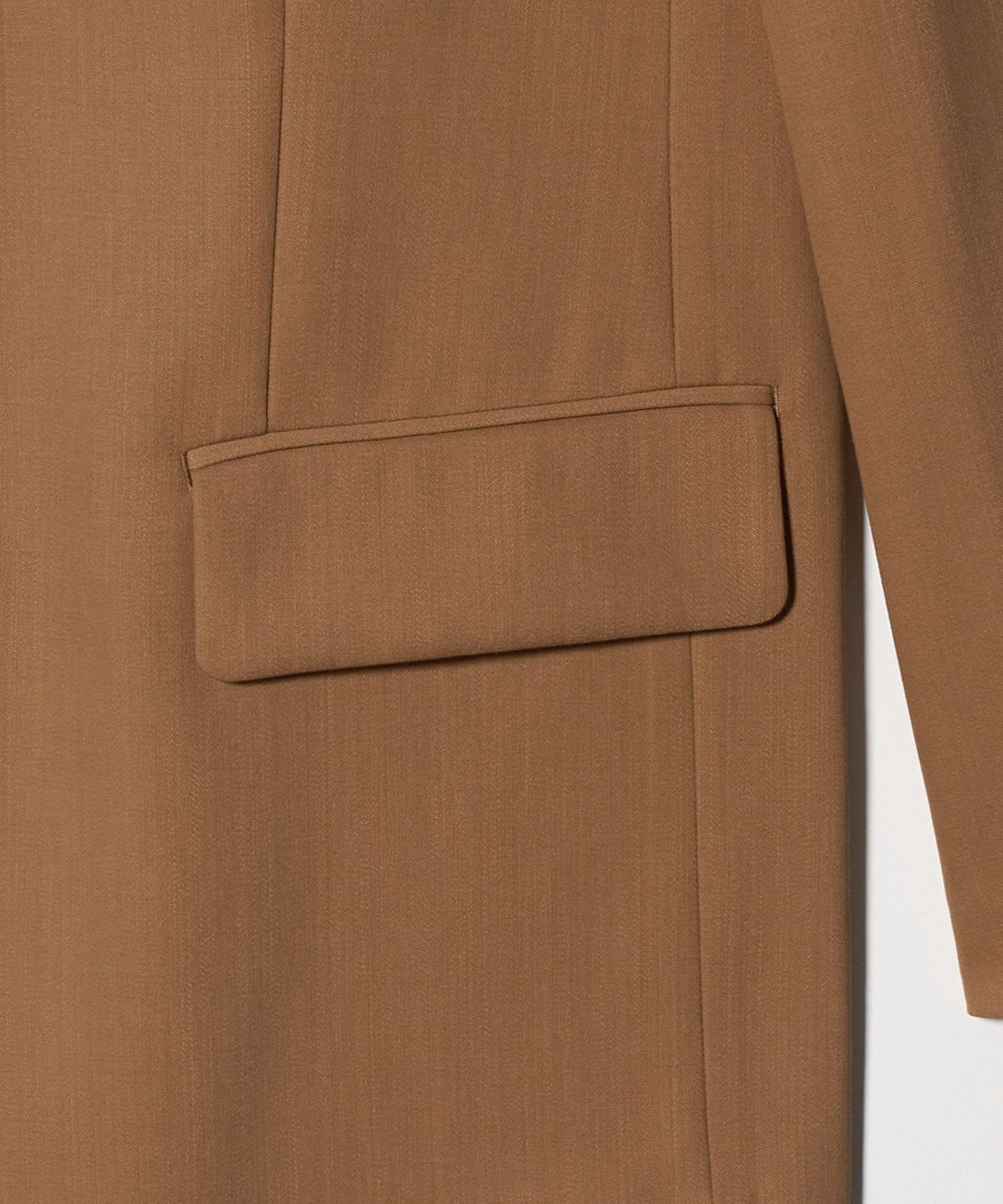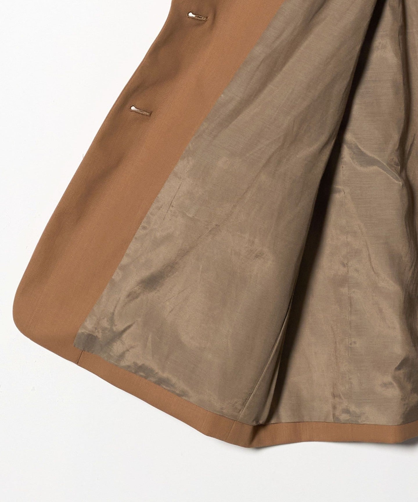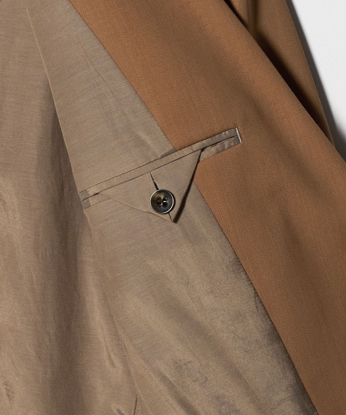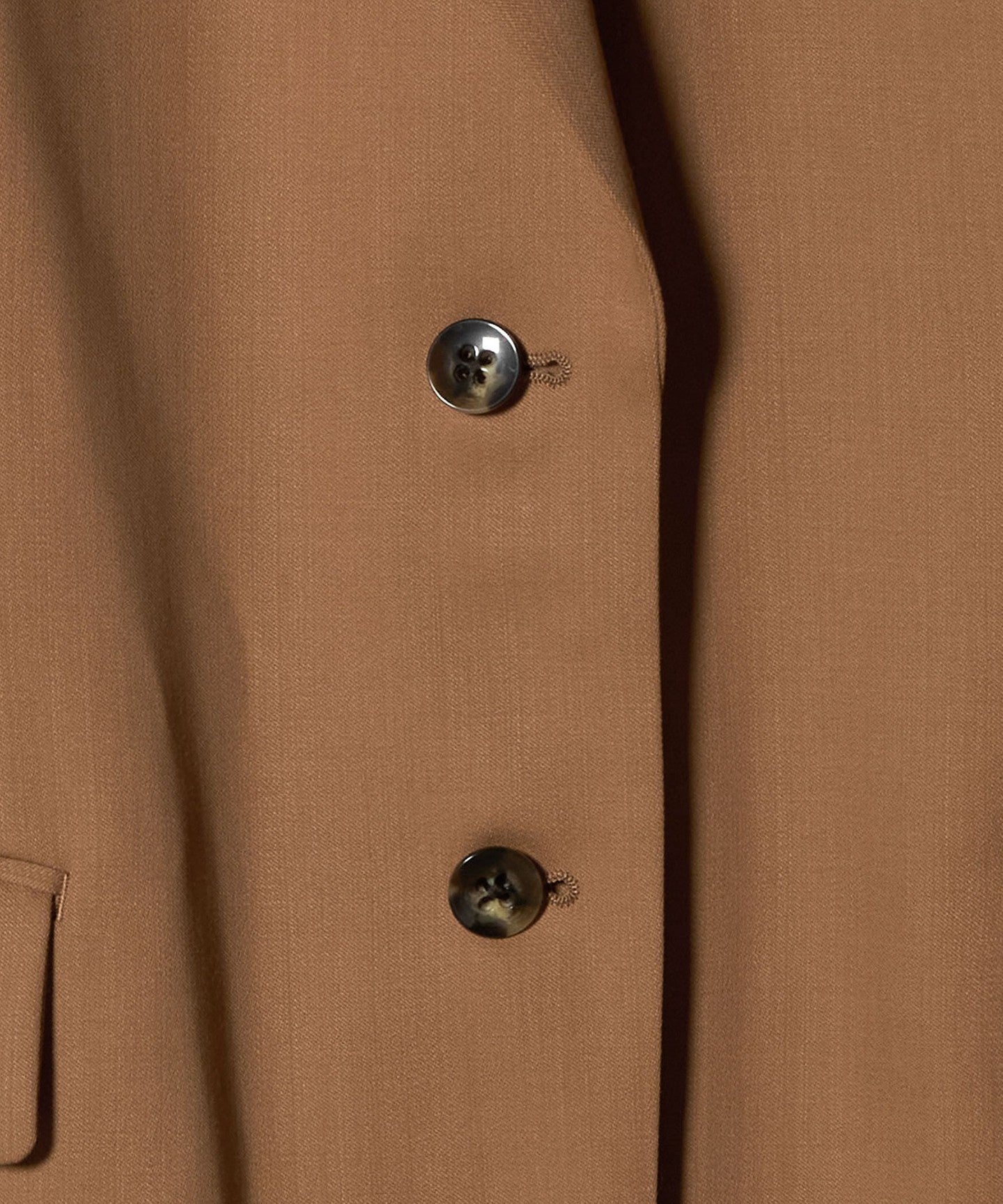 This jacket is made from fabric with a unique texture that has been given a loose feel and a firm texture through processing, and an eye-catching beige color.