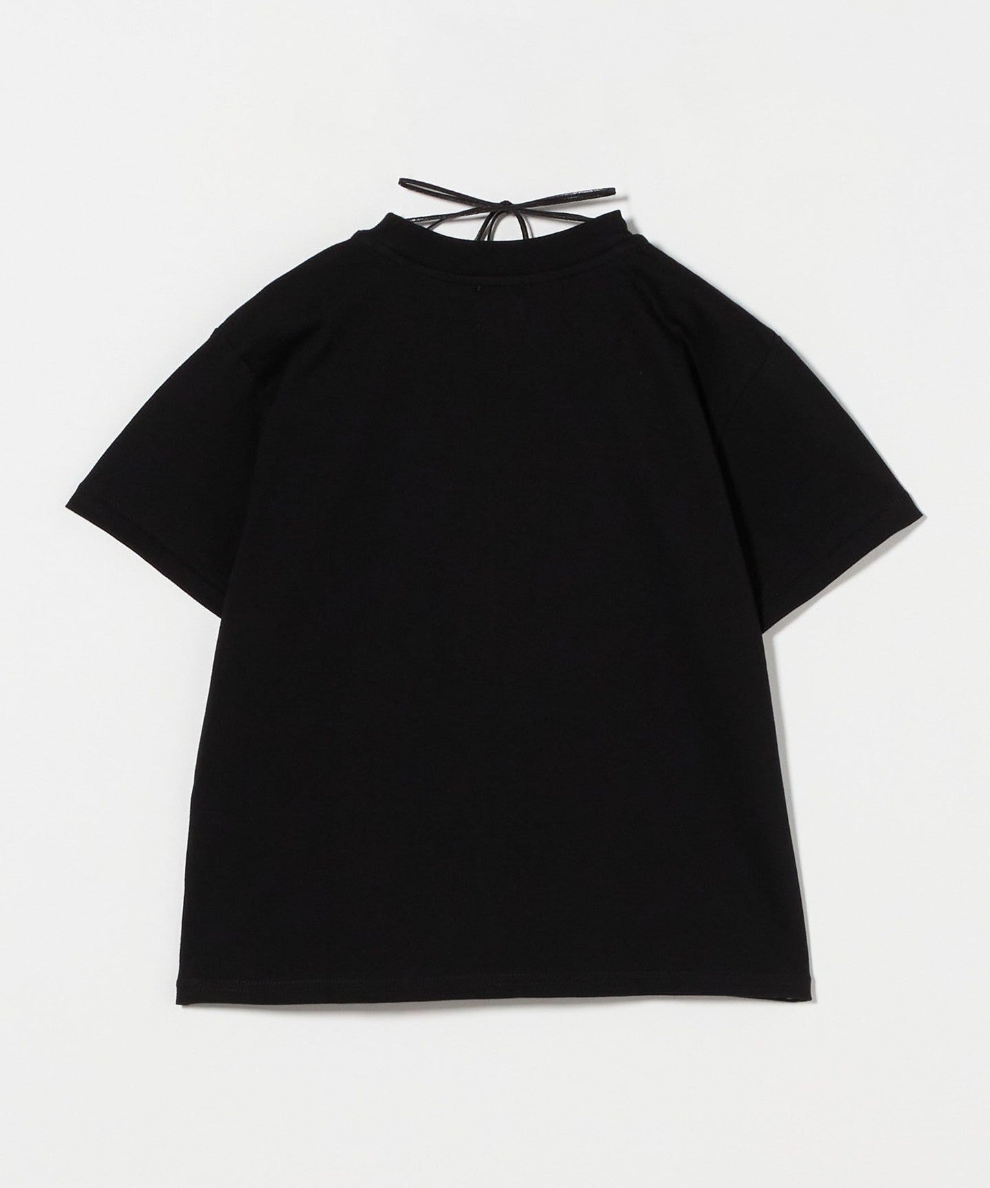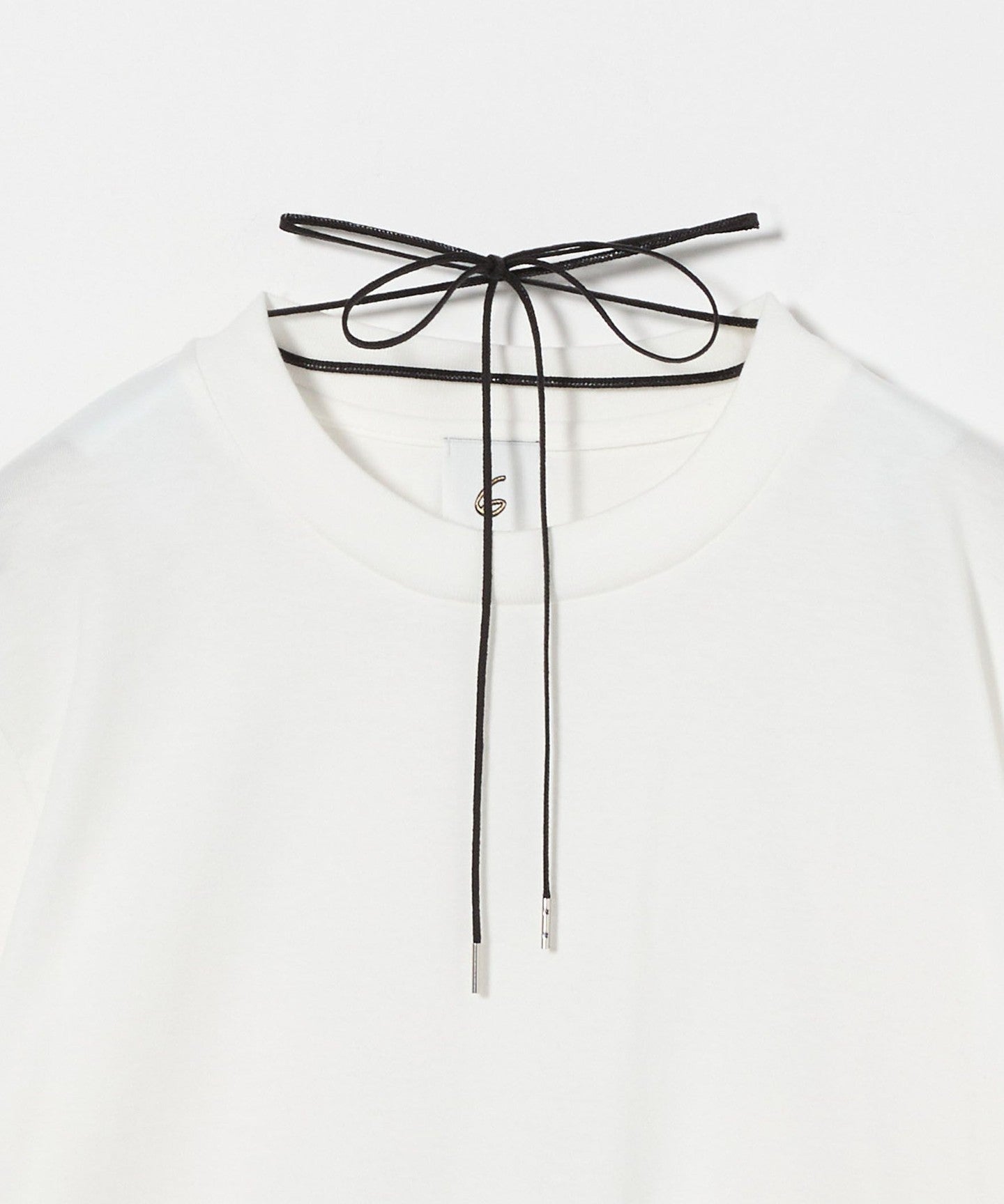 A T-shirt with a choker-like design featuring a cord around the neck.