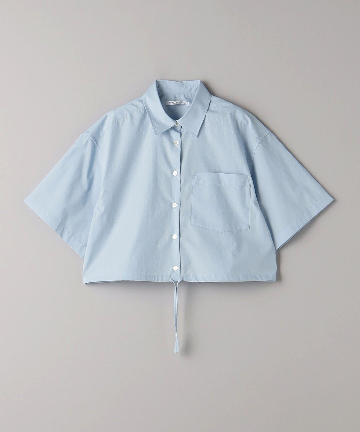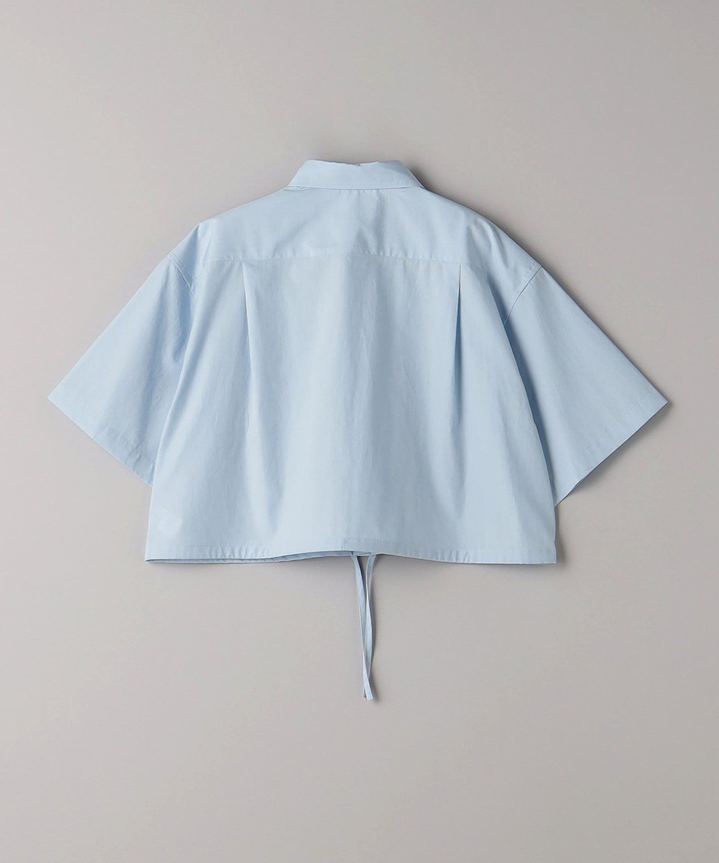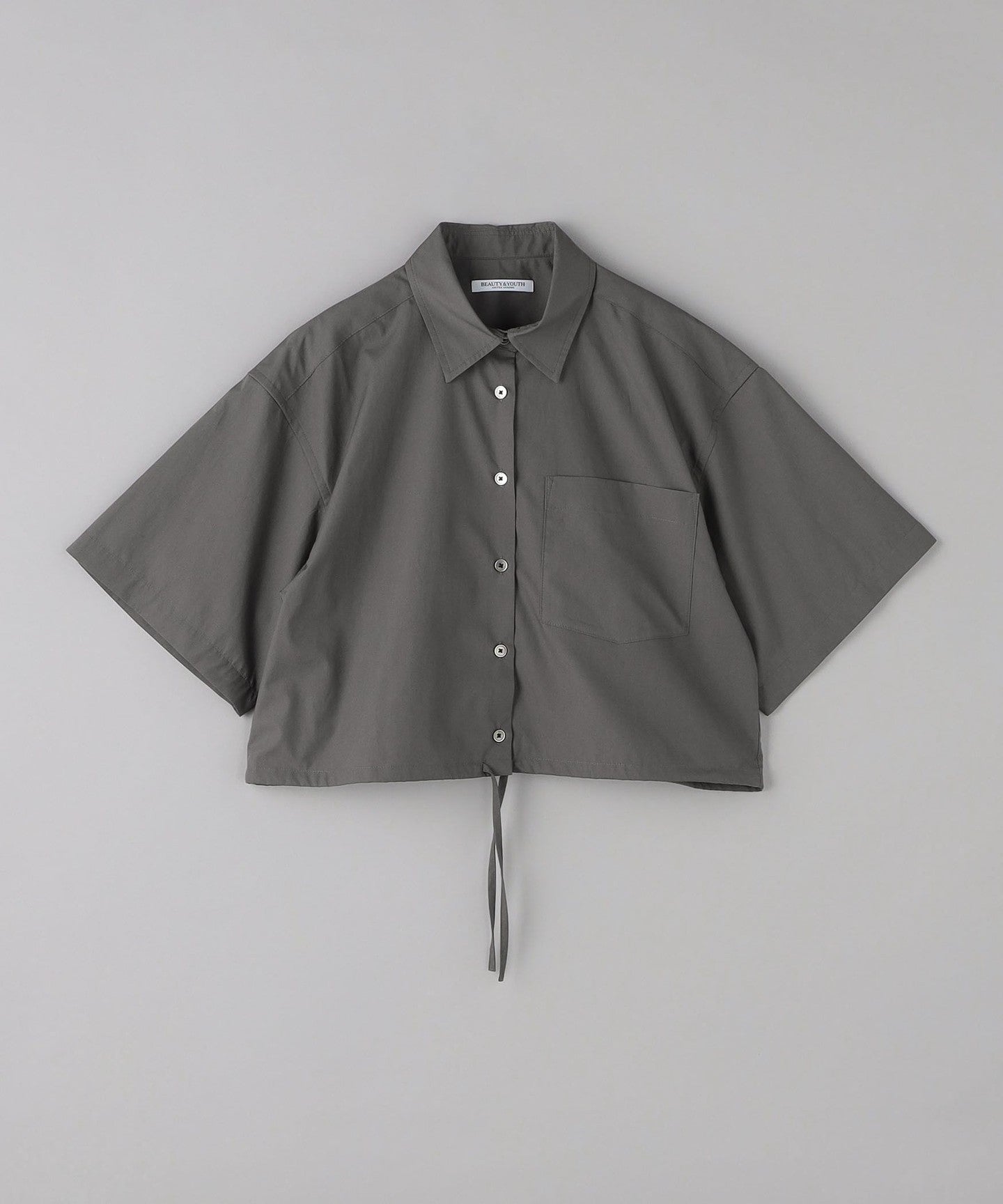 A short regular shirt with drawstring details at the hem.