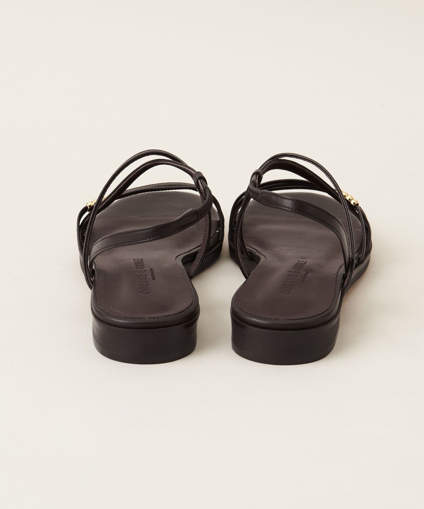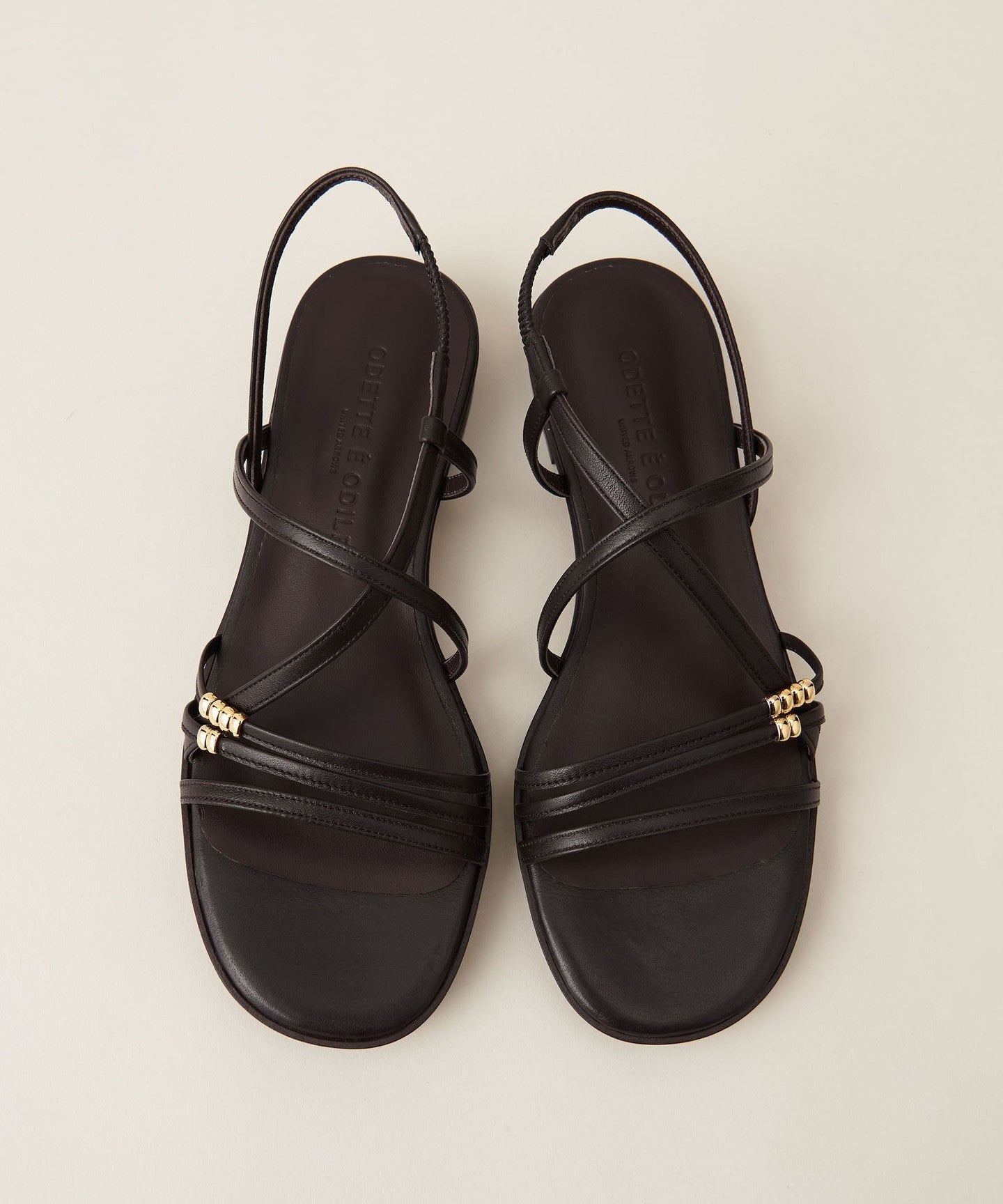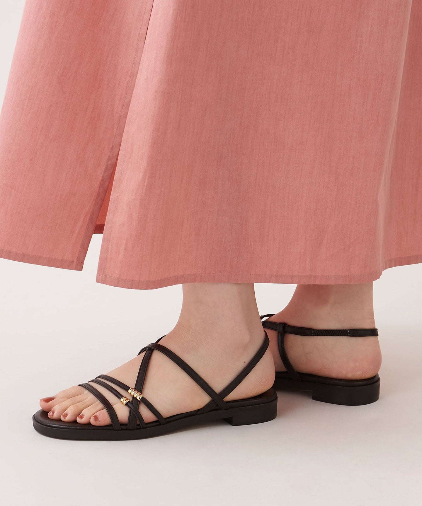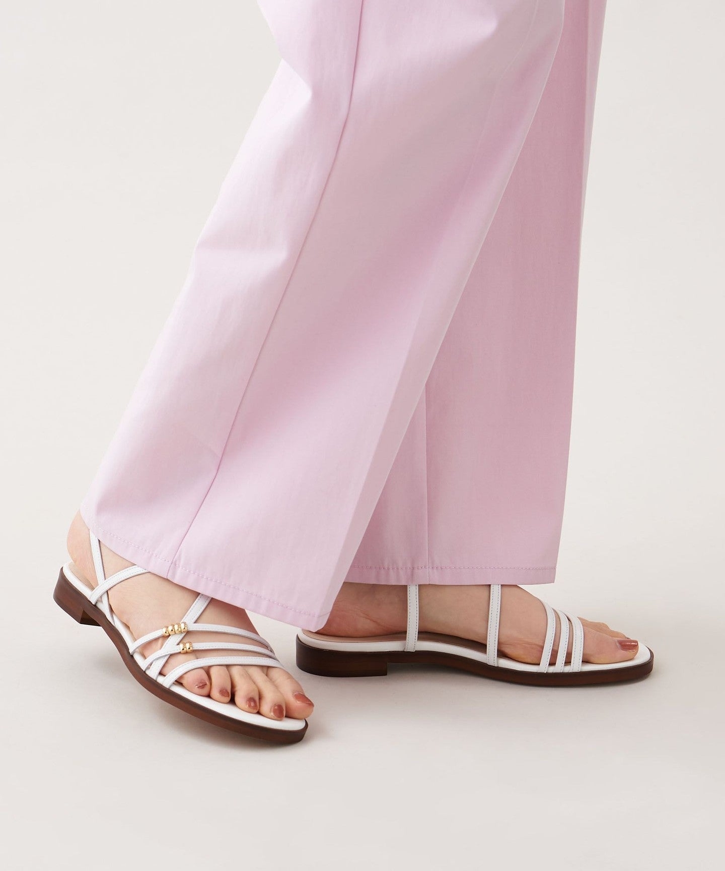 These sandals feature a thin leather cord adorned with small, rounded metal beads, adding a subtle, elegant sheen.