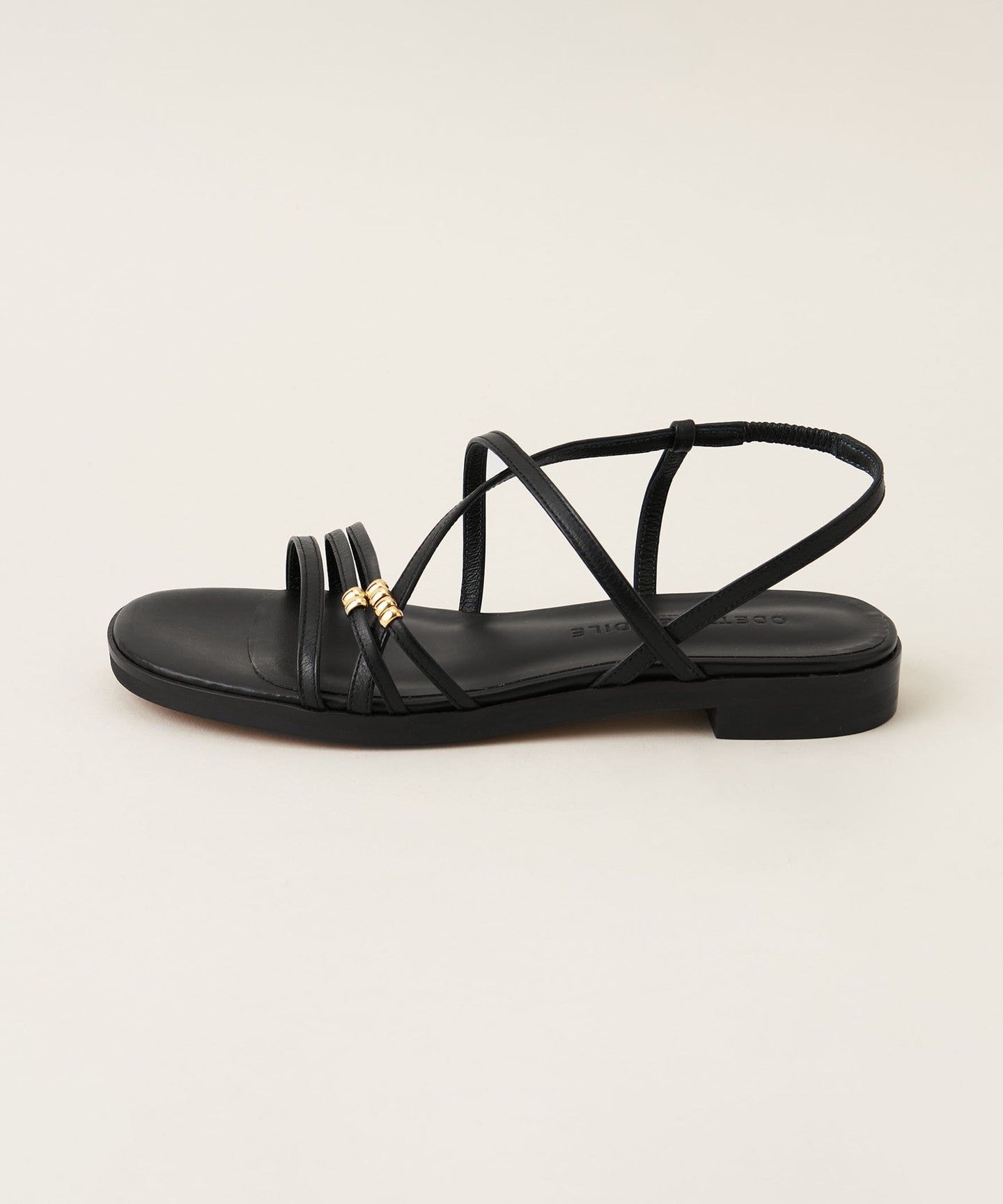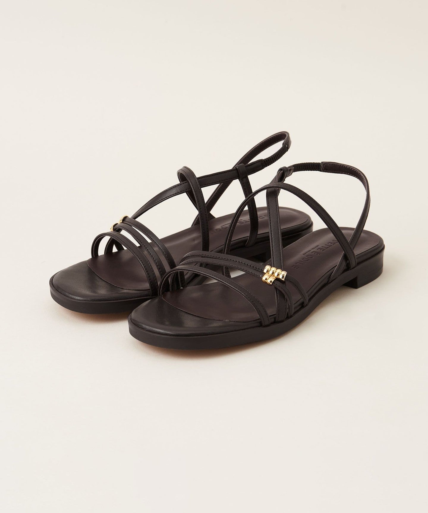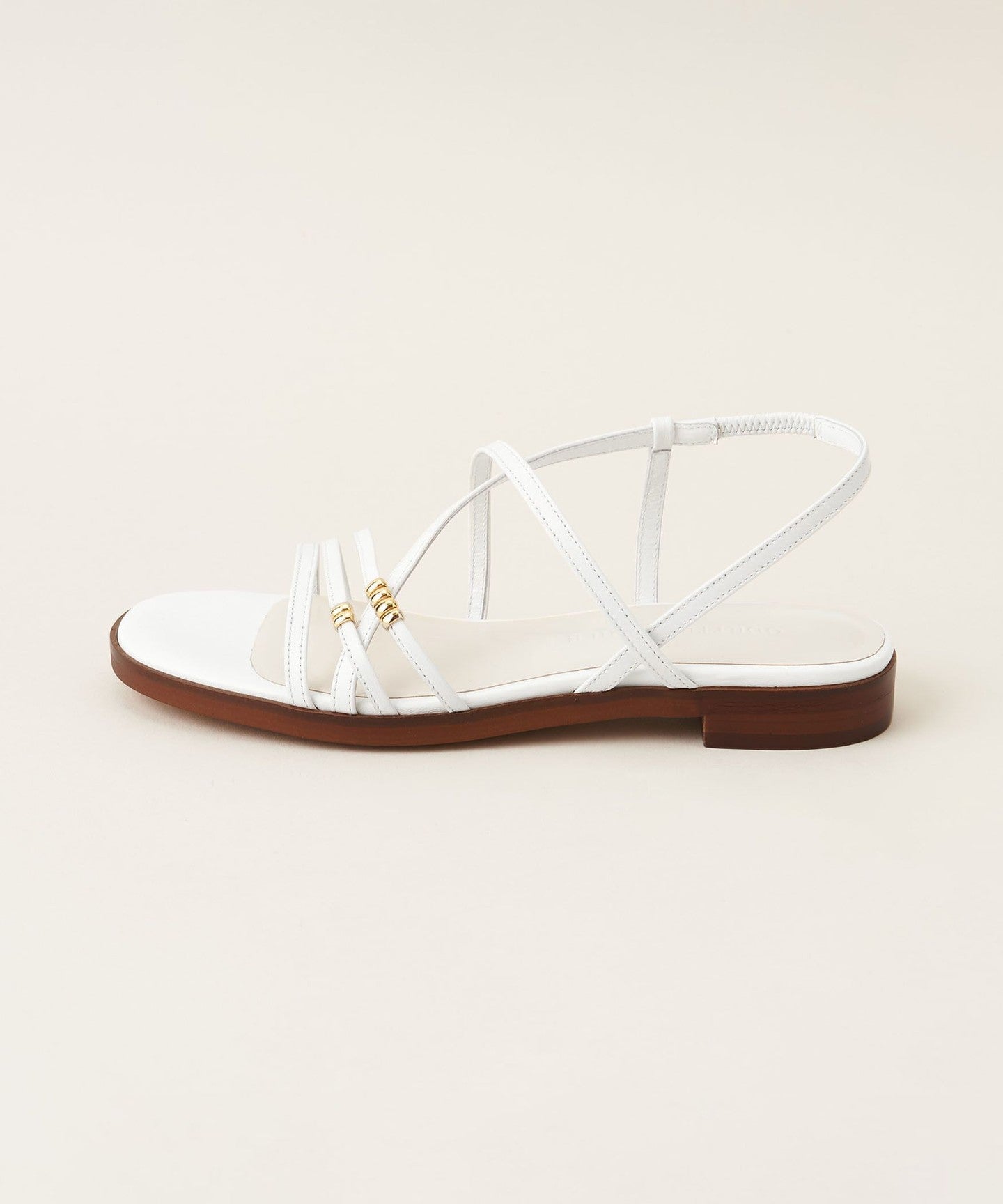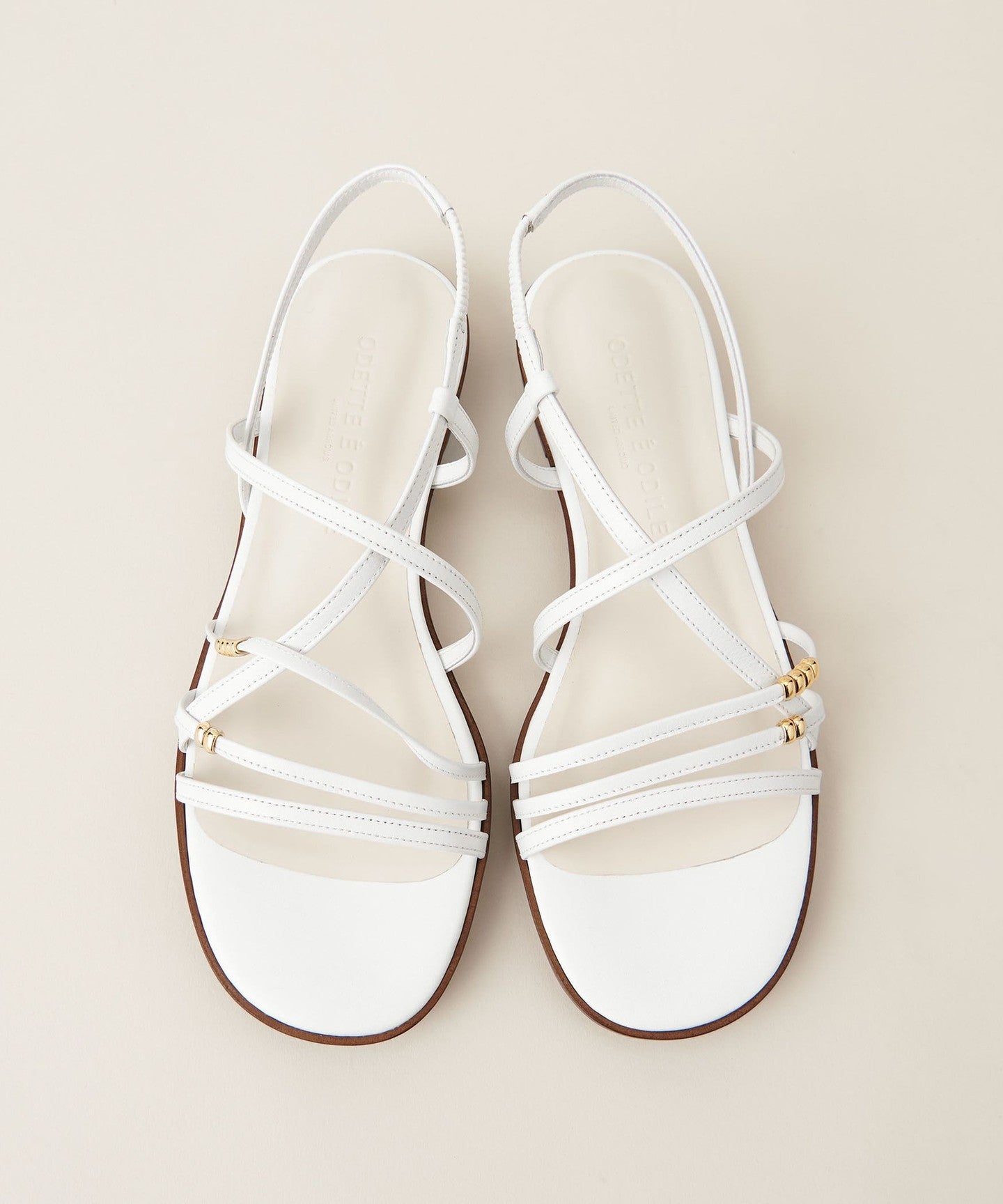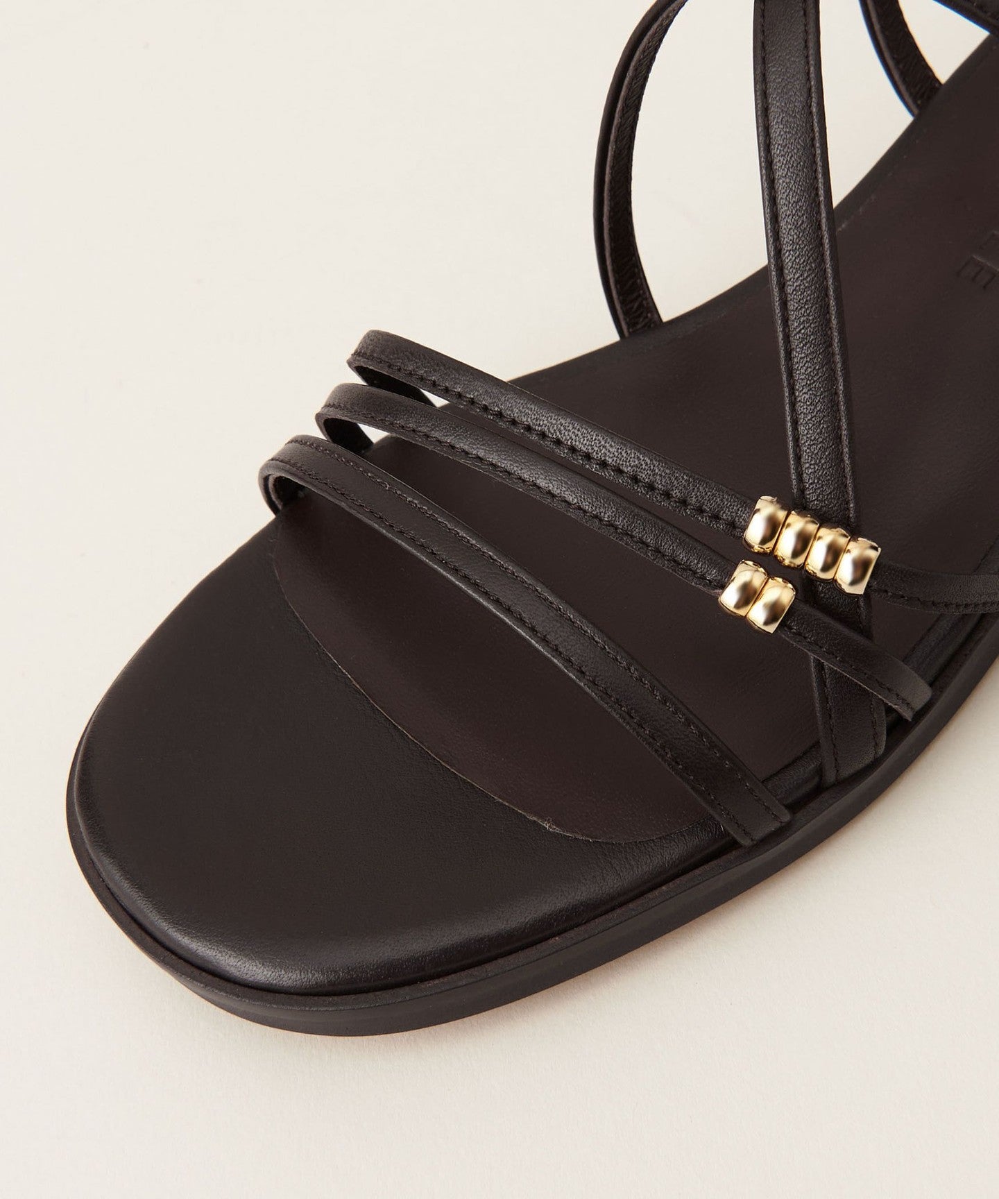 These sandals feature a thin leather cord adorned with small, rounded metal beads, adding a subtle, elegant sheen.